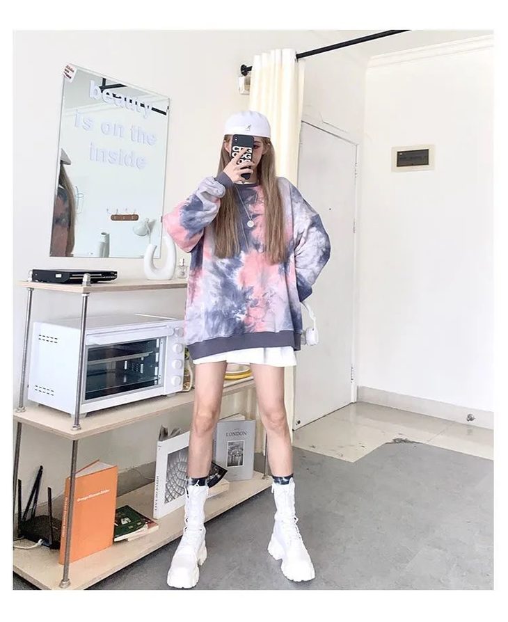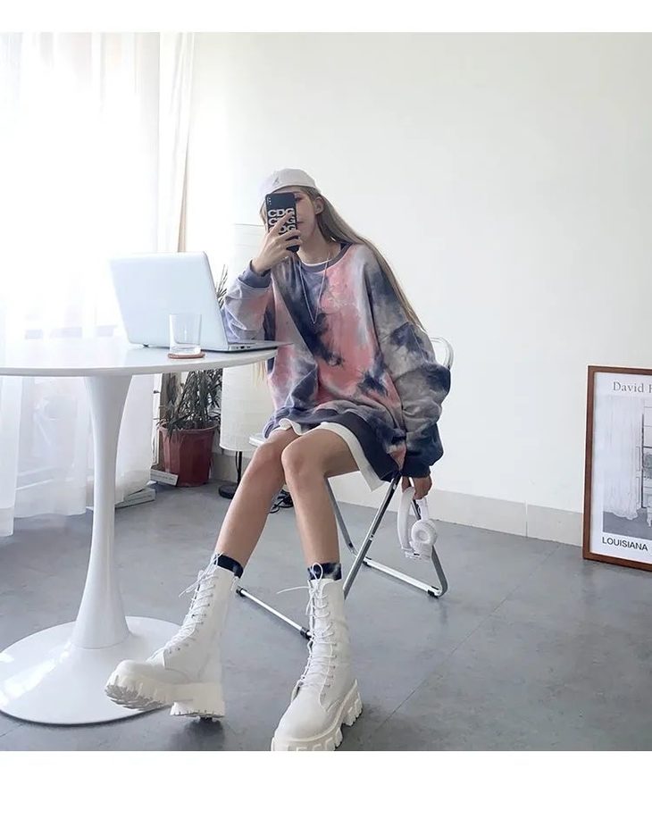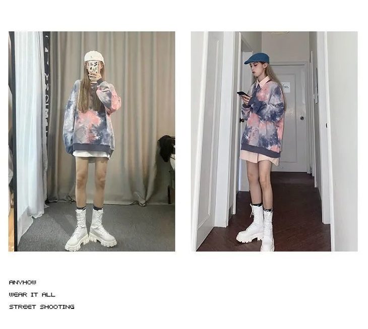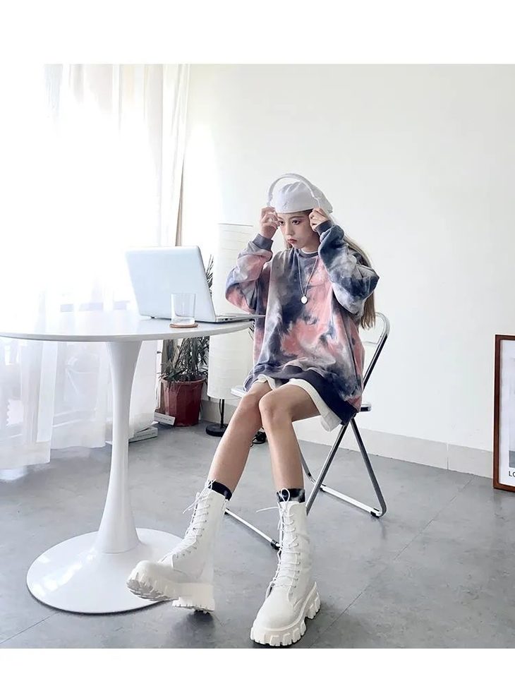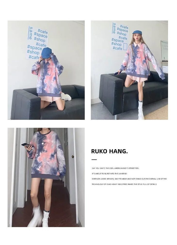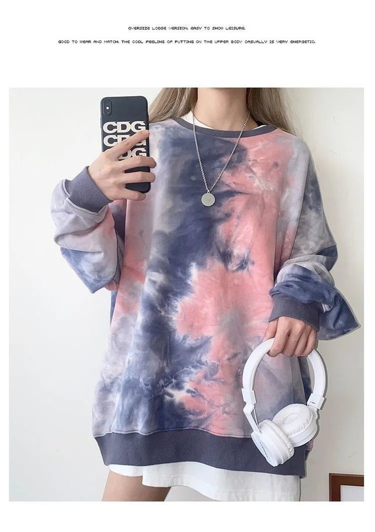 网红同款高街风扎染卫衣女中长款2021早秋新款宽松显瘦长袖上衣潮