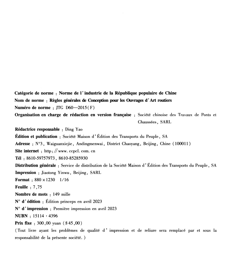 书名:公路桥涵设计通用规范(法文版)JTG D60—2015(F)