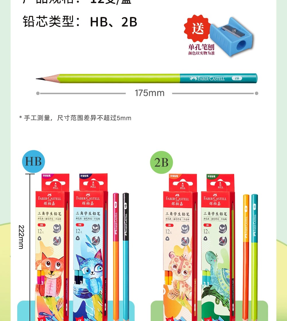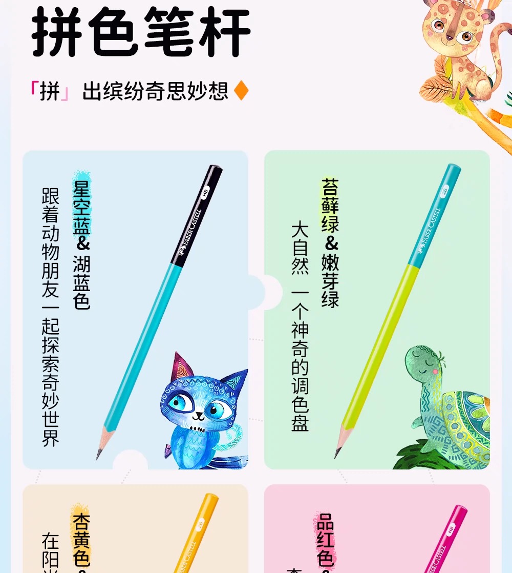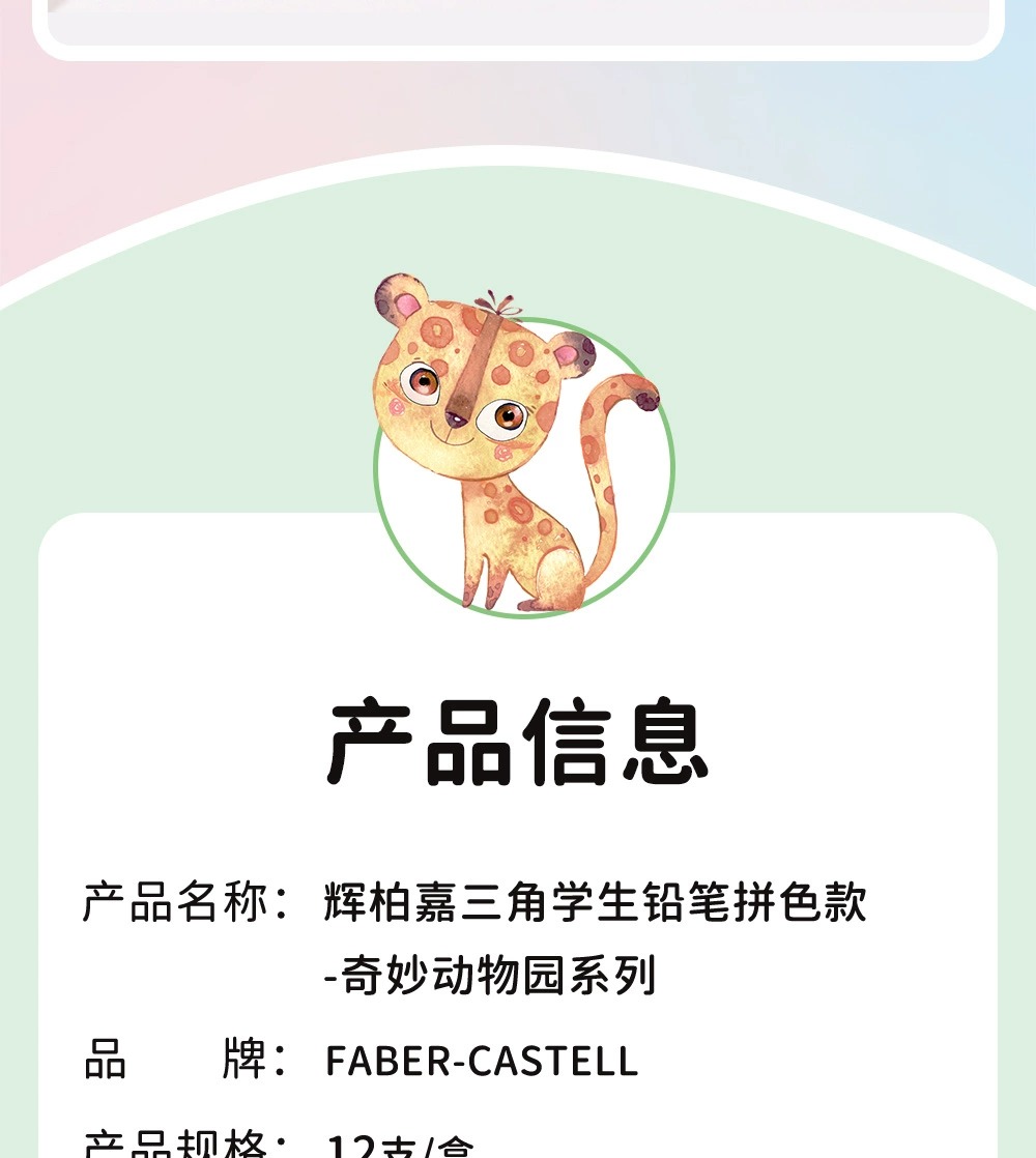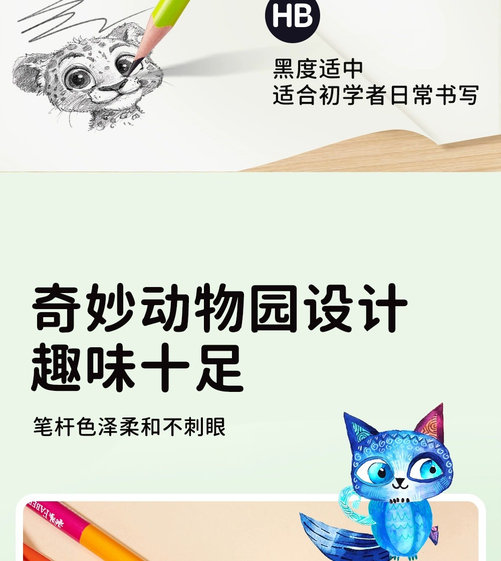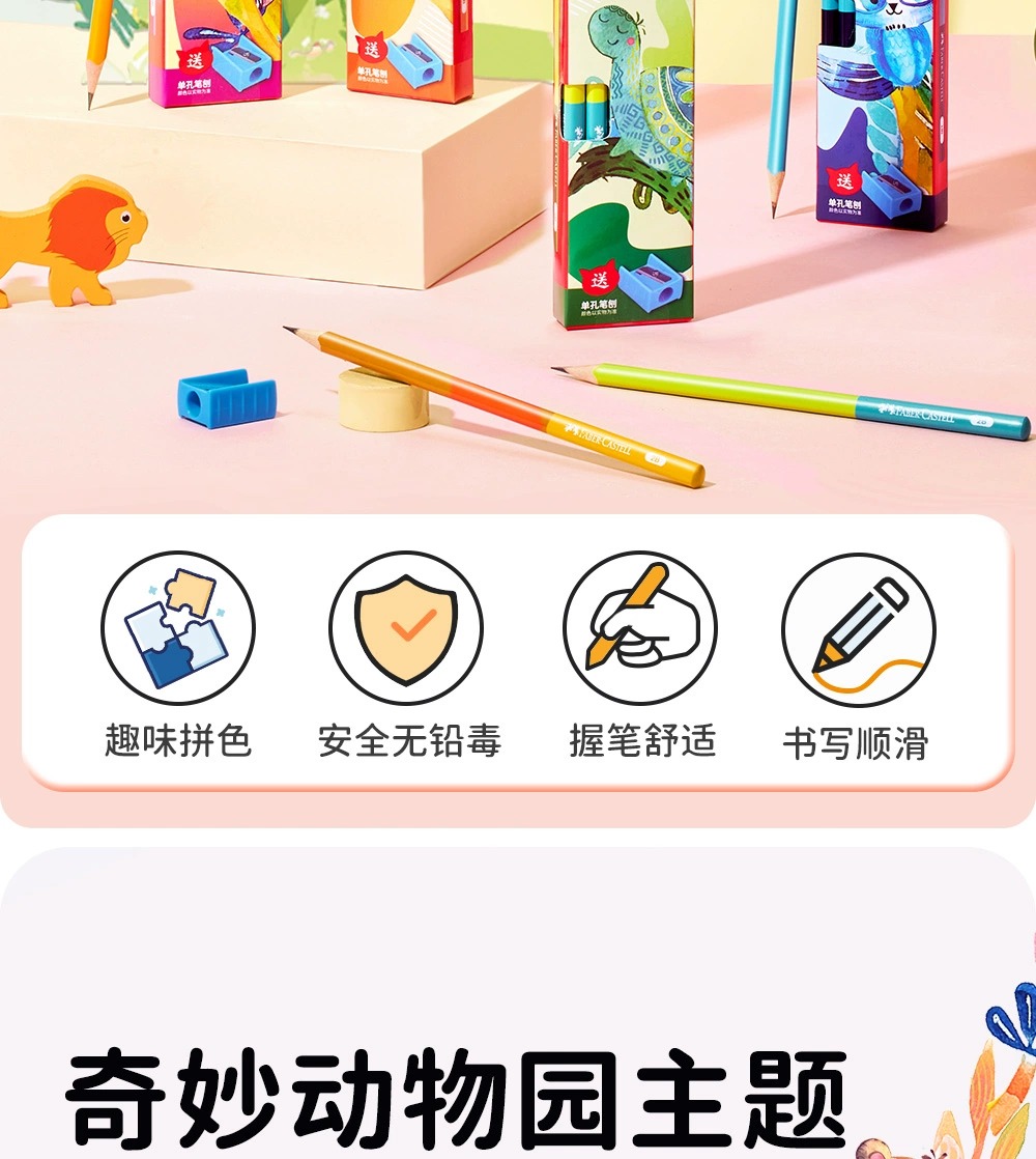 德国辉柏嘉三角铅笔学生专用奇妙动物系列三角铅笔 2bhb考试可用