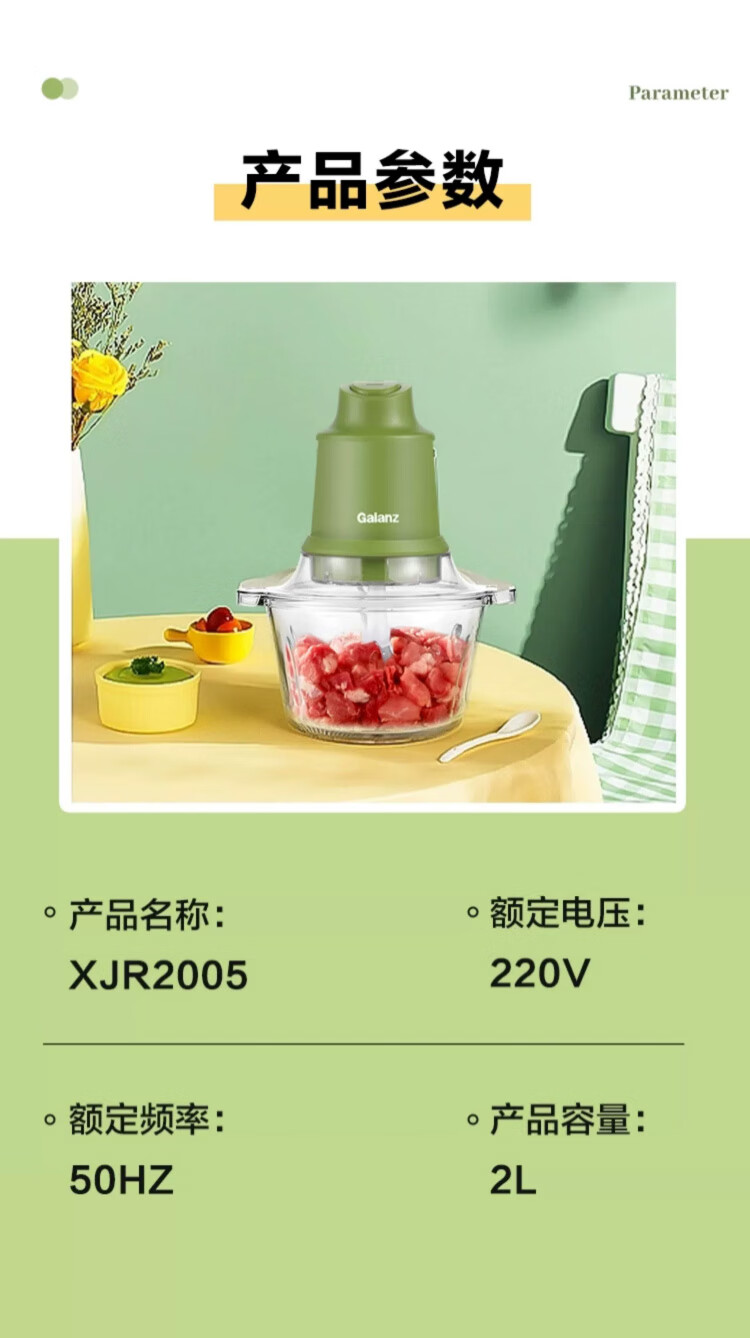 格兰仕(Galanz)电动绞肉机 家用 料理机 搅拌机 绞馅机 小型辅食机 多功能电动打肉打蒜蓉机 XJR2005