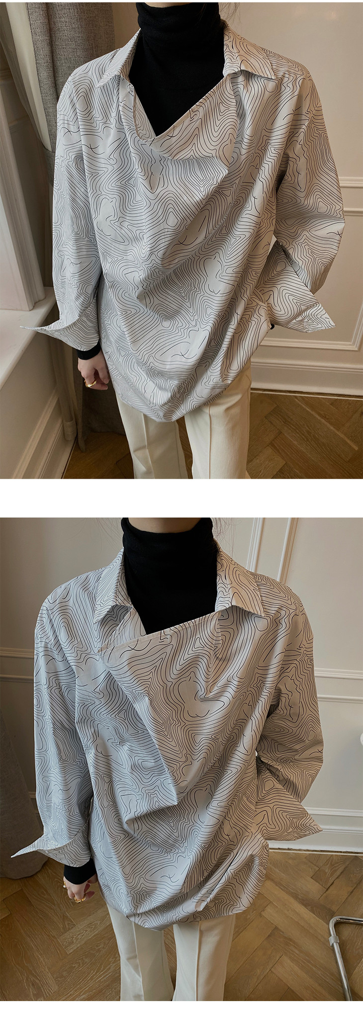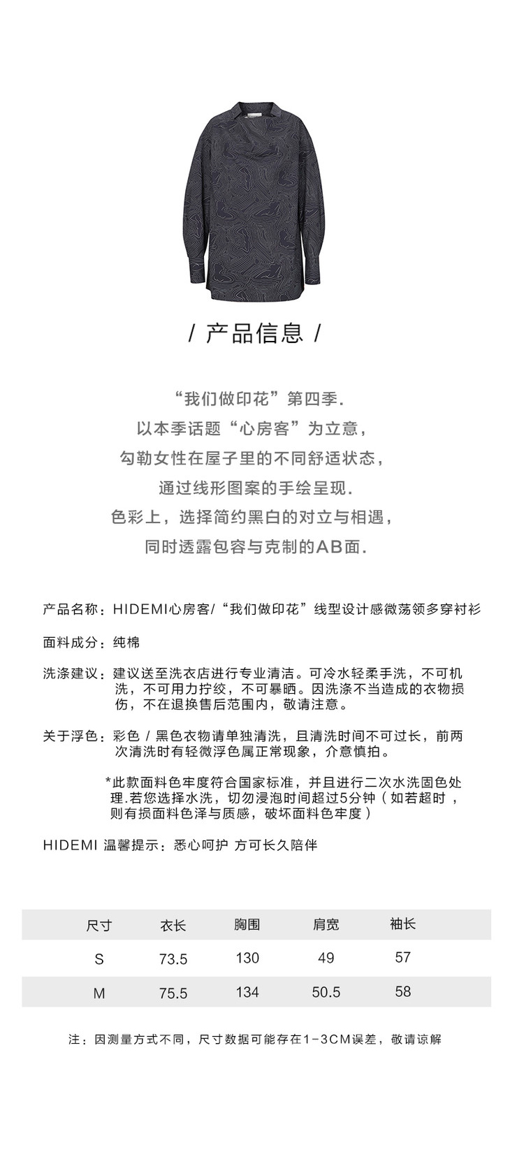 HIDEMI 心房客/“我们做印花”线型设计感微荡领多穿衬衫