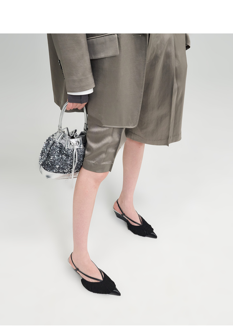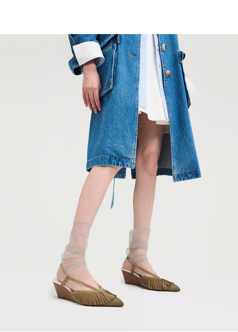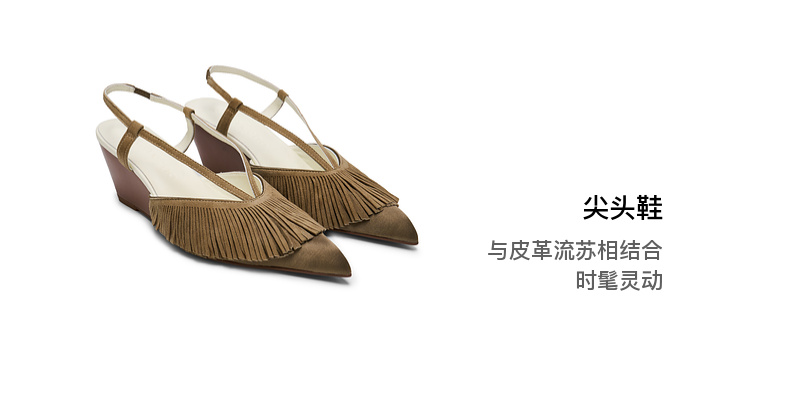 lost in echo2025春夏新款时尚高级尖头流苏坡跟凉鞋高跟鞋单鞋女