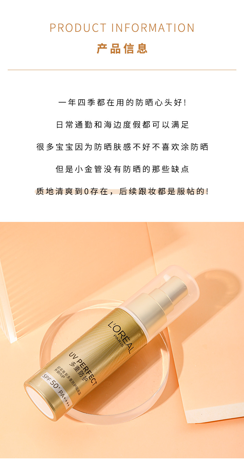 欧莱雅小金瓶防晒霜,高倍防晒,清爽不油腻 长效保护