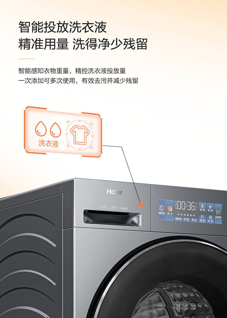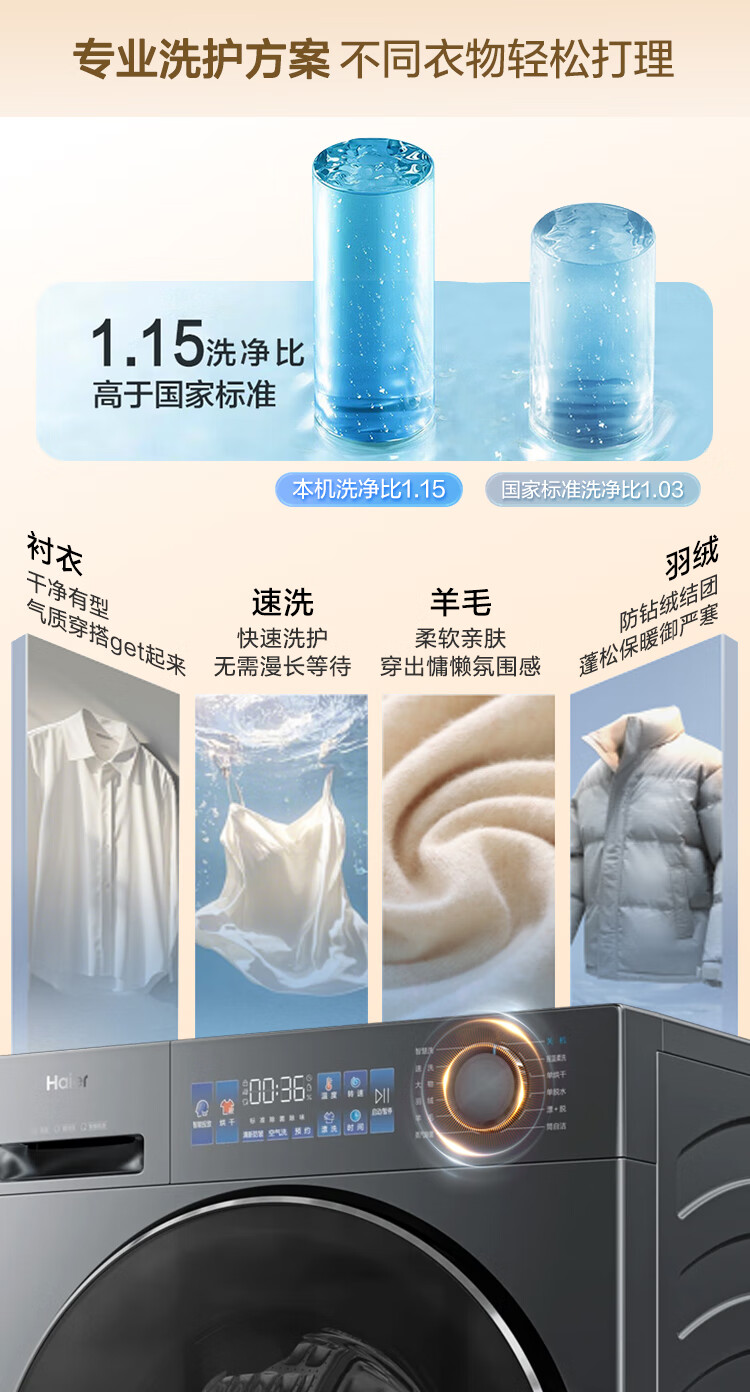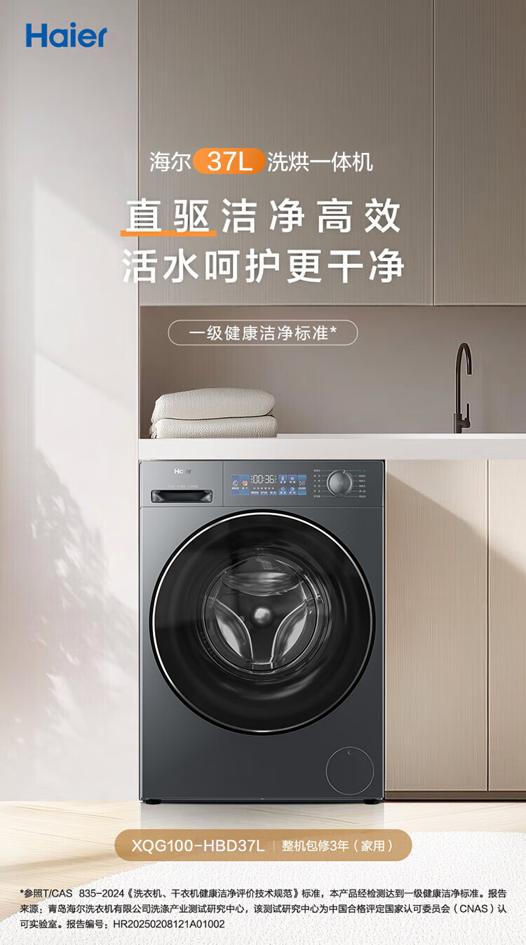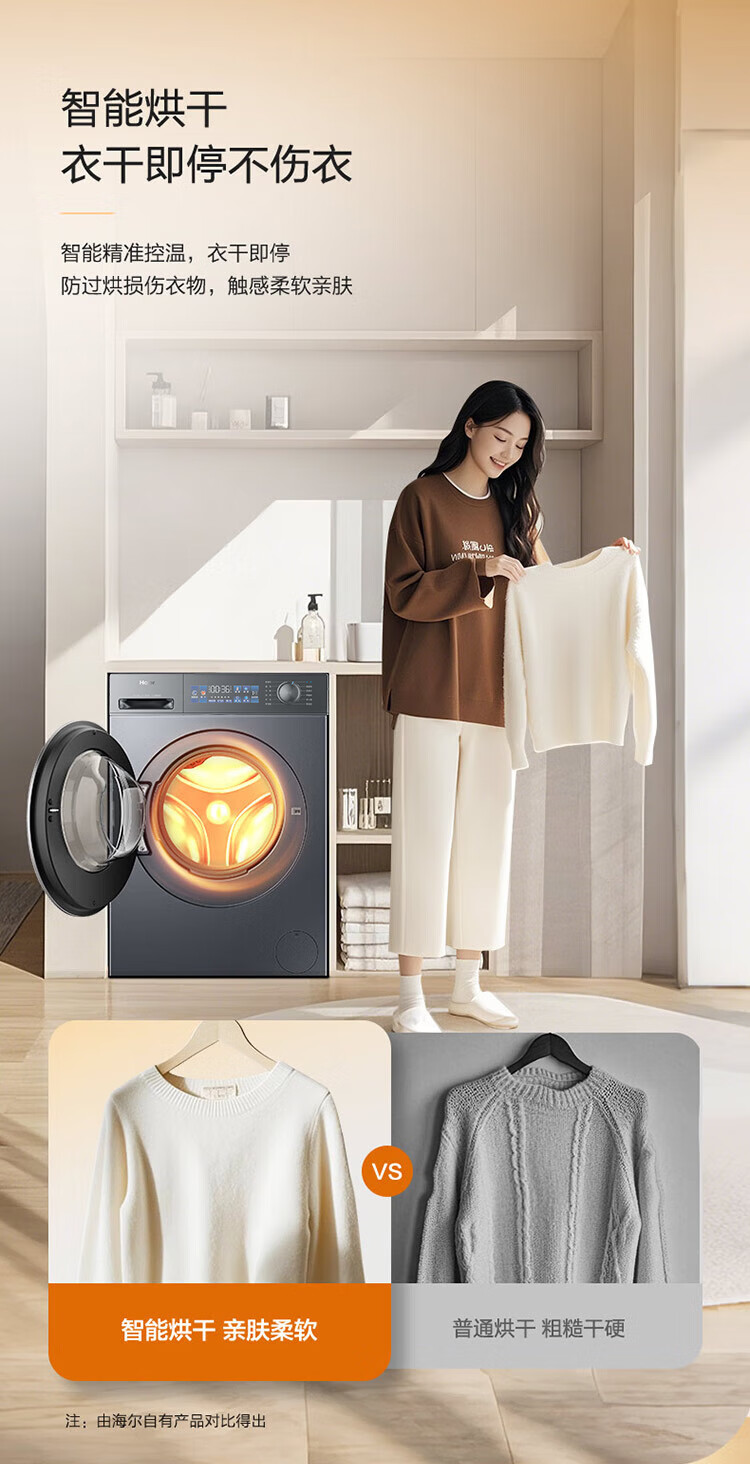 海尔(Haier)云溪4.0 滚筒洗衣机全自动带烘干洗烘一体机10公斤家用 直驱精华洗 国家补贴 XQG100-HBD37L