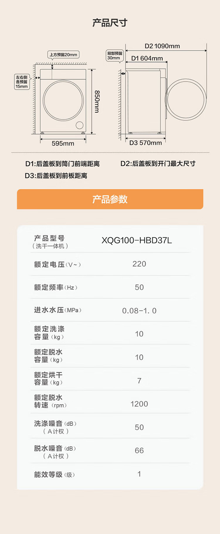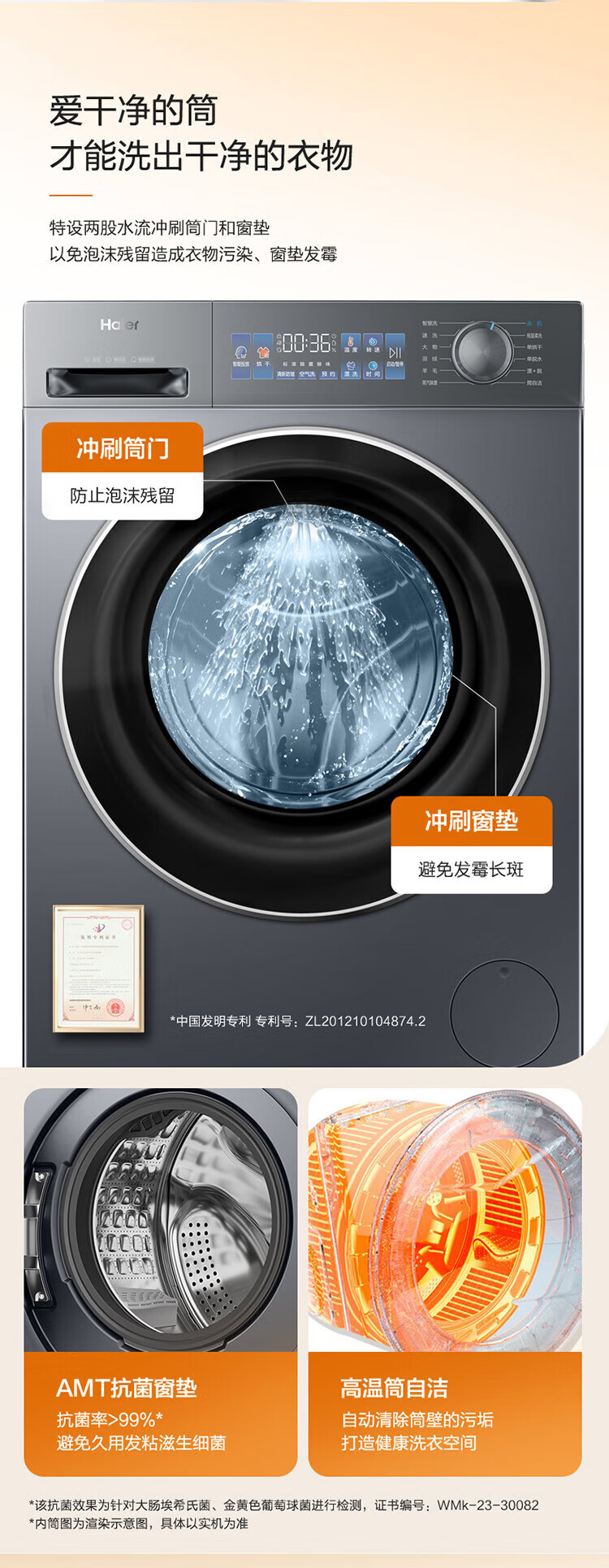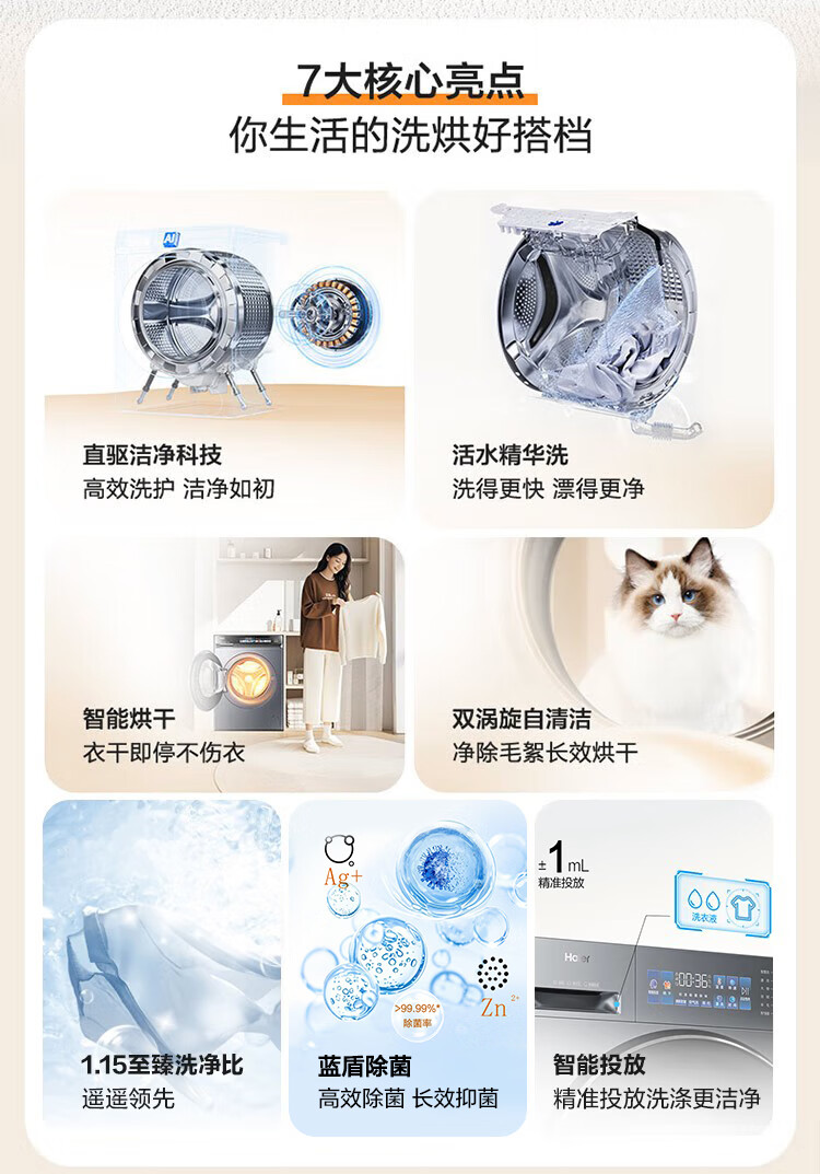 海尔(Haier)云溪4.0 滚筒洗衣机全自动带烘干洗烘一体机10公斤家用 直驱精华洗 国家补贴 XQG100-HBD37L