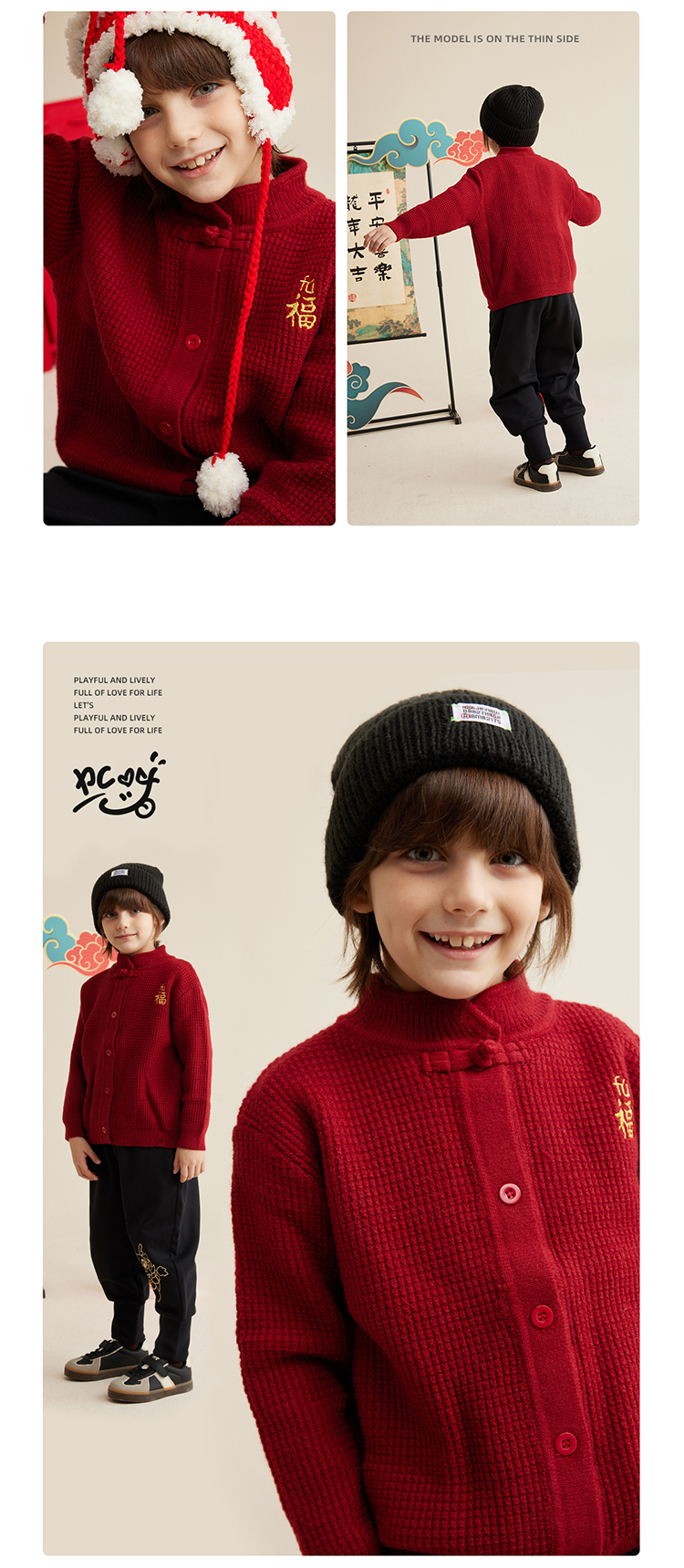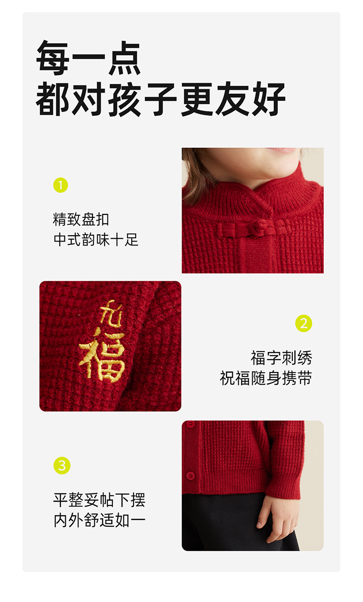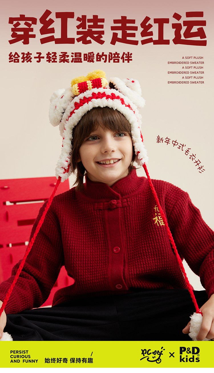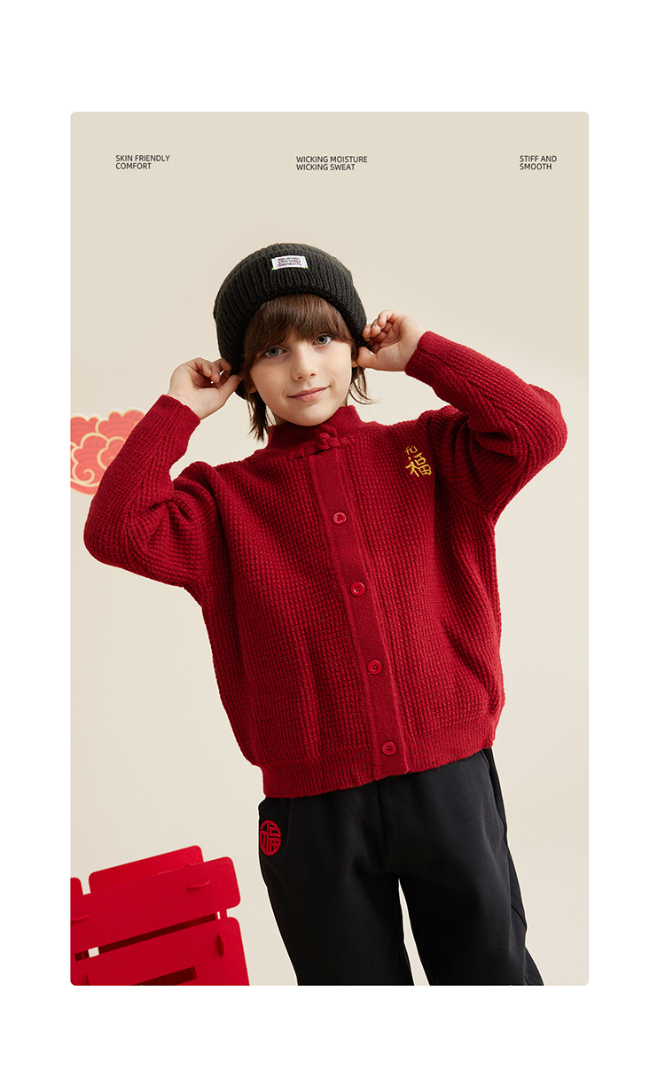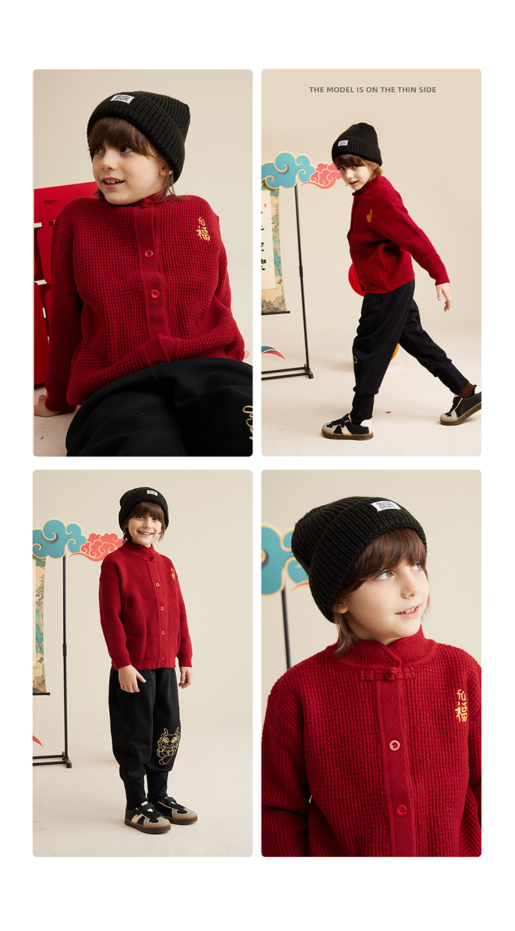 【亲子款拜年服 把福气穿在身上】新年刺绣开衫毛衣PDMY2320