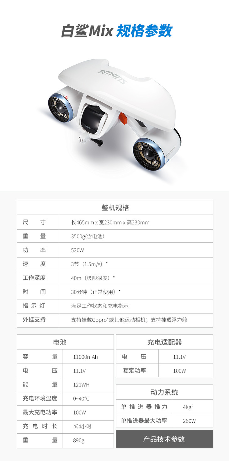 Sublue深之蓝白鲨Mix水下无人机器人自游器潜水助力器浮潜推进器