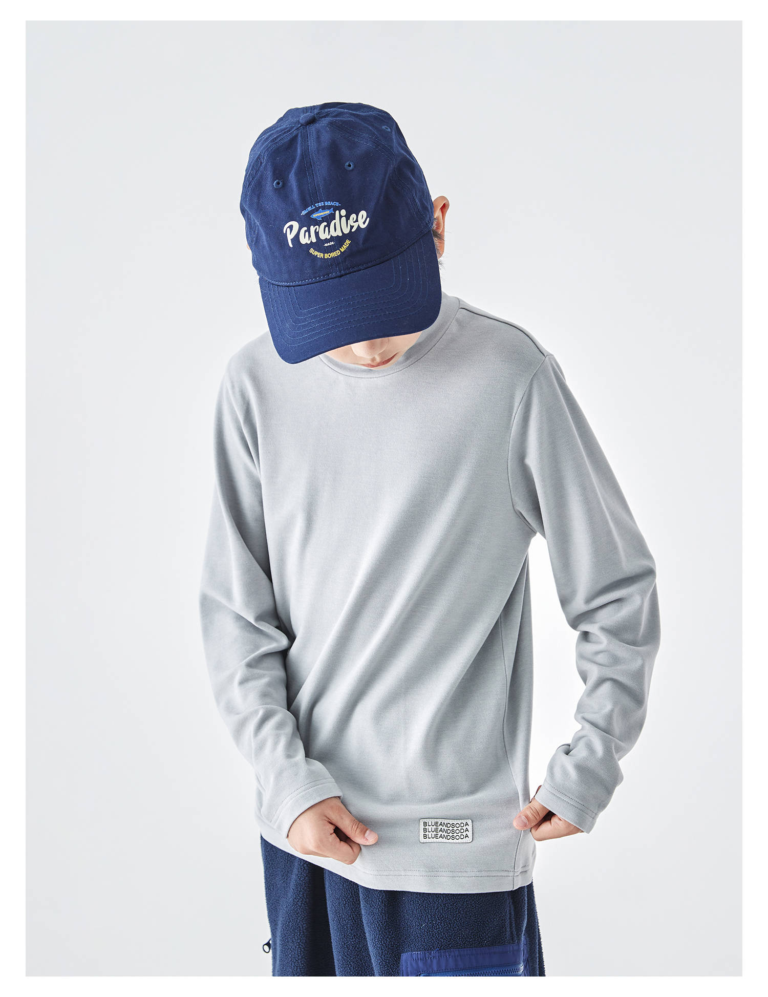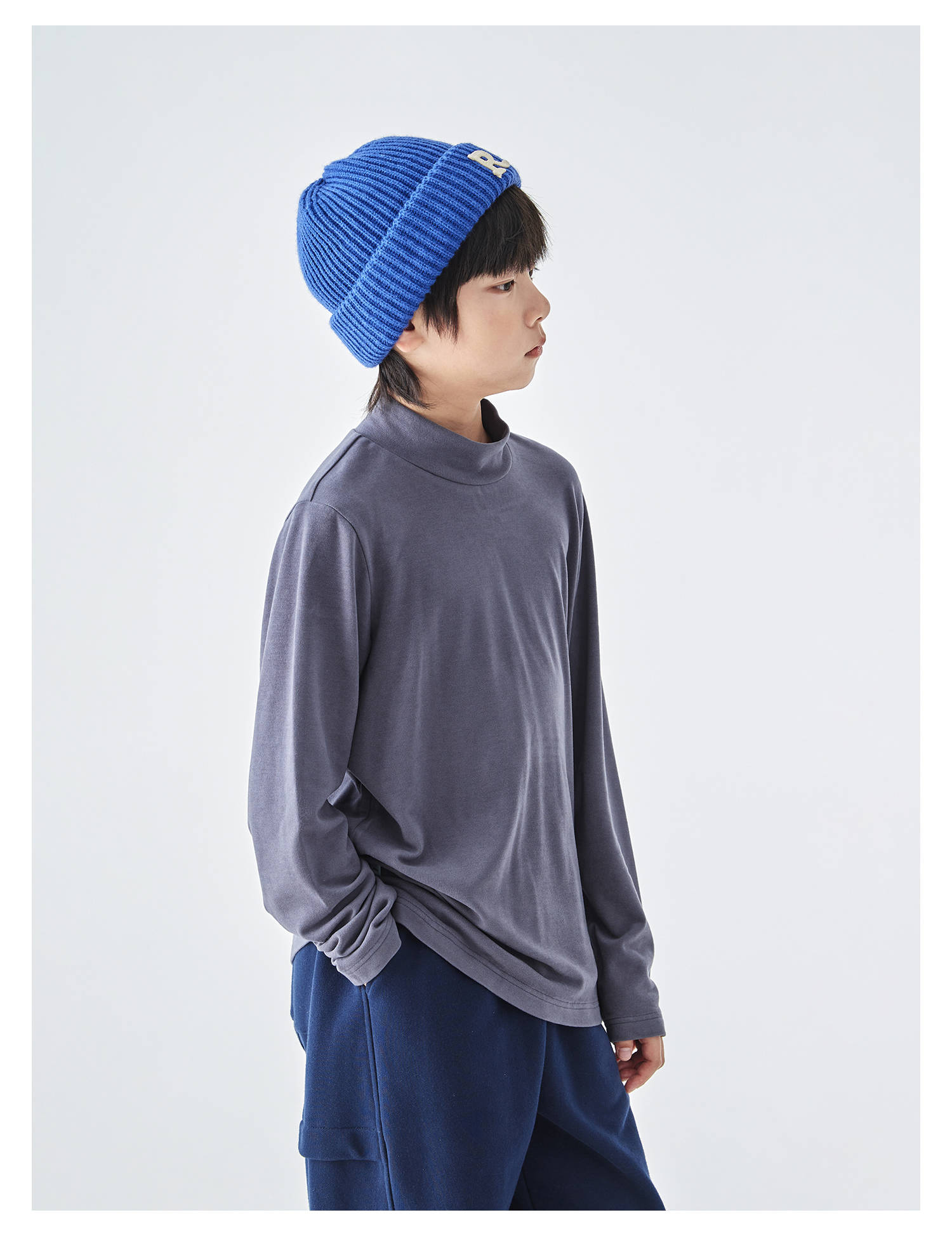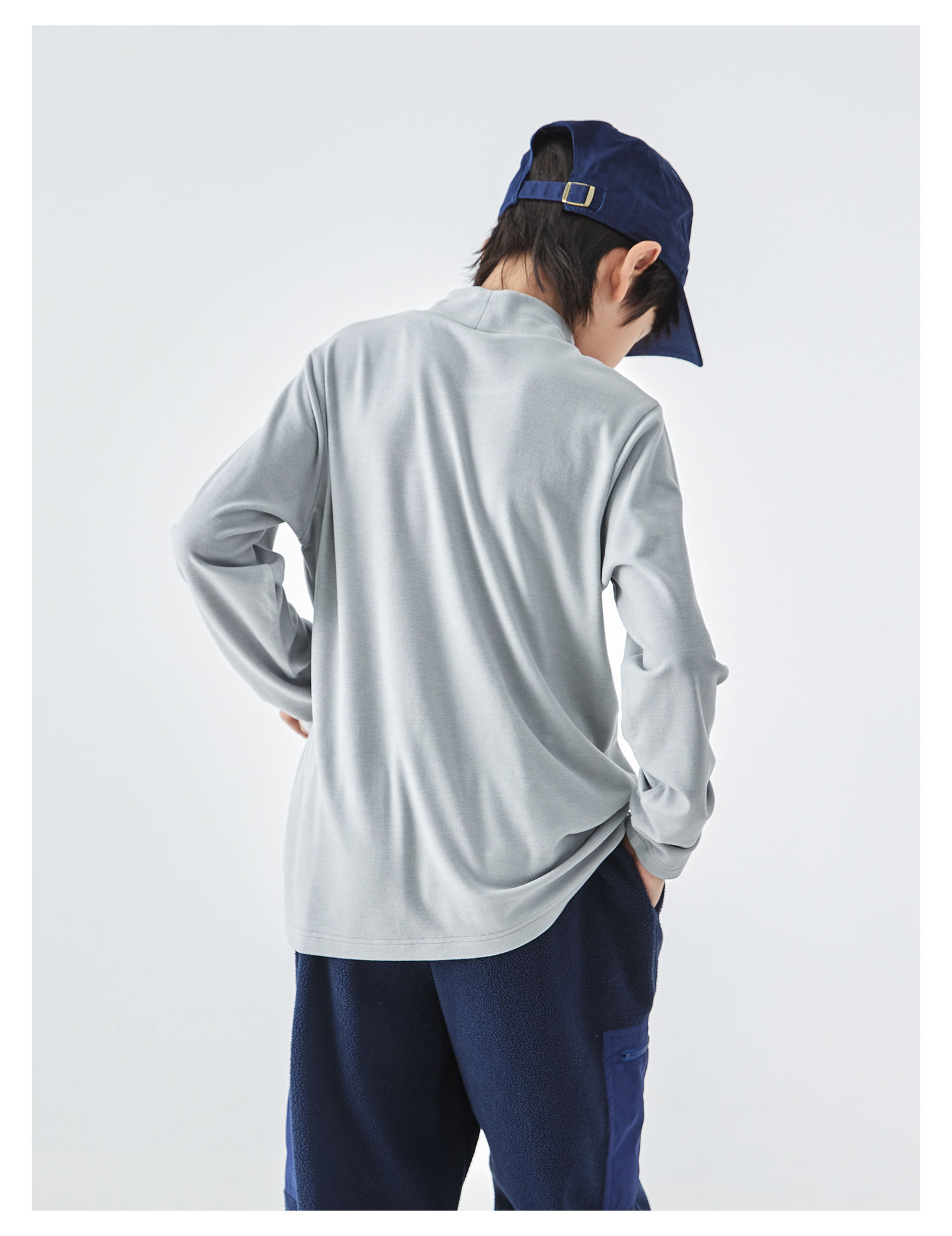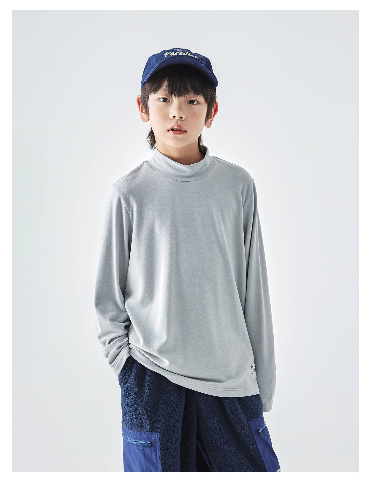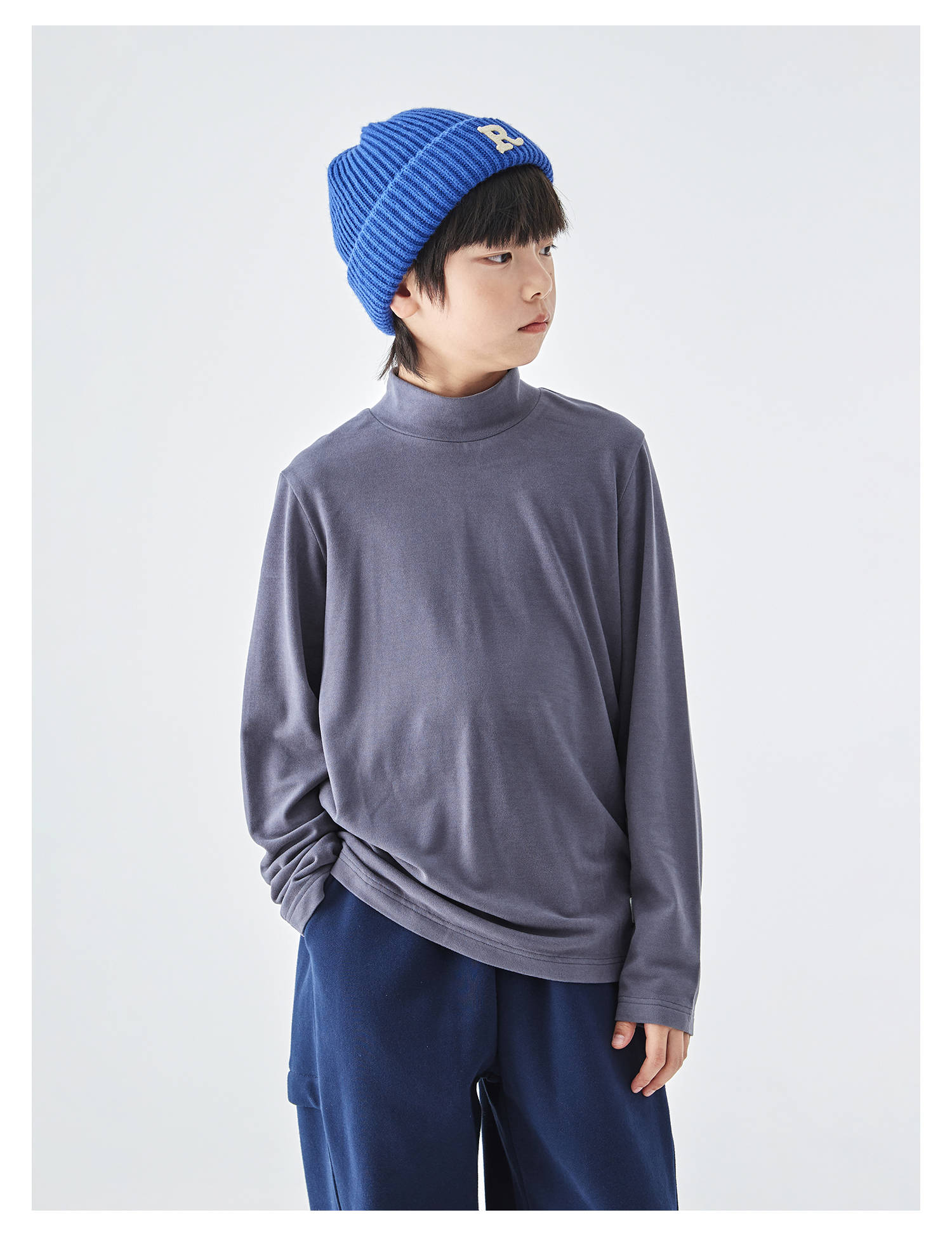蓝汽水25年秋冬新款亲子中大男童半高领双面绒打底衫软糯纯色T恤