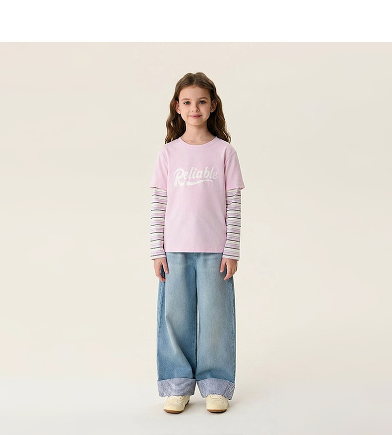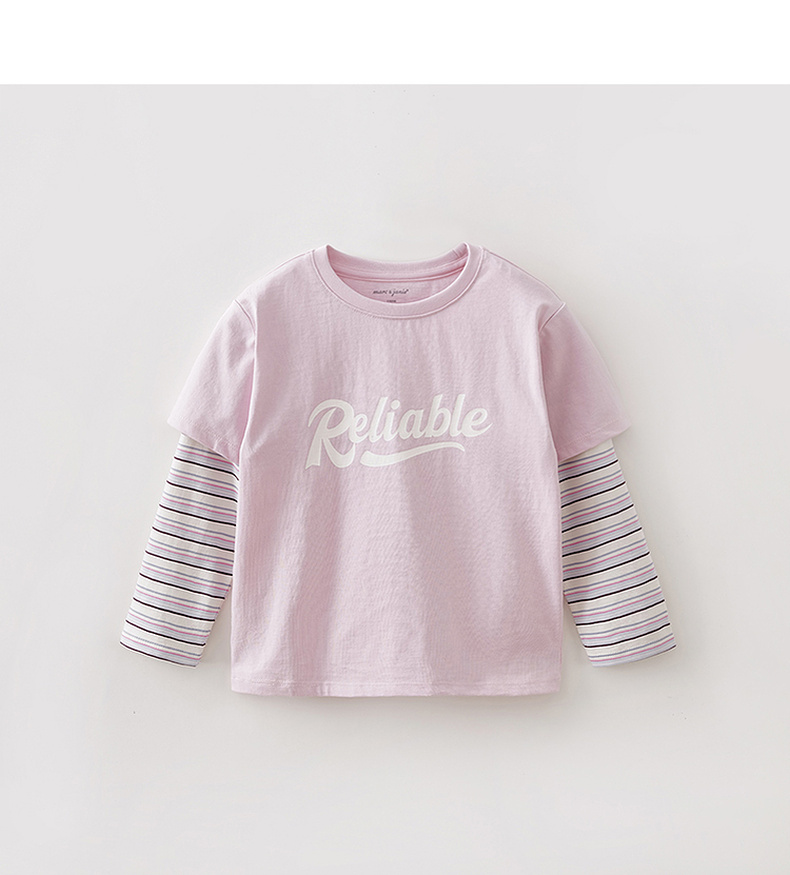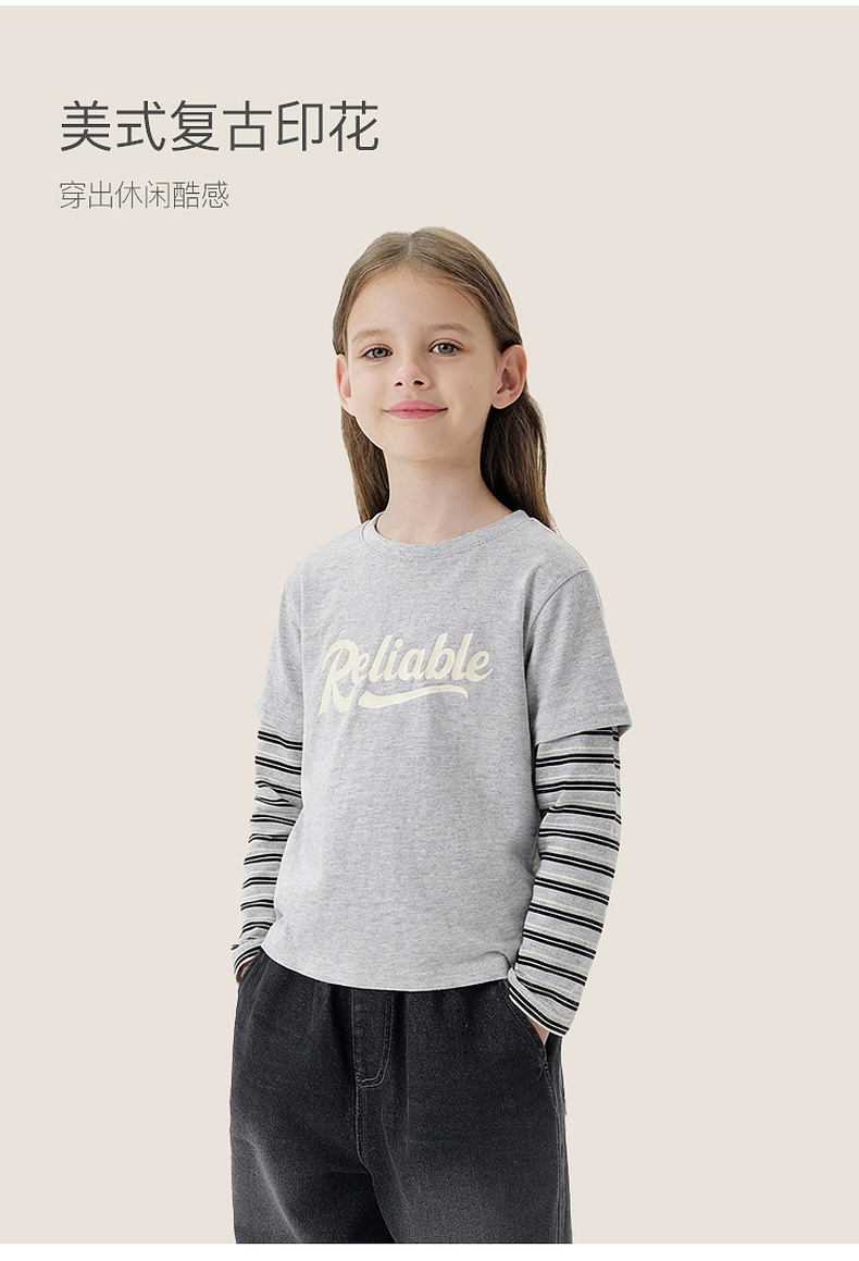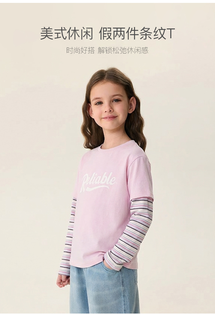 马克珍妮美式休闲女童假两件条纹T恤2026年春装新款560188
