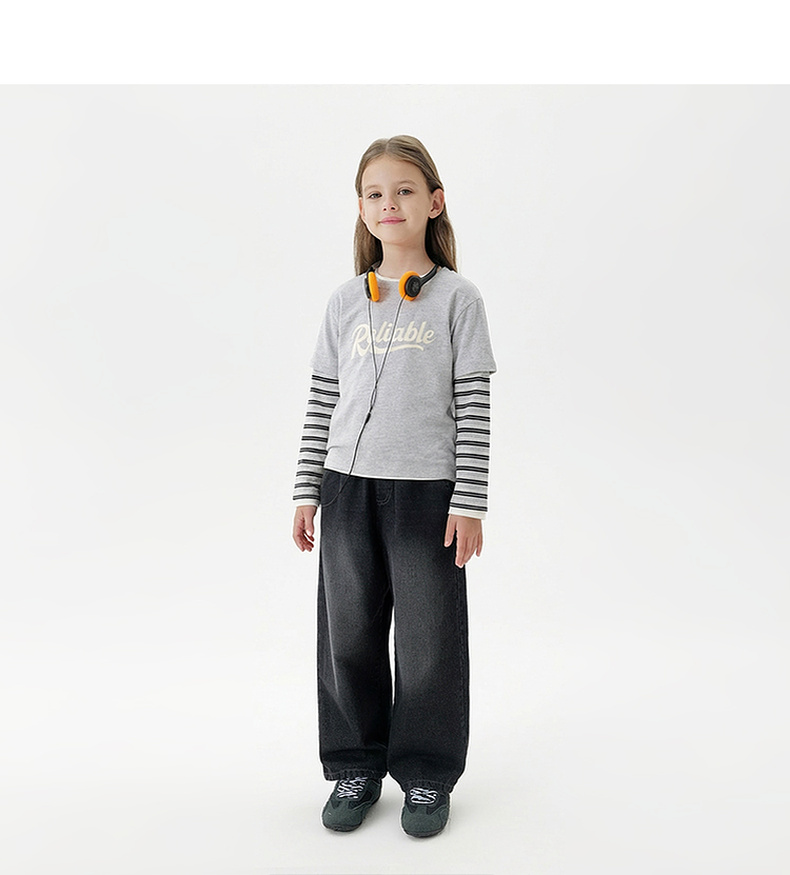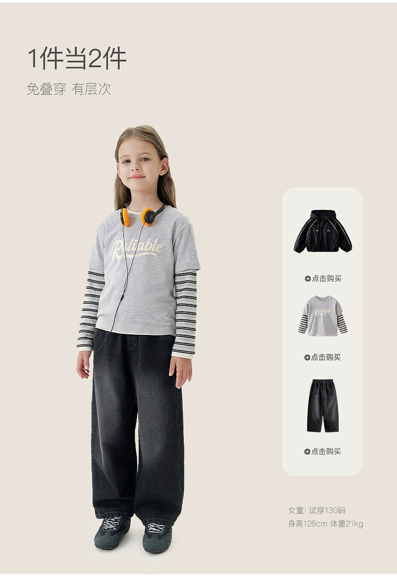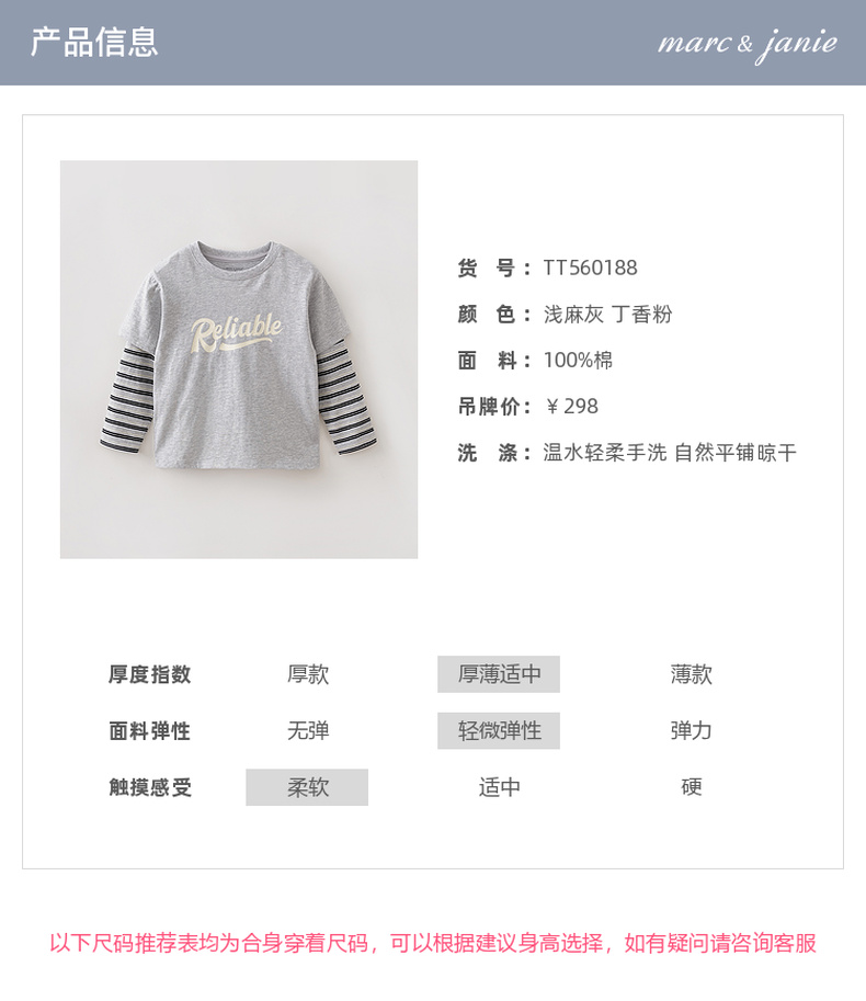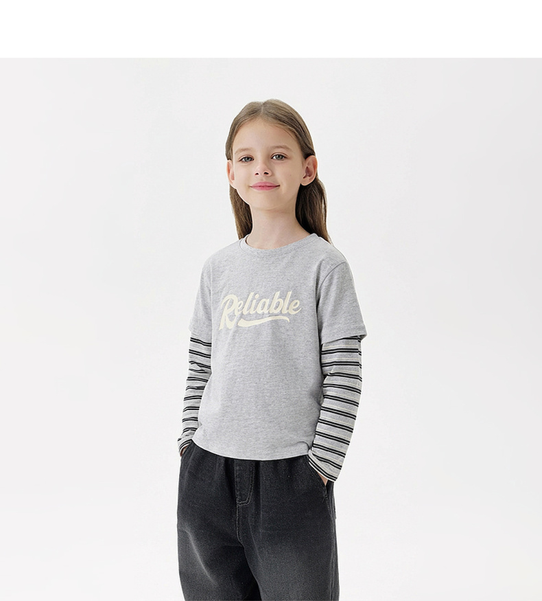 马克珍妮美式休闲女童假两件条纹T恤2026年春装新款560188