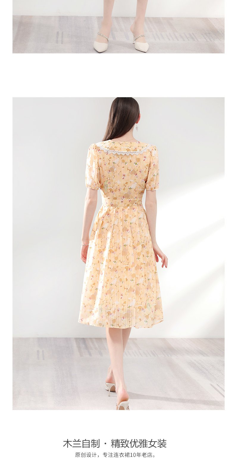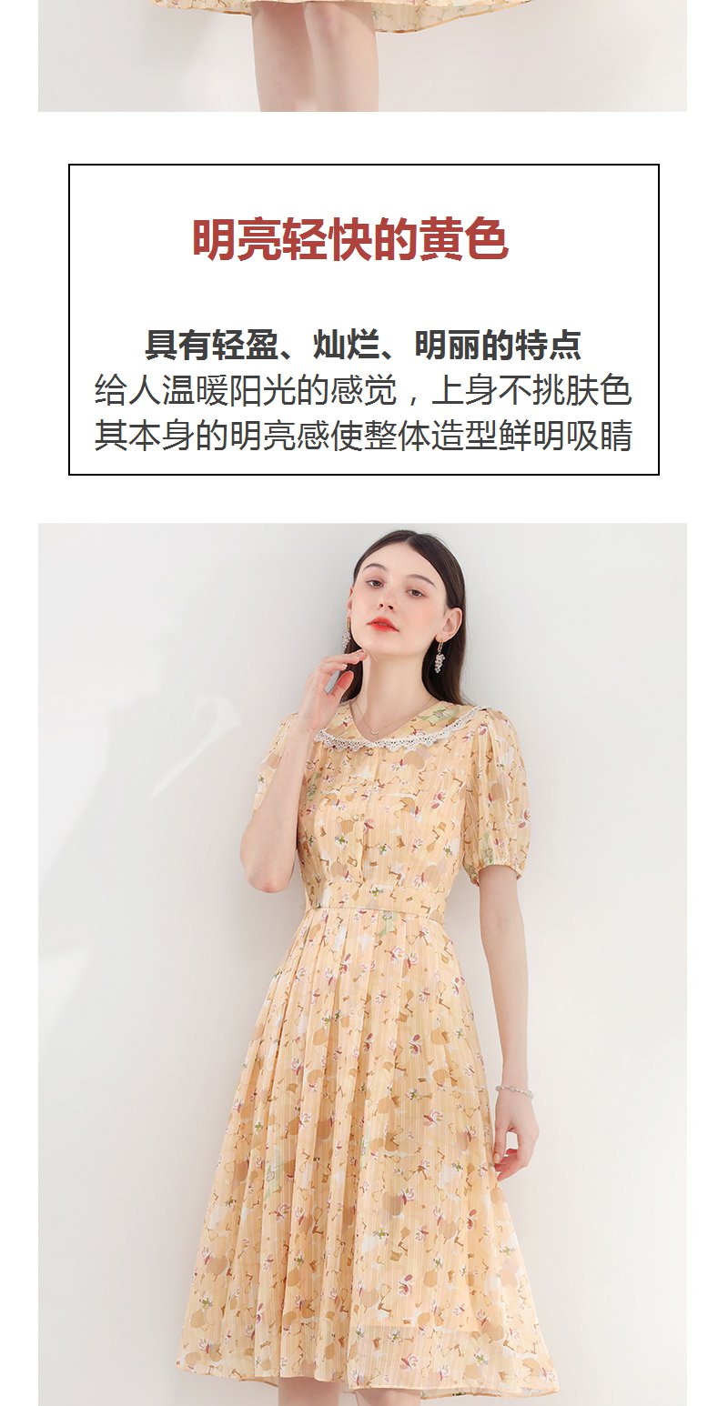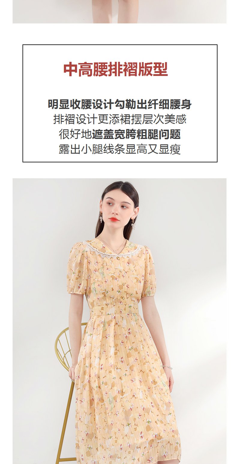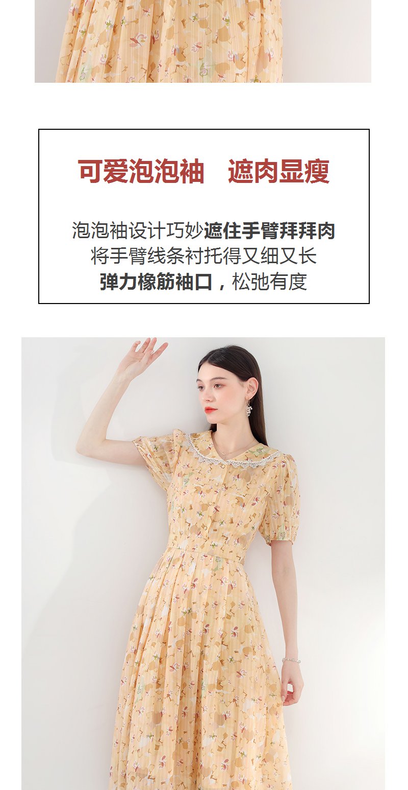 未风黄色雪纺碎花连衣裙女夏2025夏季新款气质法式泡泡袖显瘦裙子