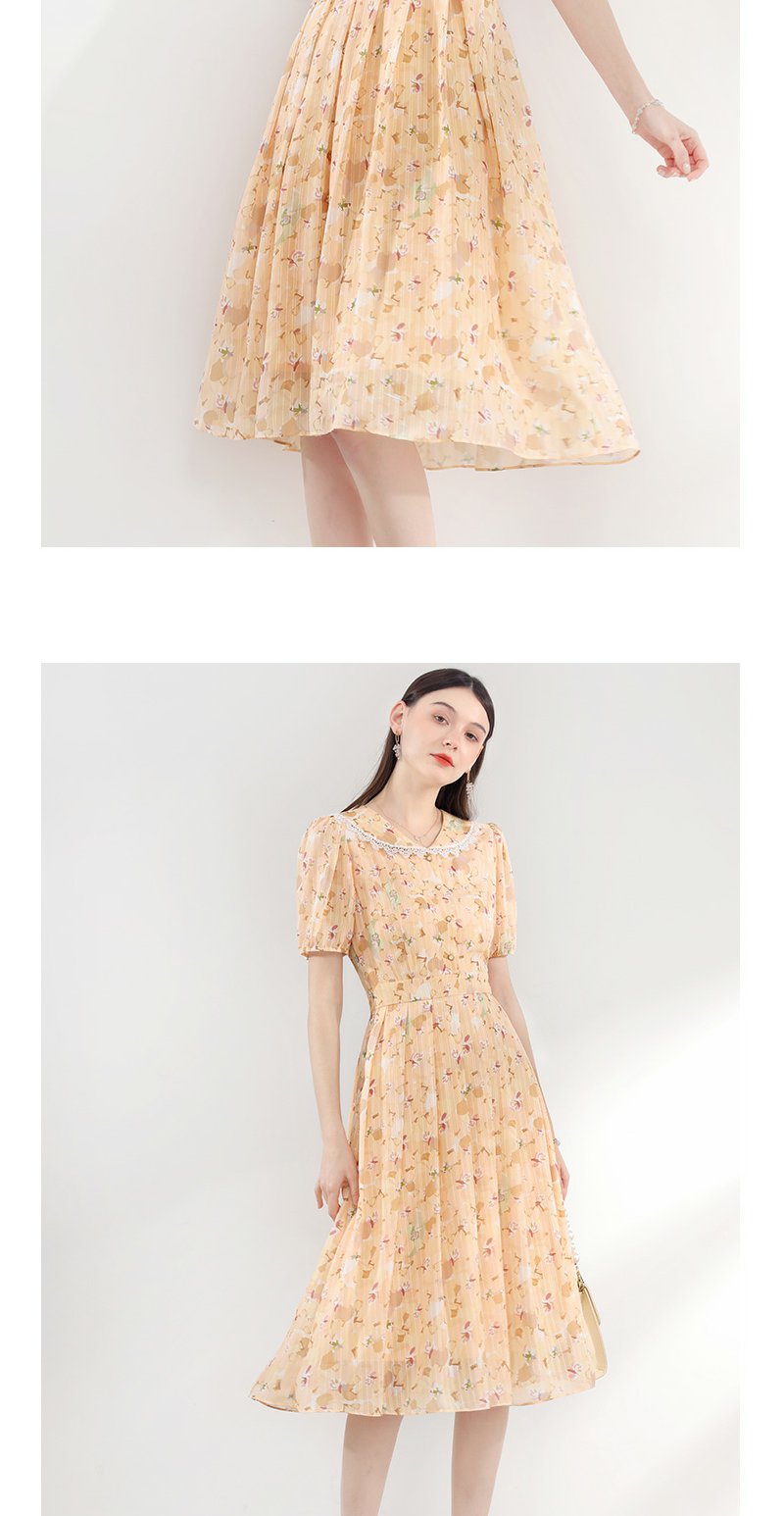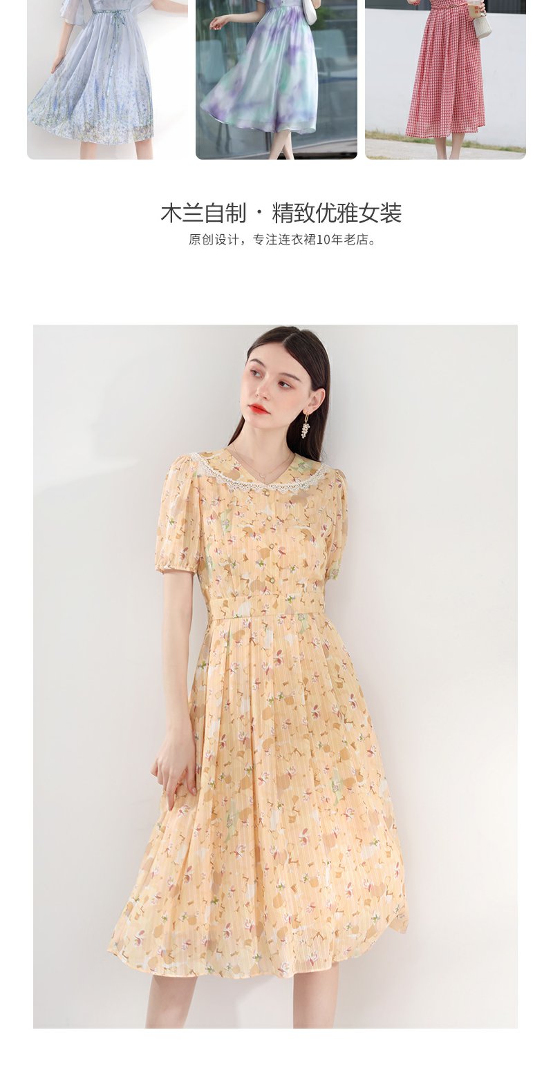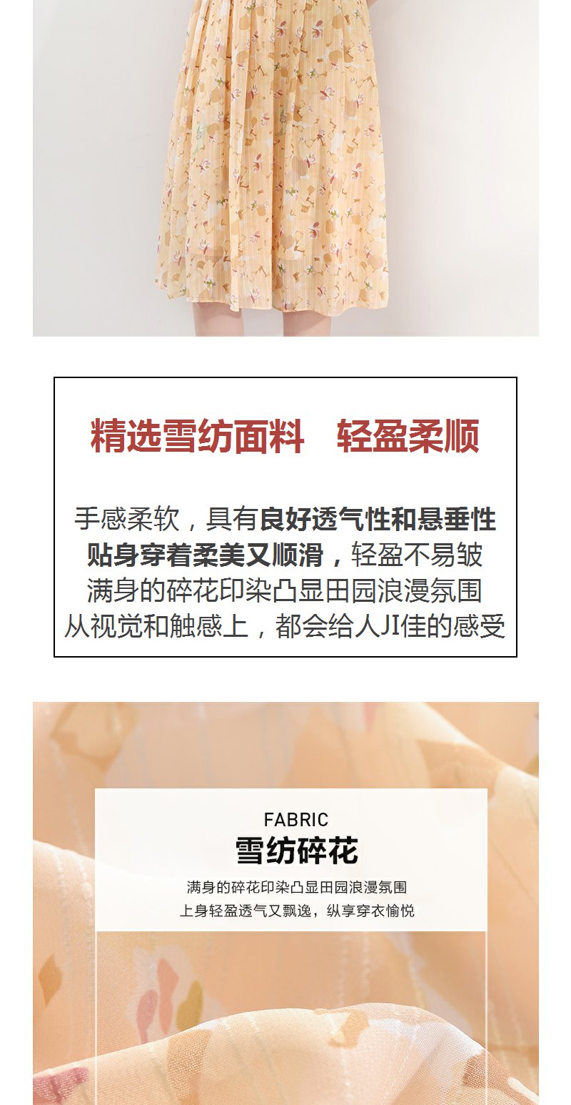 未风黄色雪纺碎花连衣裙女夏2025夏季新款气质法式泡泡袖显瘦裙子