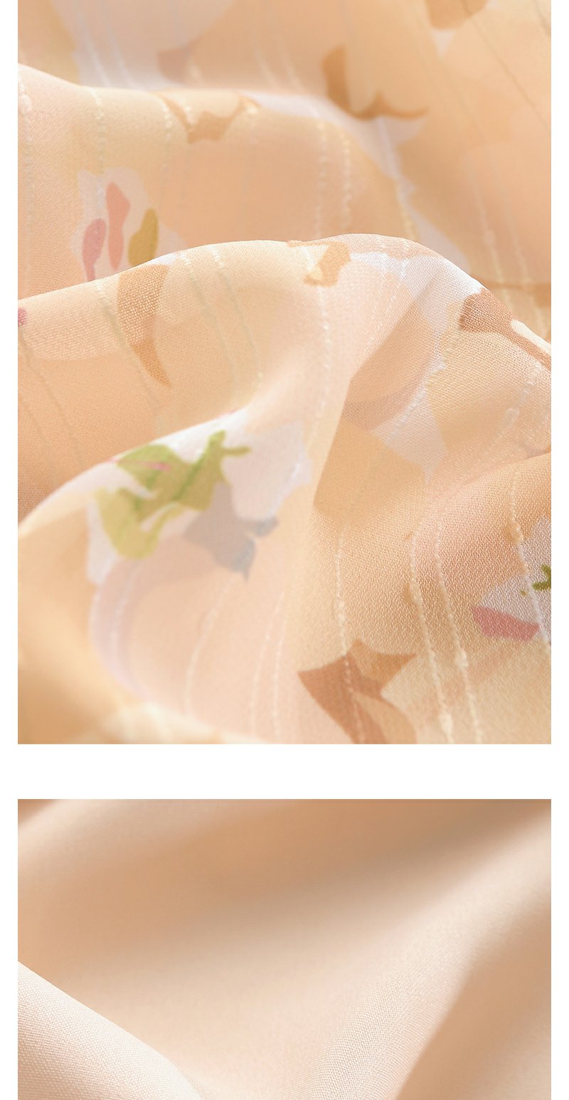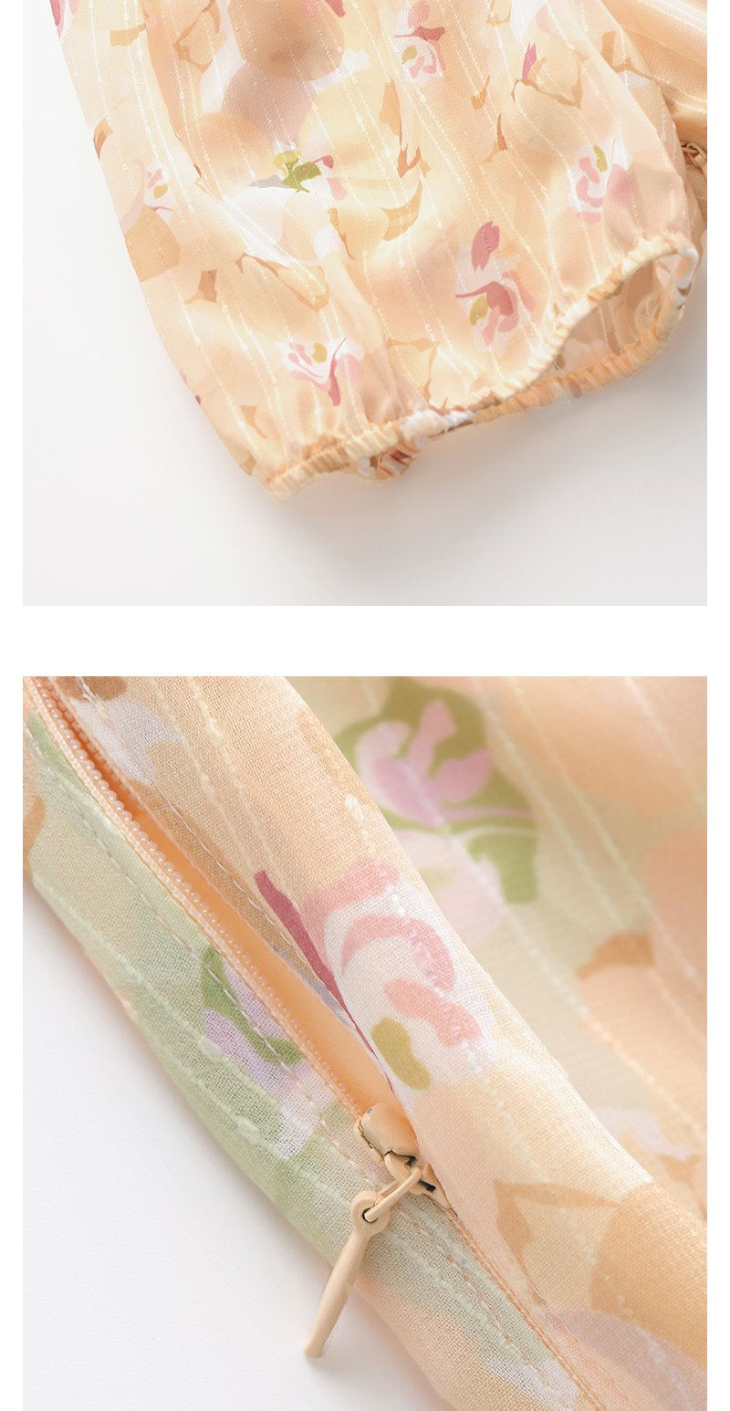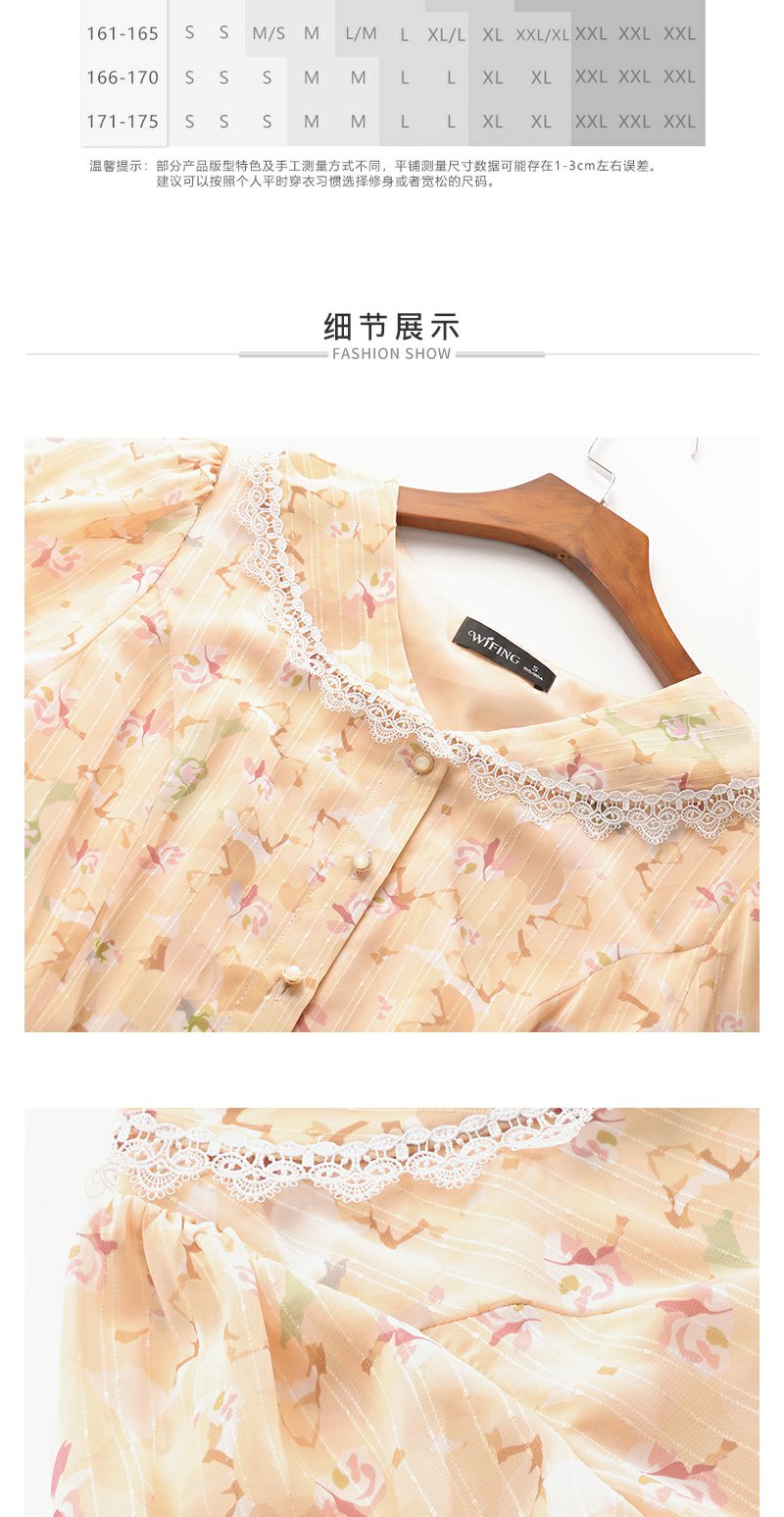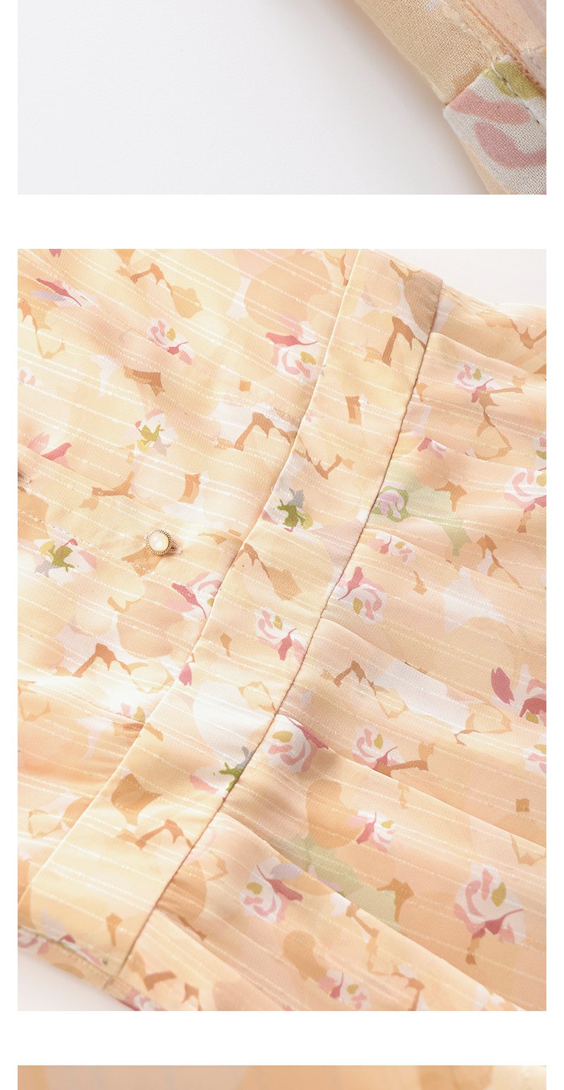 未风黄色雪纺碎花连衣裙女夏2025夏季新款气质法式泡泡袖显瘦裙子