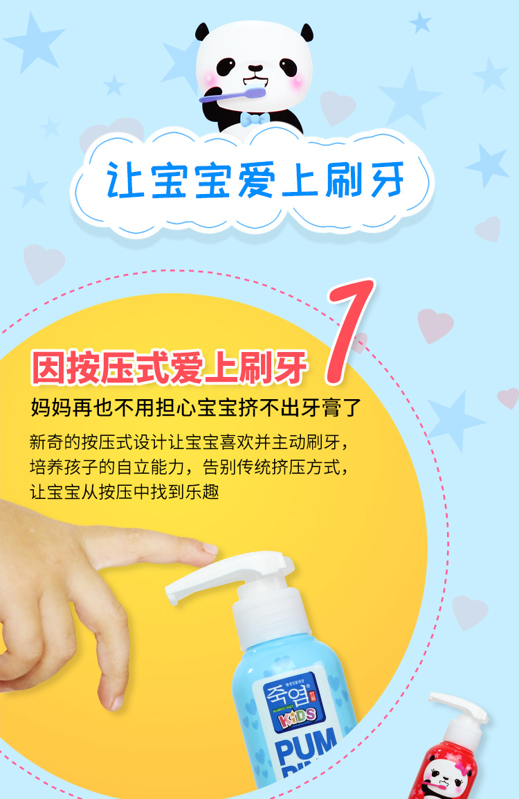 【中欧班列精选】韩国进口XDR 儿童按压牙膏 草莓味 儿童按压牙膏 苹果味 160g