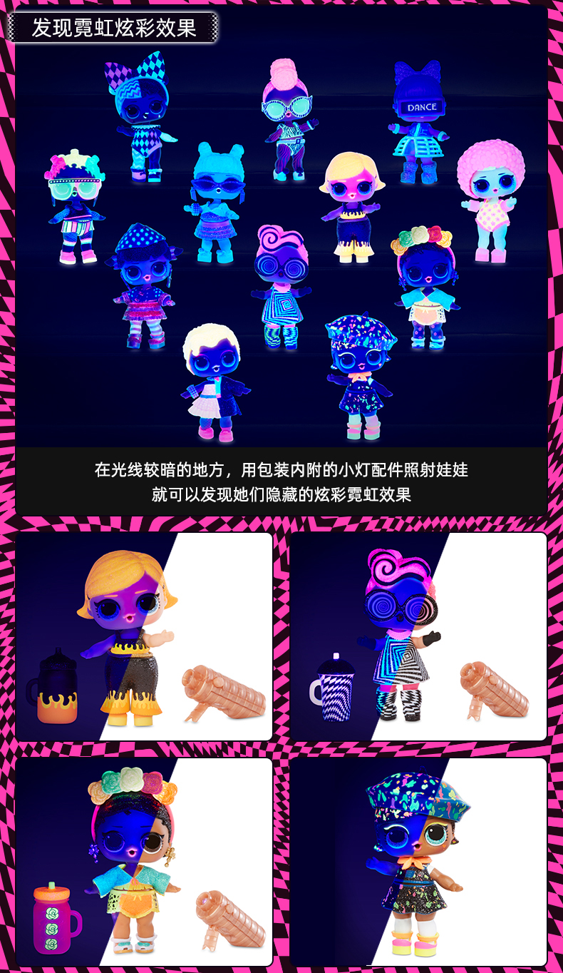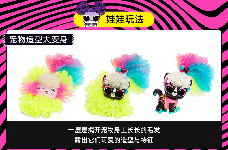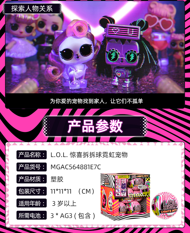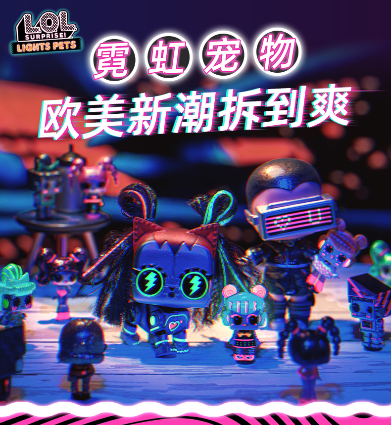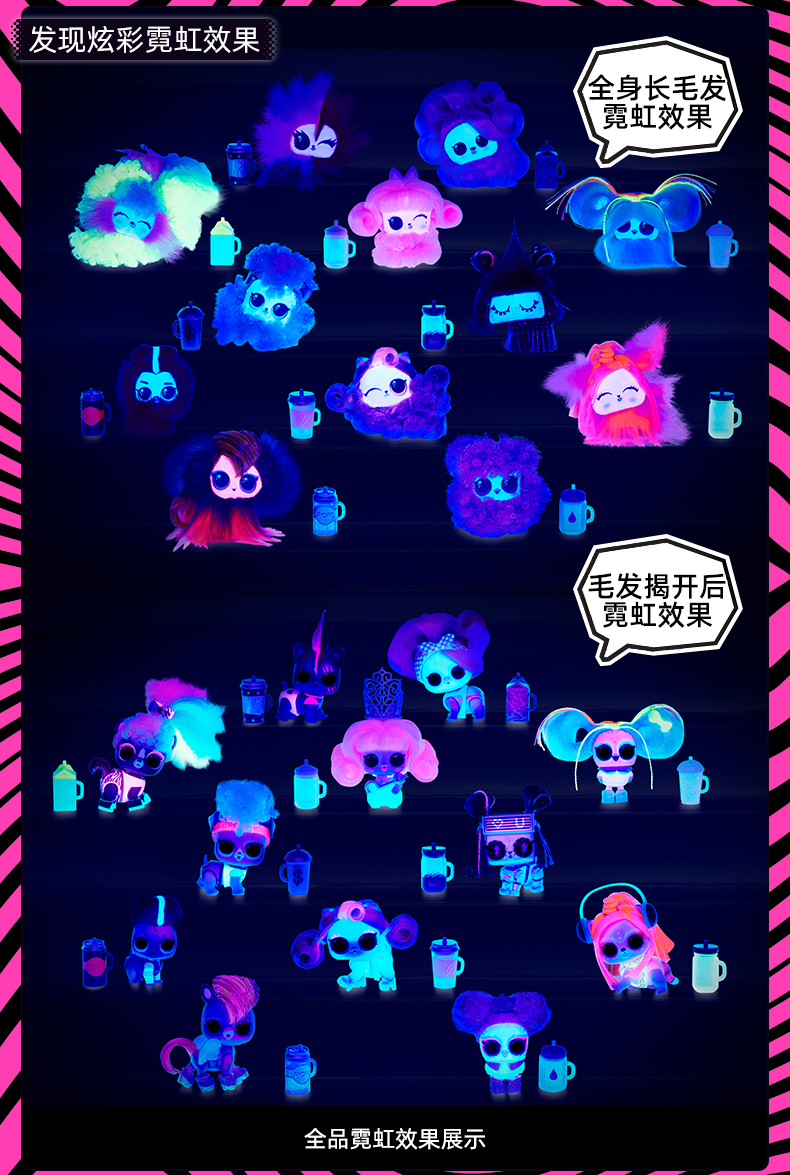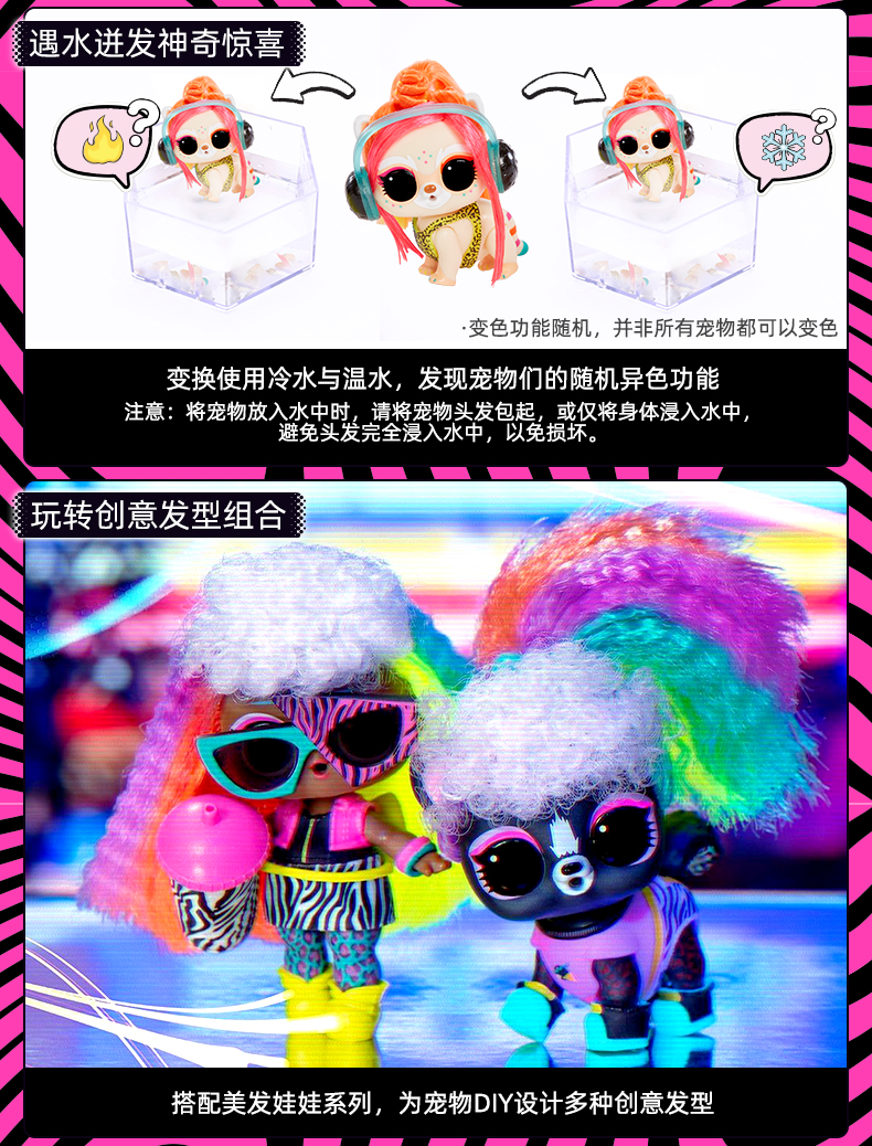 MGA lol惊喜娃娃霓虹系列宠物盲盒拆拆球时尚发型玩偶女孩DIY
