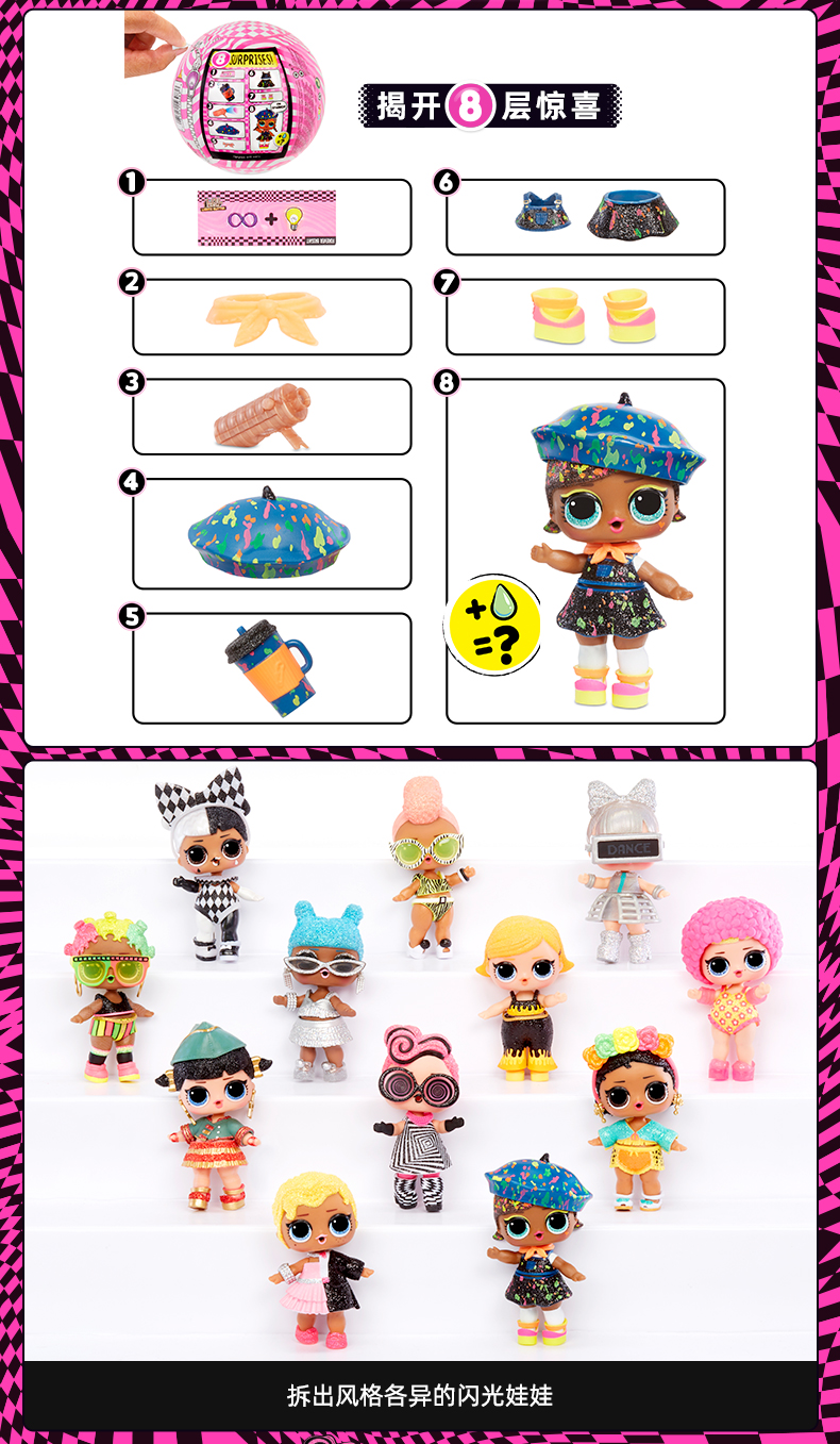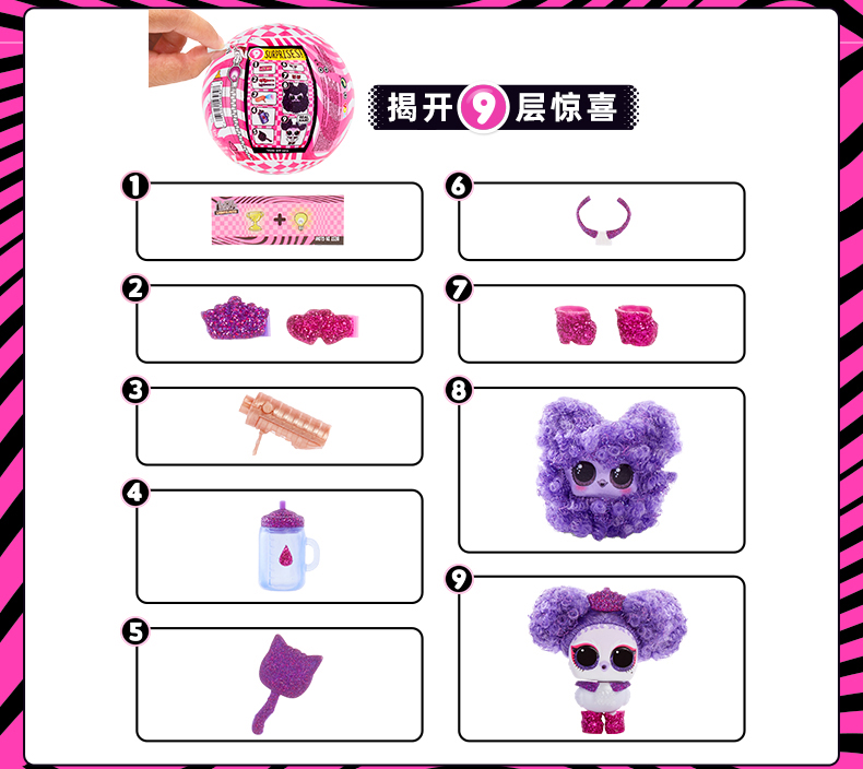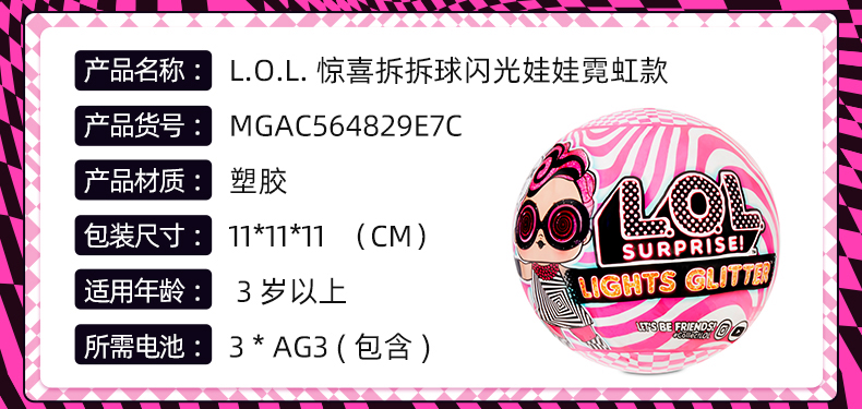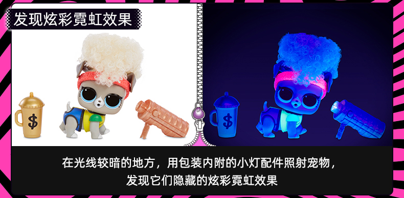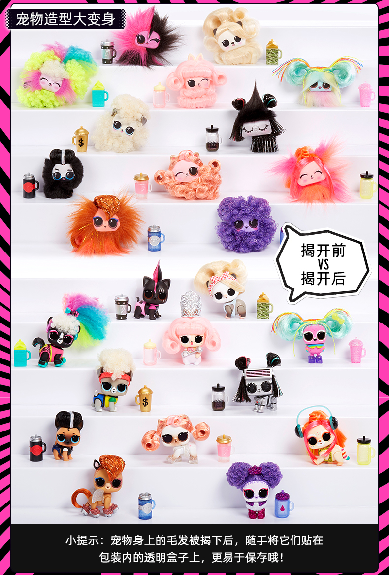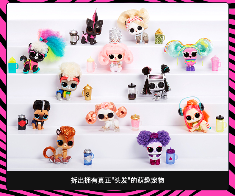 MGA lol惊喜娃娃霓虹系列宠物盲盒拆拆球时尚发型玩偶女孩DIY