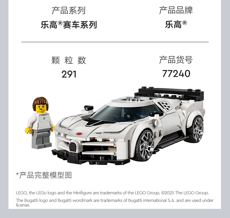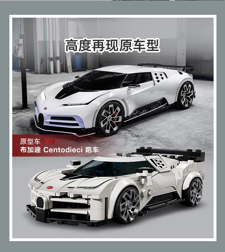 乐高LEGO 布加迪 Centodieci 超级跑车LEGC77240