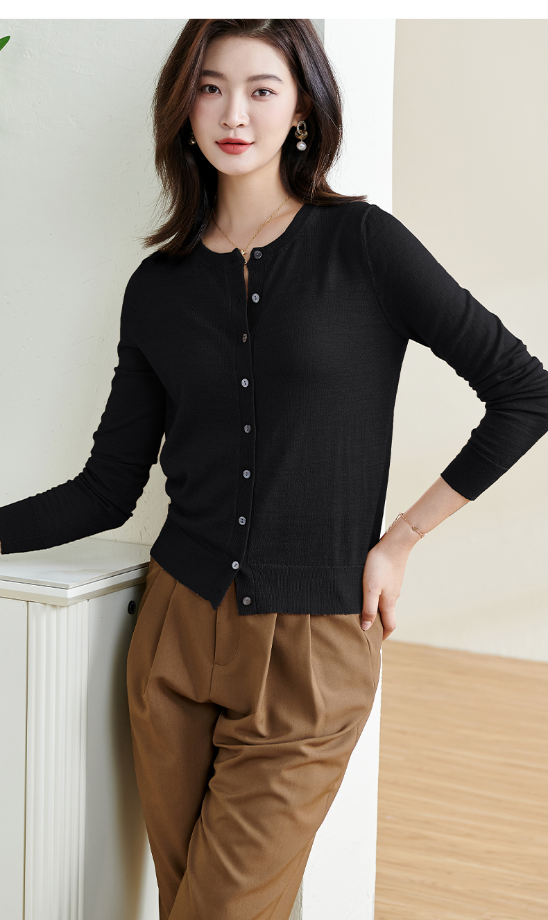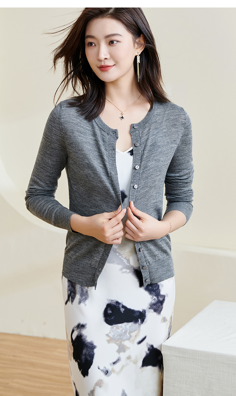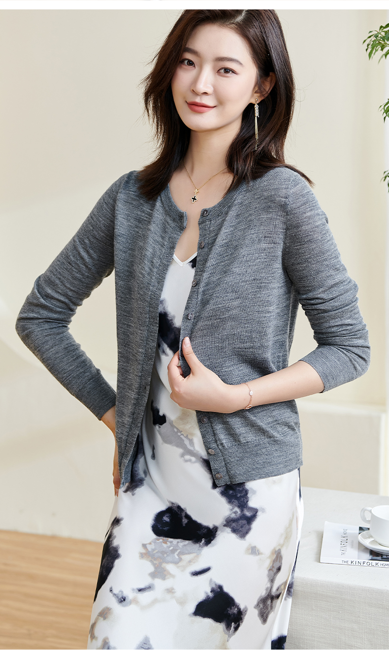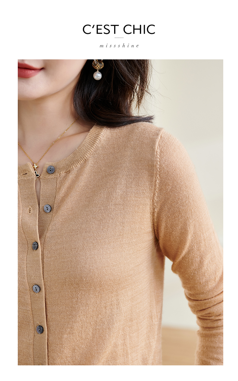 剩S/XL/L 米思阳2026春季新款通勤简约弹力空调衫薄款开衫螺纹羊毛针织衫女