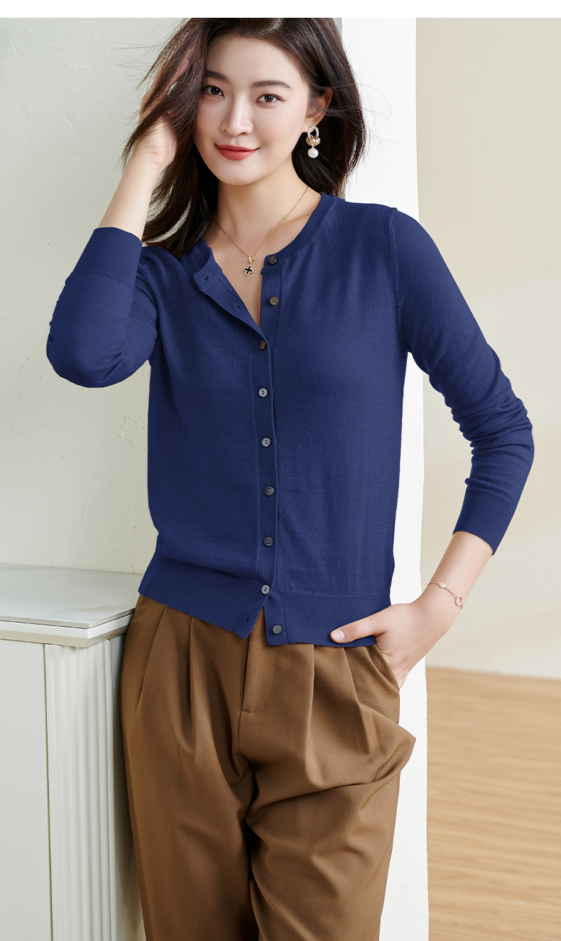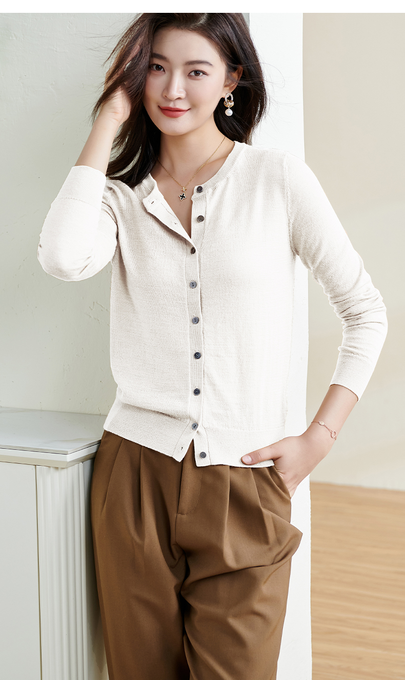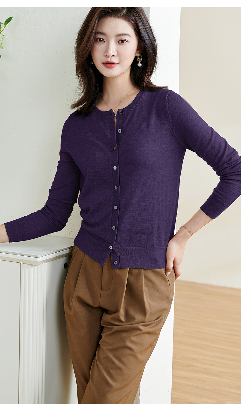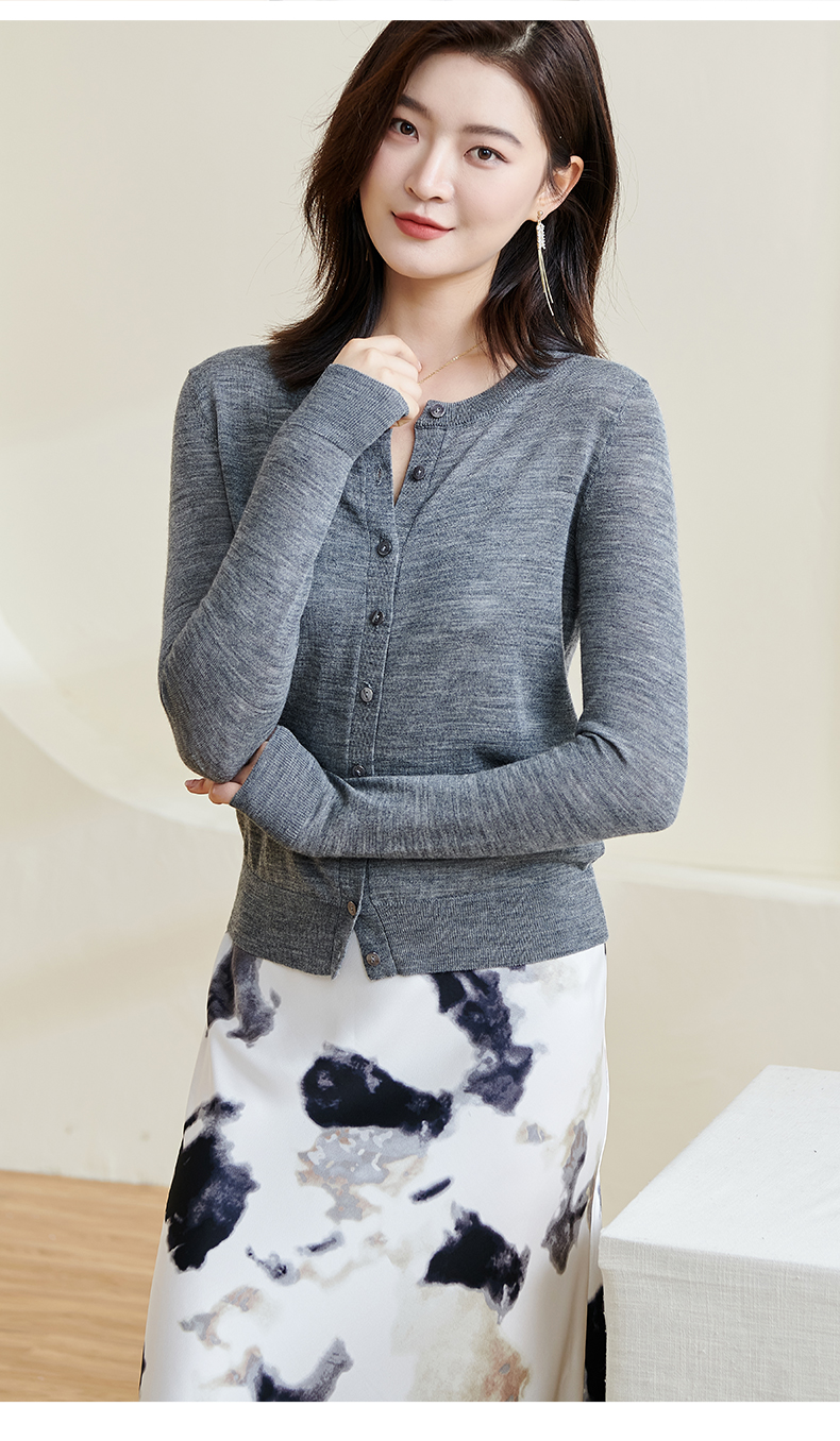 剩S/XL/L 米思阳2026春季新款通勤简约弹力空调衫薄款开衫螺纹羊毛针织衫女