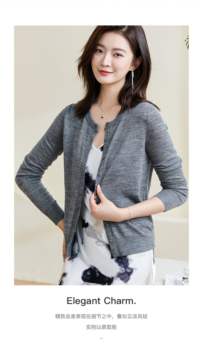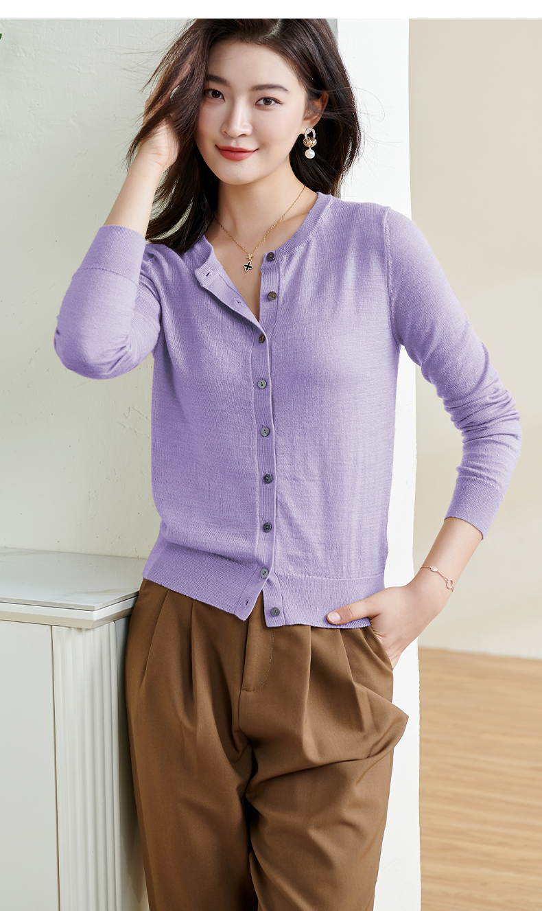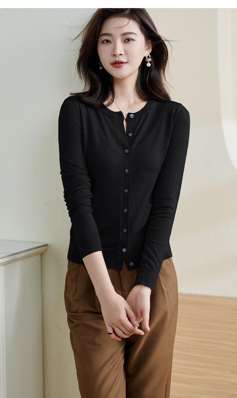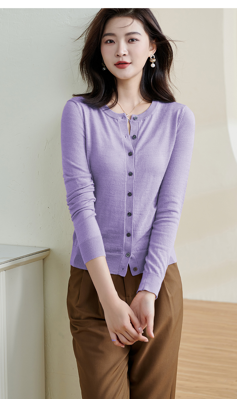 剩S/XL/L 米思阳2026春季新款通勤简约弹力空调衫薄款开衫螺纹羊毛针织衫女