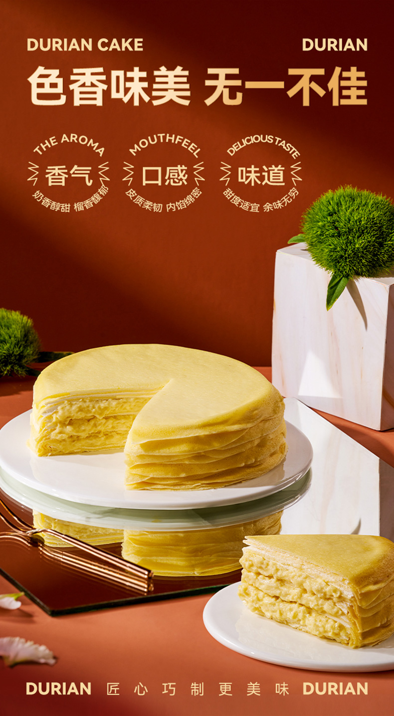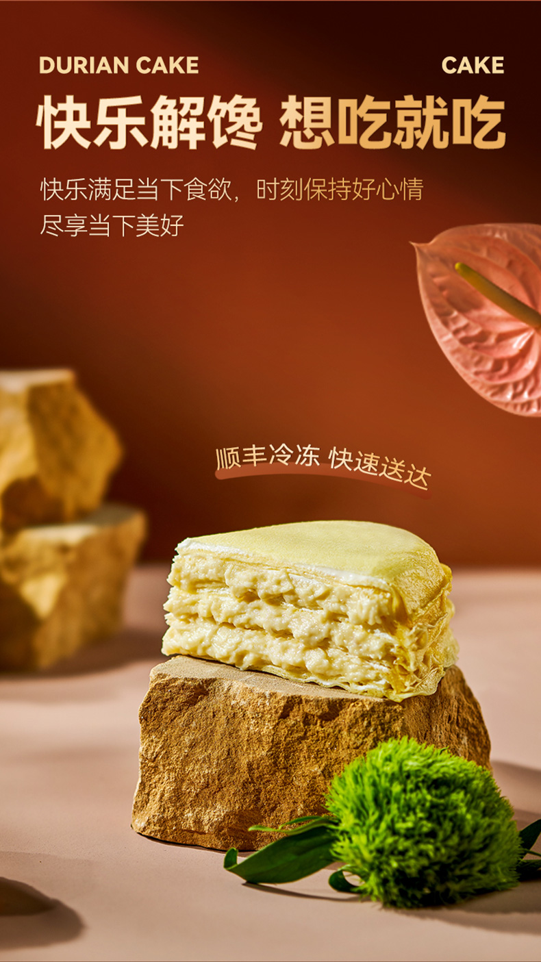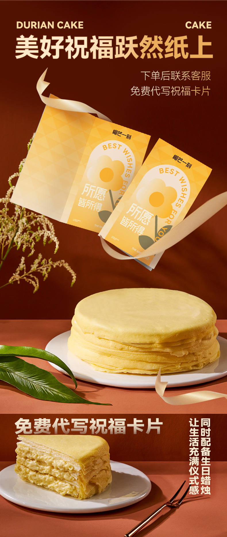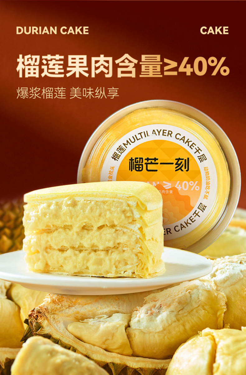 踏青款-树熟榴莲千层动物奶油蛋糕-400克 包装根据时节不定期更新 | 榴芒一刻