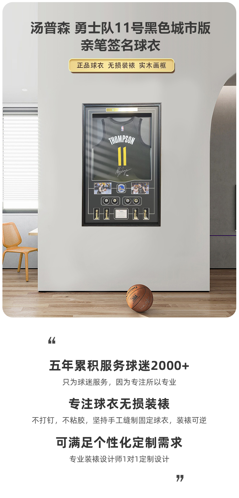 收藏系列 汤普森 勇士队11号黑色城市版 亲笔签名球衣