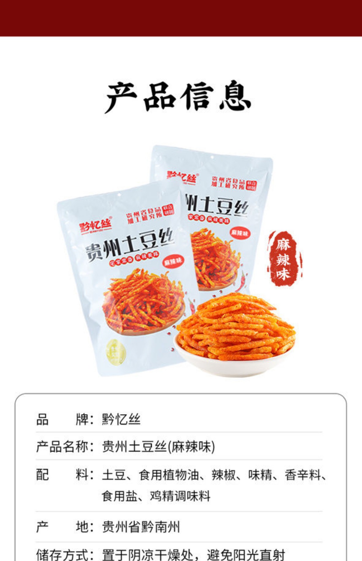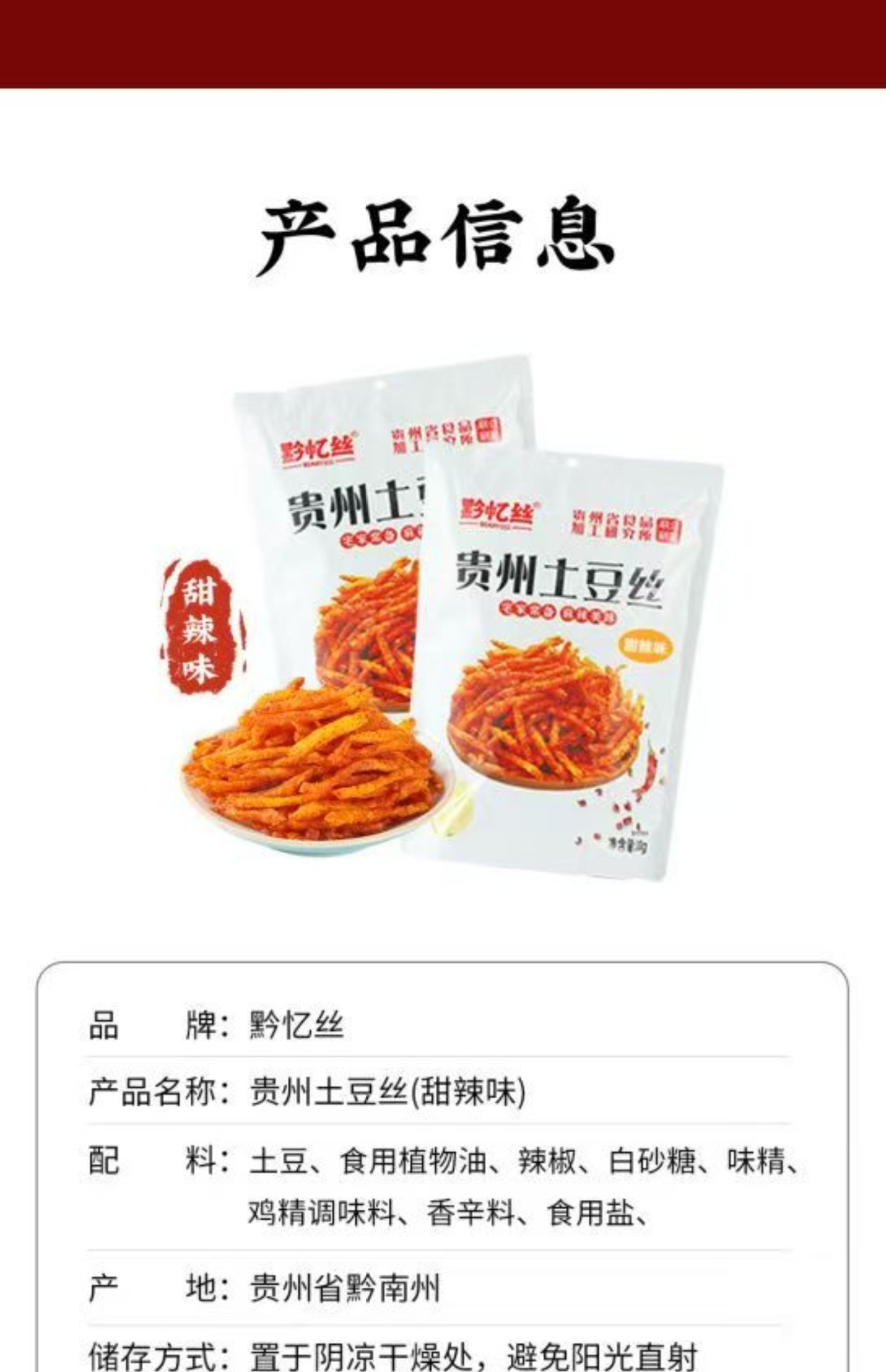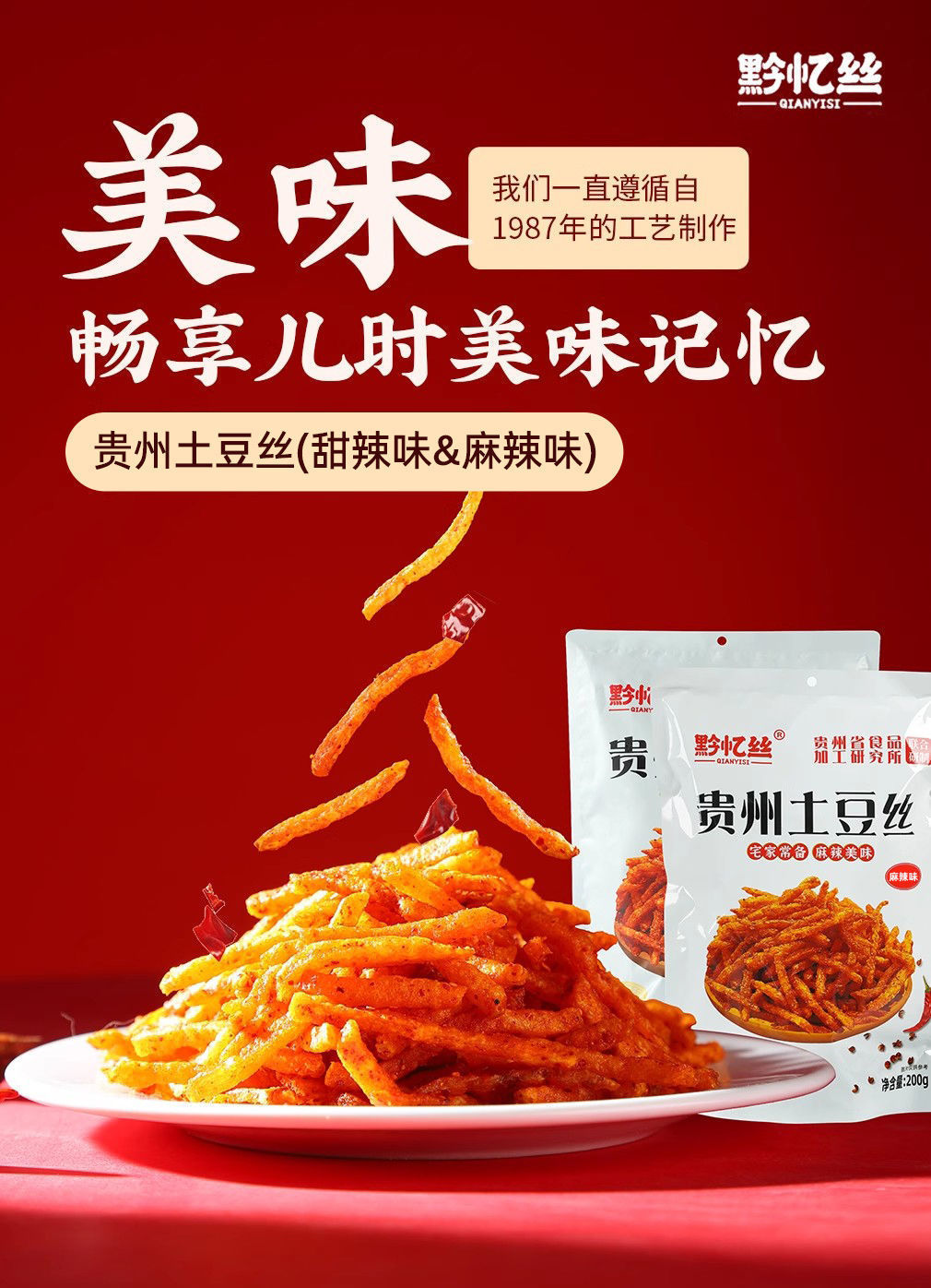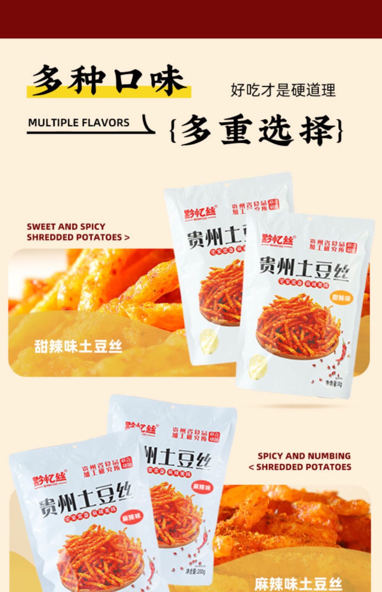 【杨迪同款❗️贵州土豆丝】甜辣互补,先甜后辣,刺激味蕾越嚼越香,口感层次更丰富,贵州特产黔忆丝土豆丝土豆片追剧解馋零食QQ