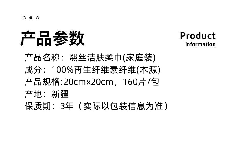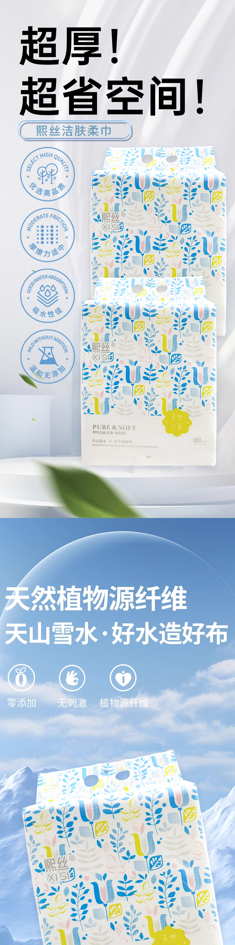 熙丝洁肤柔巾20*20cm*160片【家庭装】
