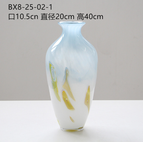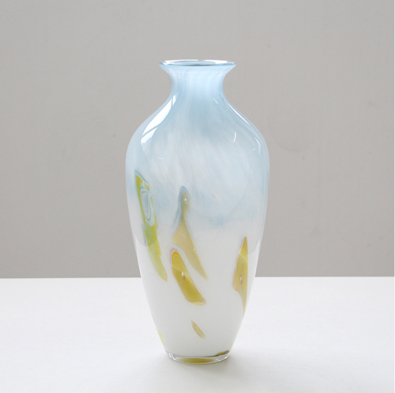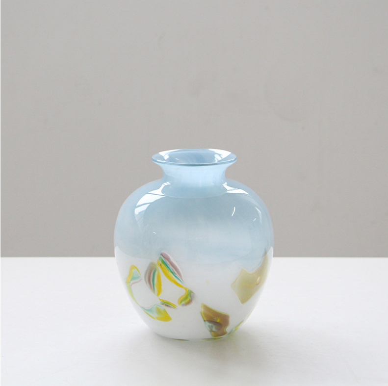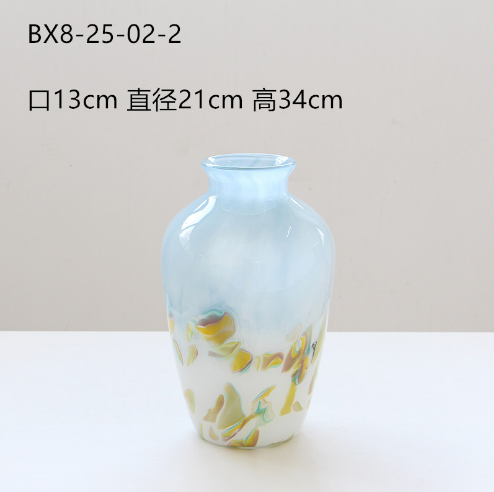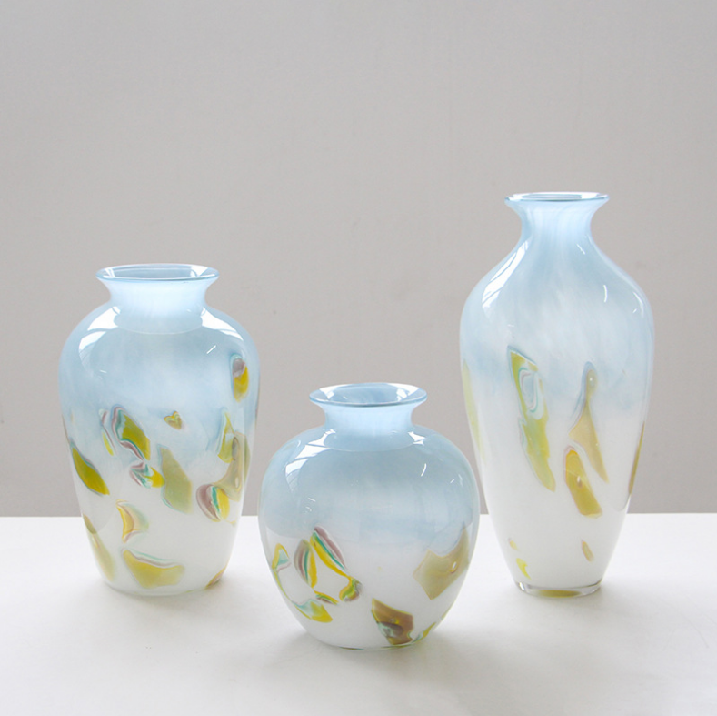 厂家直销中古风手工渐变天空蓝玻璃花瓶轻奢风桌面居家鲜花瓶批发