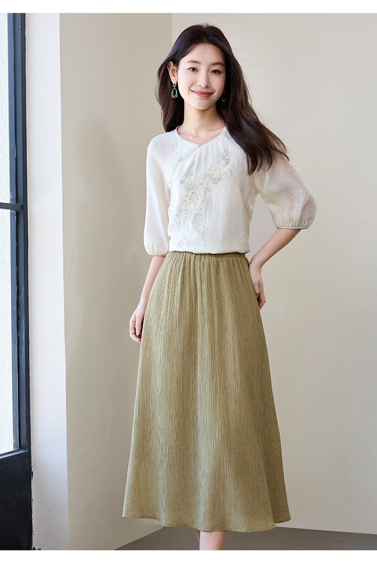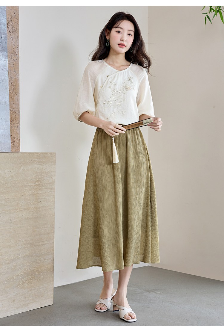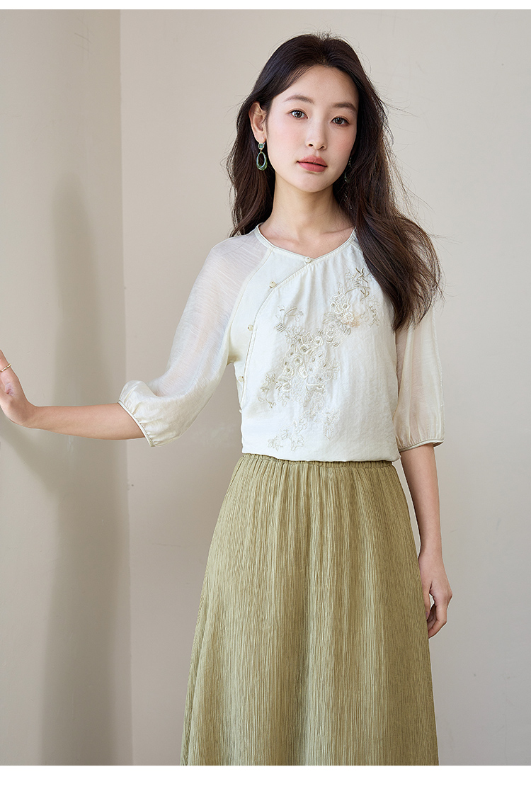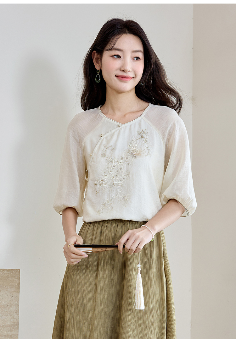 【专属特价】熙世界2025夏新款国风女装复古新中式斜襟重工绣花天丝衬衫上衣