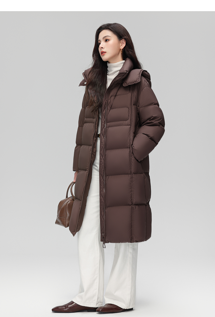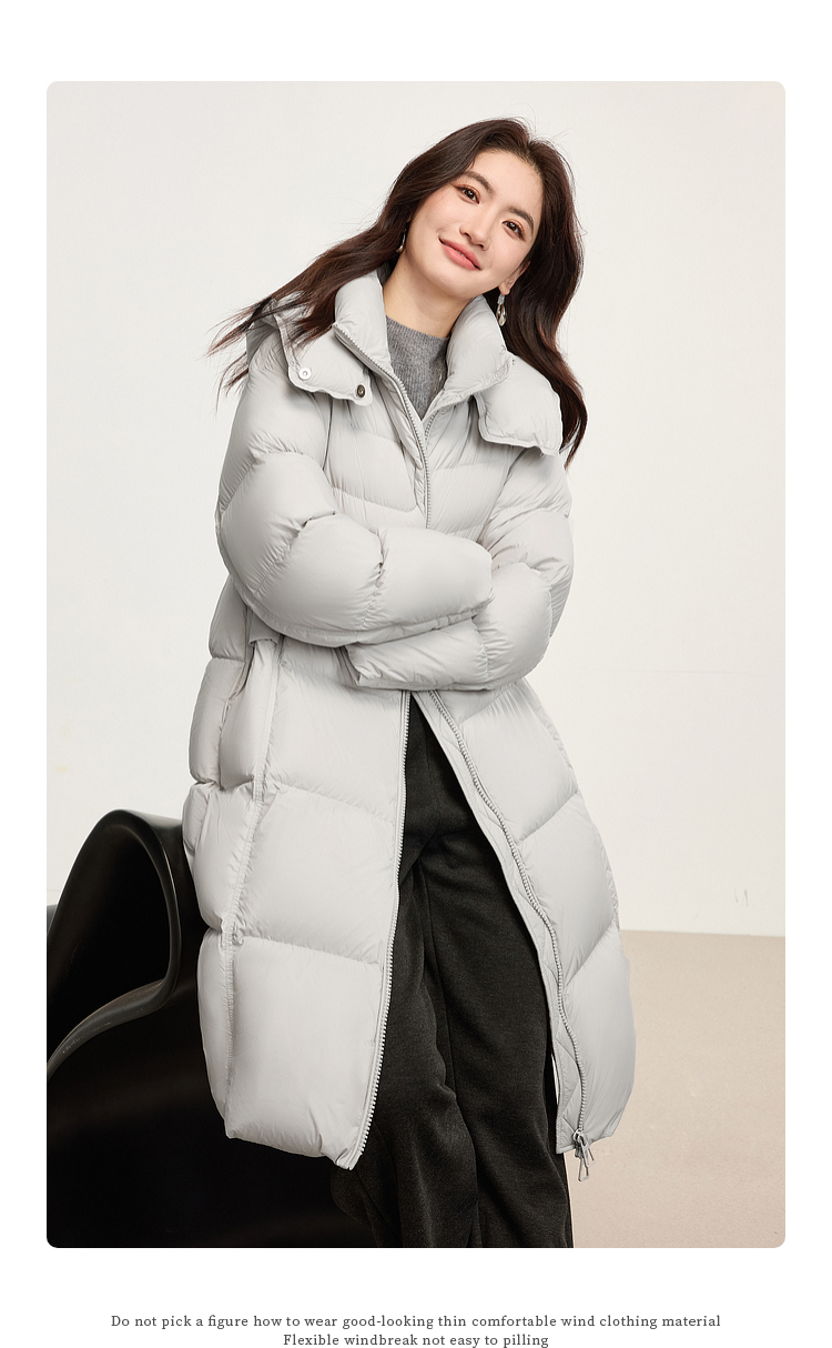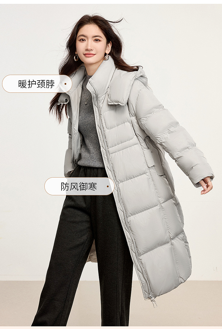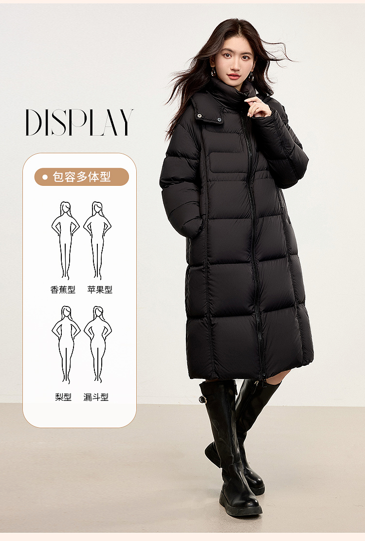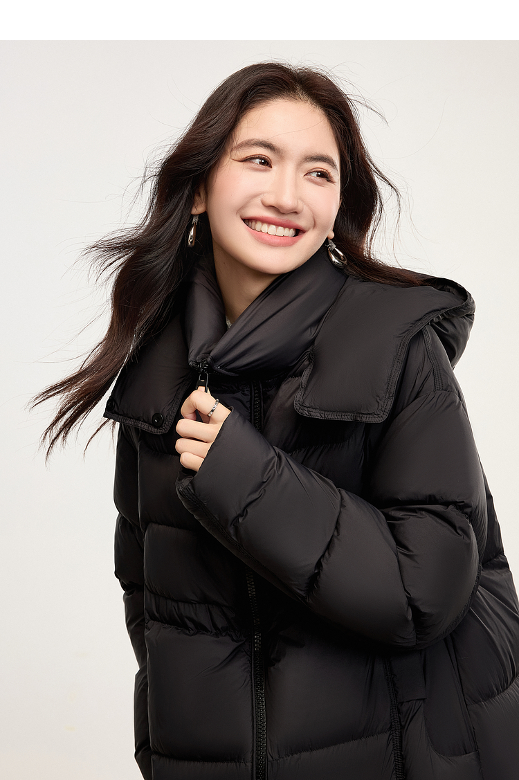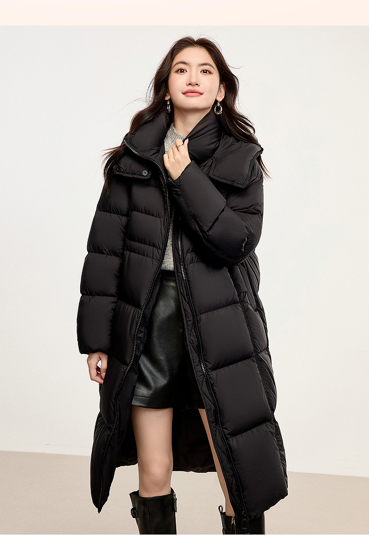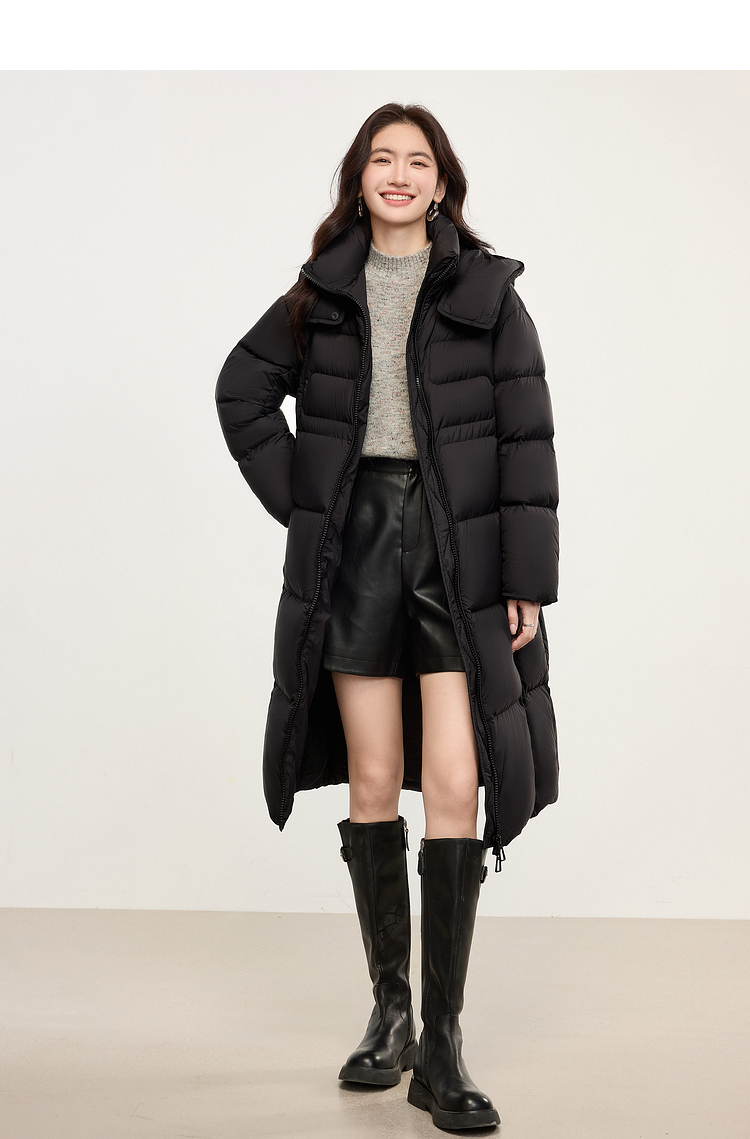 【年终特卖】熙世界女士长款面包羽绒服女冬新款立领连帽保暖白鸭绒黑色厚外套