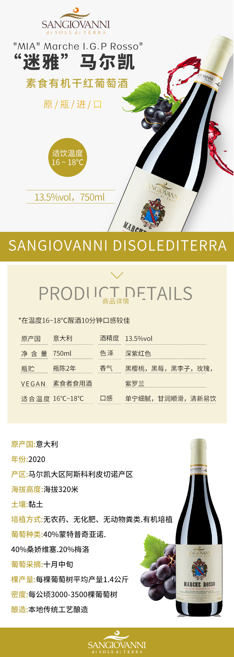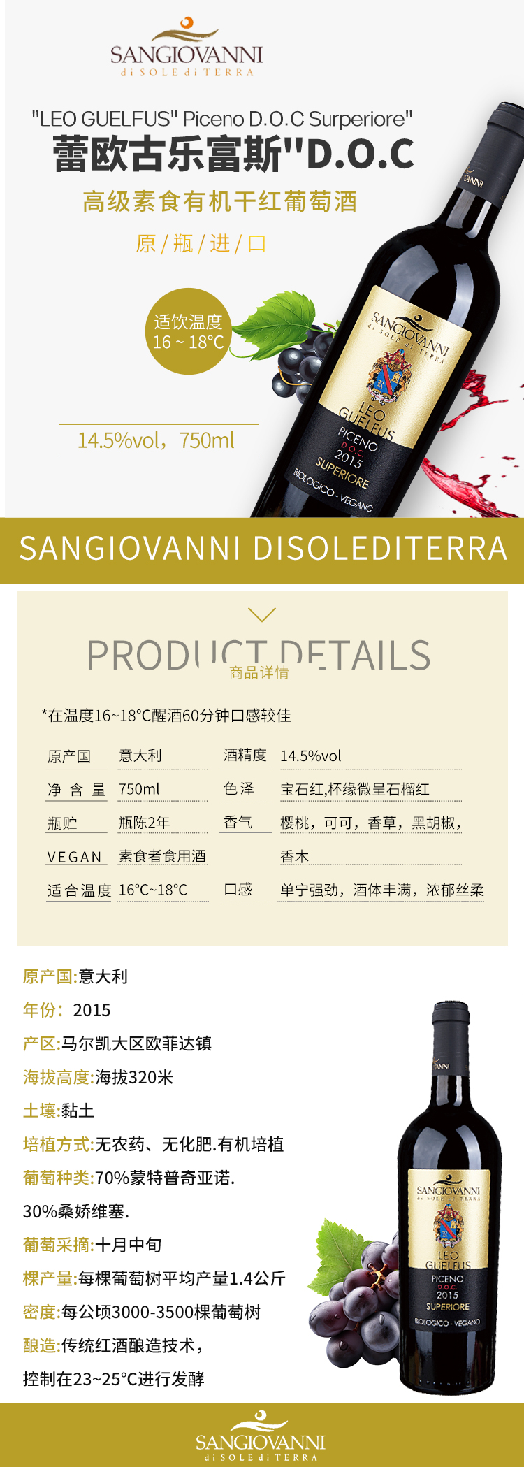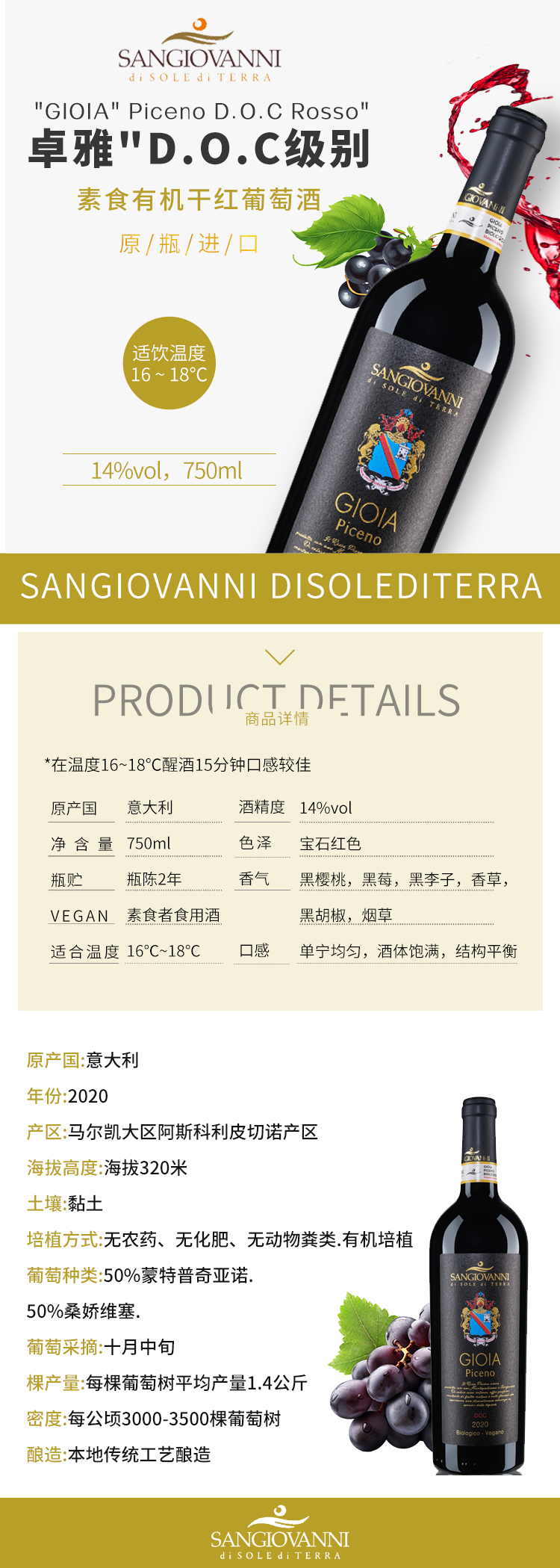 双重有机认证意大利原瓶原装进口有机葡萄酒 源自意大利有机酒庄素食干红 有机白葡萄酒 素食饮用酒 750ML*2瓶