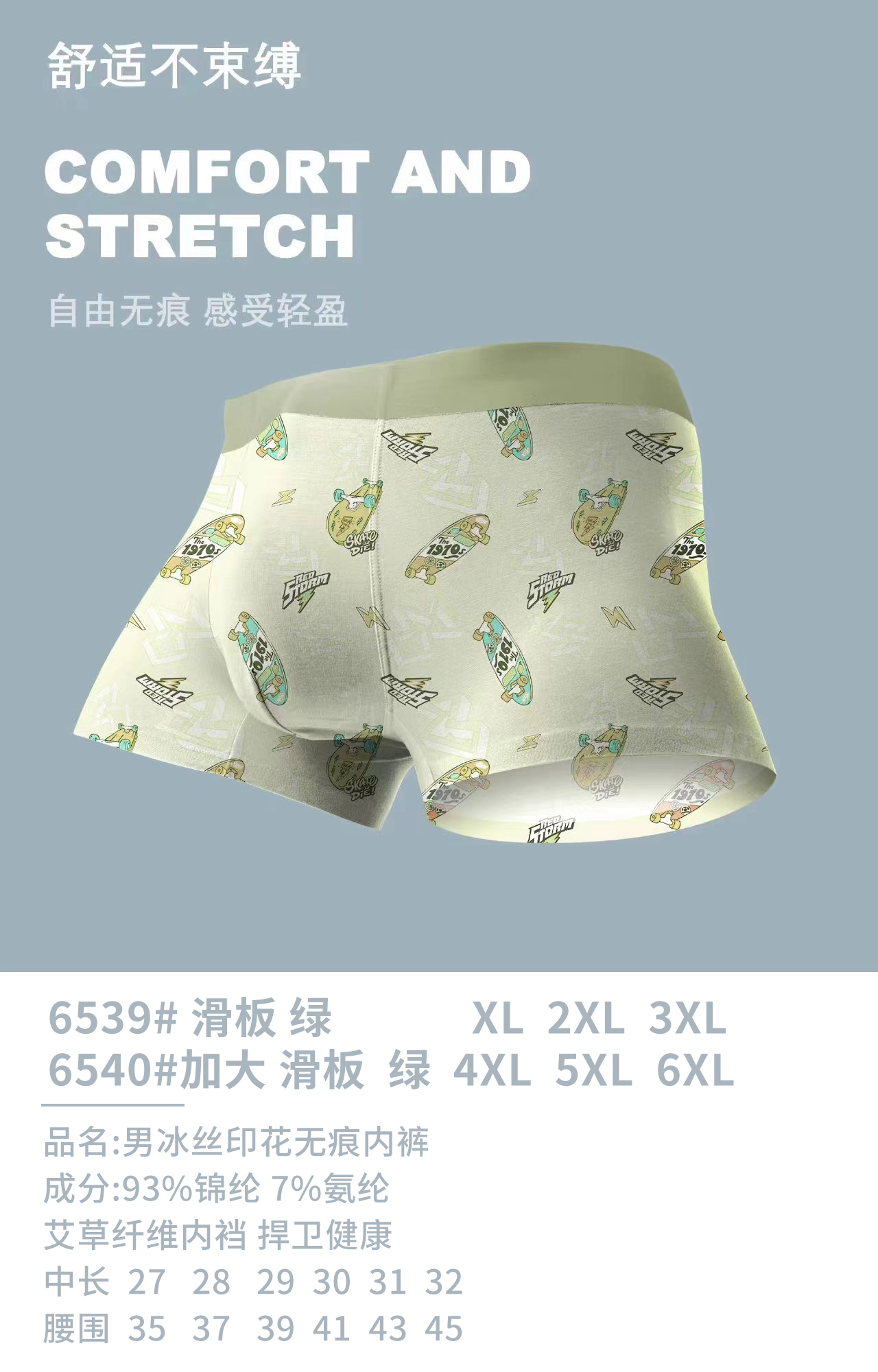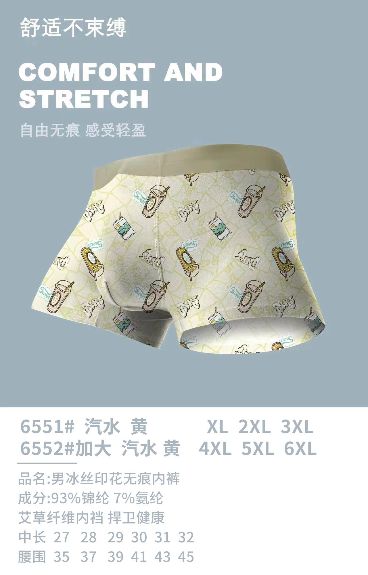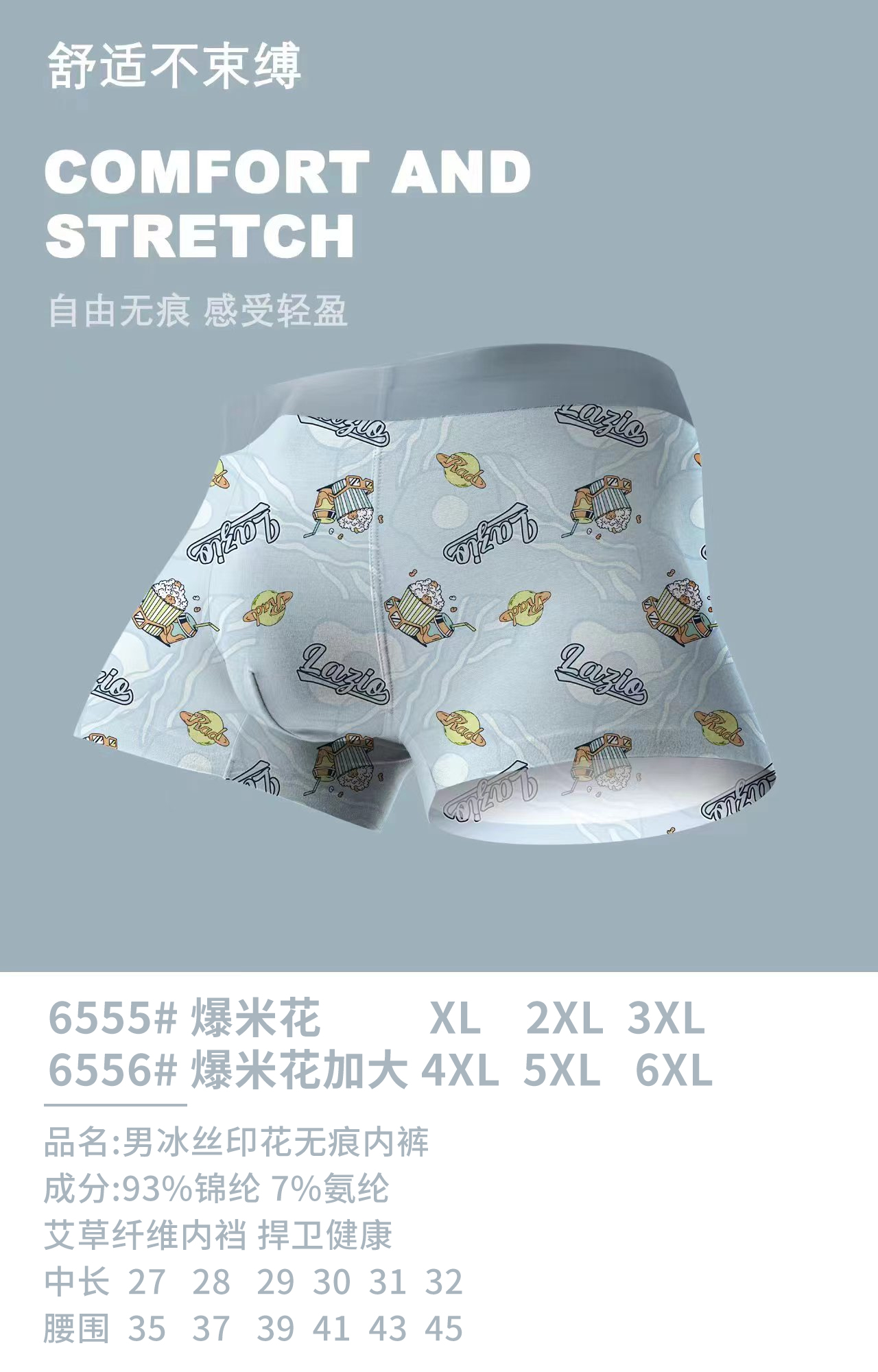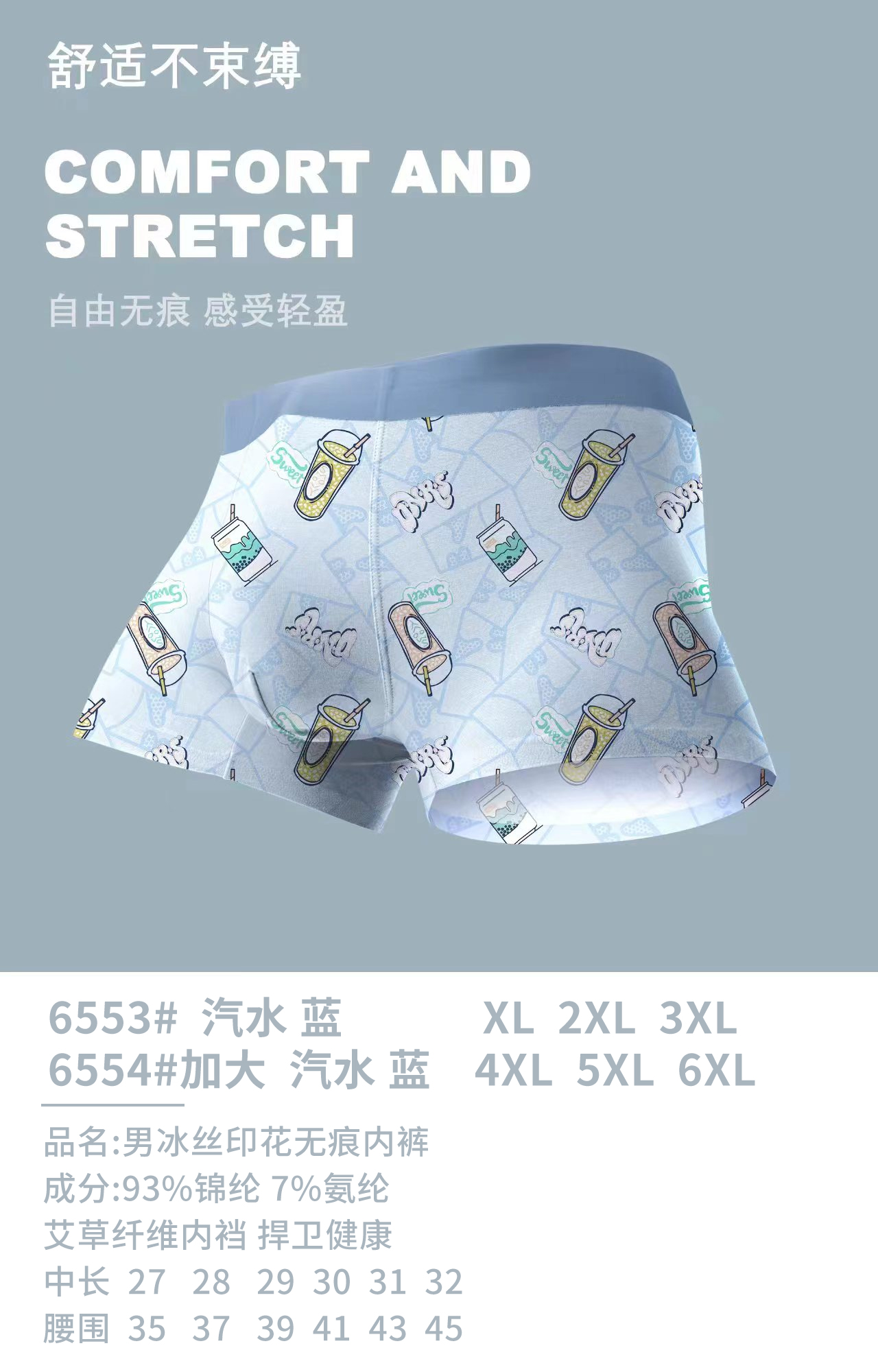 男士空调裤锦纶冰丝印花加肥加大无痕内裤3017