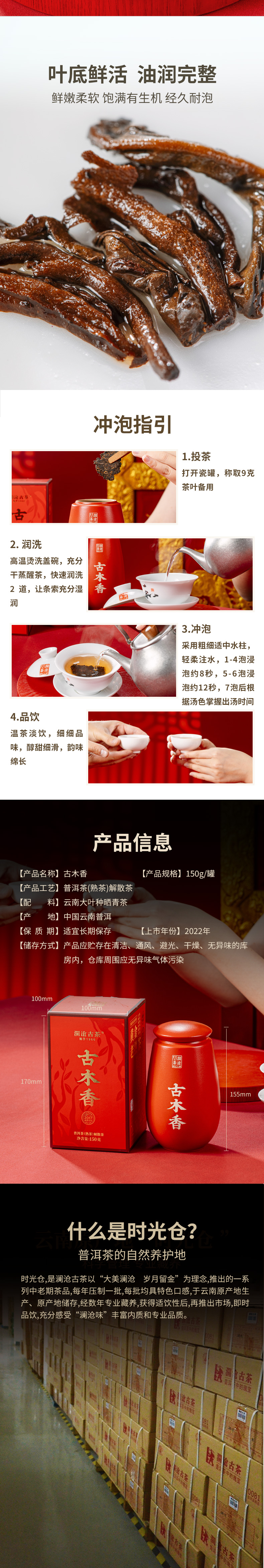 澜沧古茶2022年古木香5年陈普洱茶熟茶150g