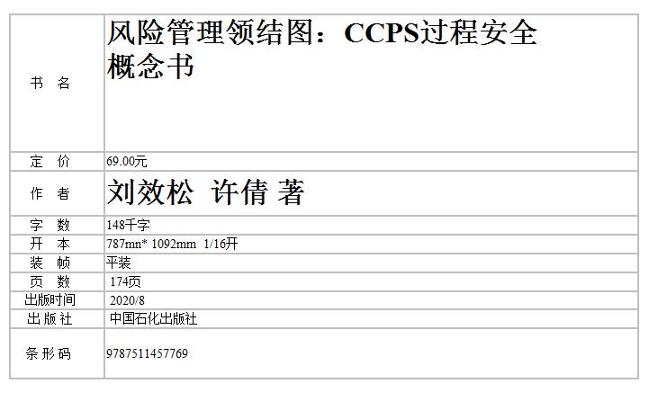 【官方旗舰店】风险管理领结图:CCPS过程安全概念书 9787511457769