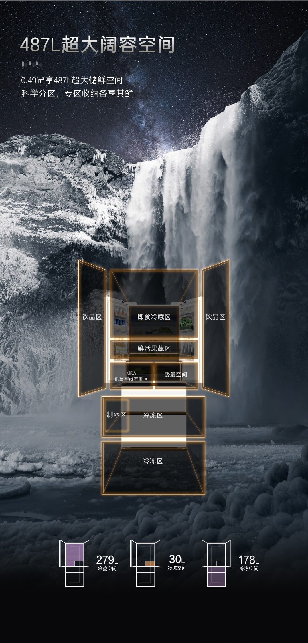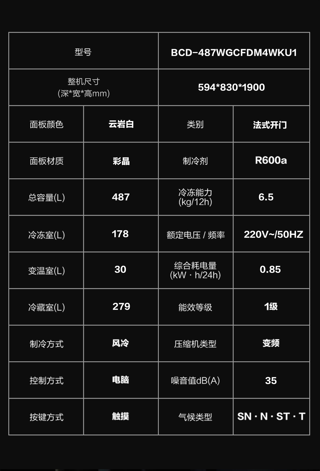 【美居】卡萨帝 多门-四门 冰箱 BCD-487WGCFDM4WKU1