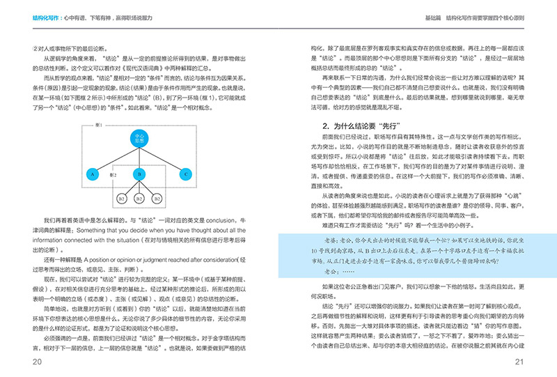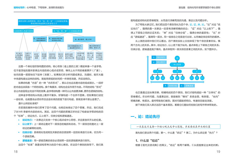 《结构化写作 心中有谱 下笔有神 赢得职场说服力》核心内容包括导论、基础篇、方法篇。其中,导论部分主要强调职场写作技能的必要性和重要性,并解释何为“结构化写作”;基础篇介绍了“结构思考力”的四个核心原则;方法篇则针对四类职场常见的写作场景,就如何使用“结构化写作”方法进行谋篇布局做了详细介绍。