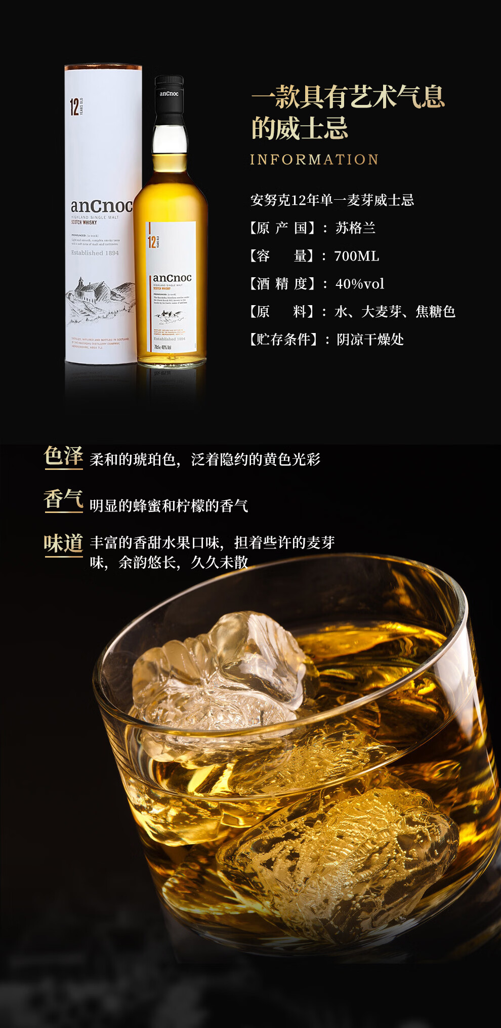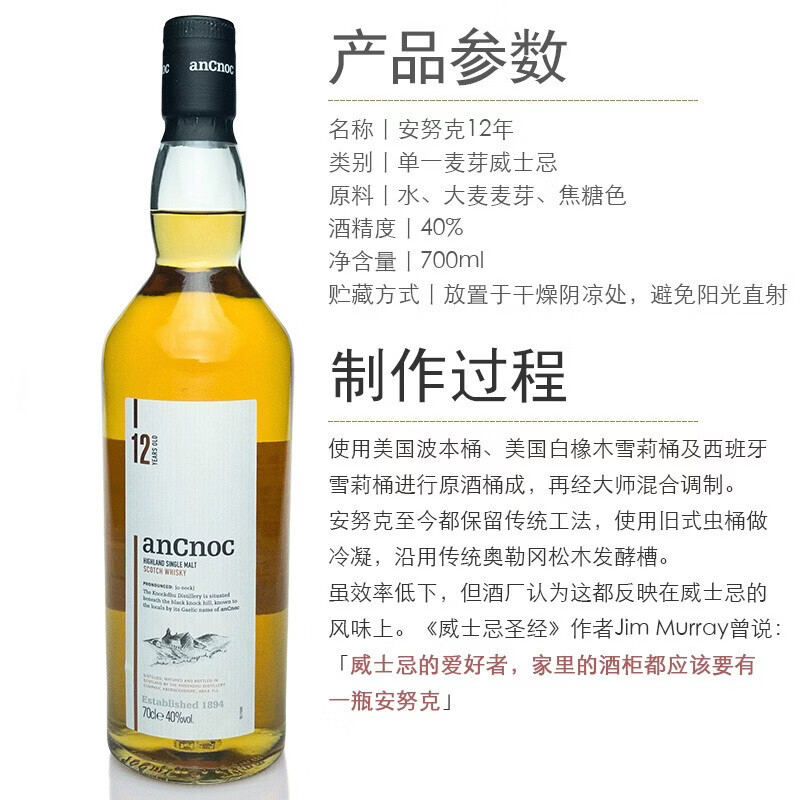 安努克 12年单一麦芽威士忌700ml