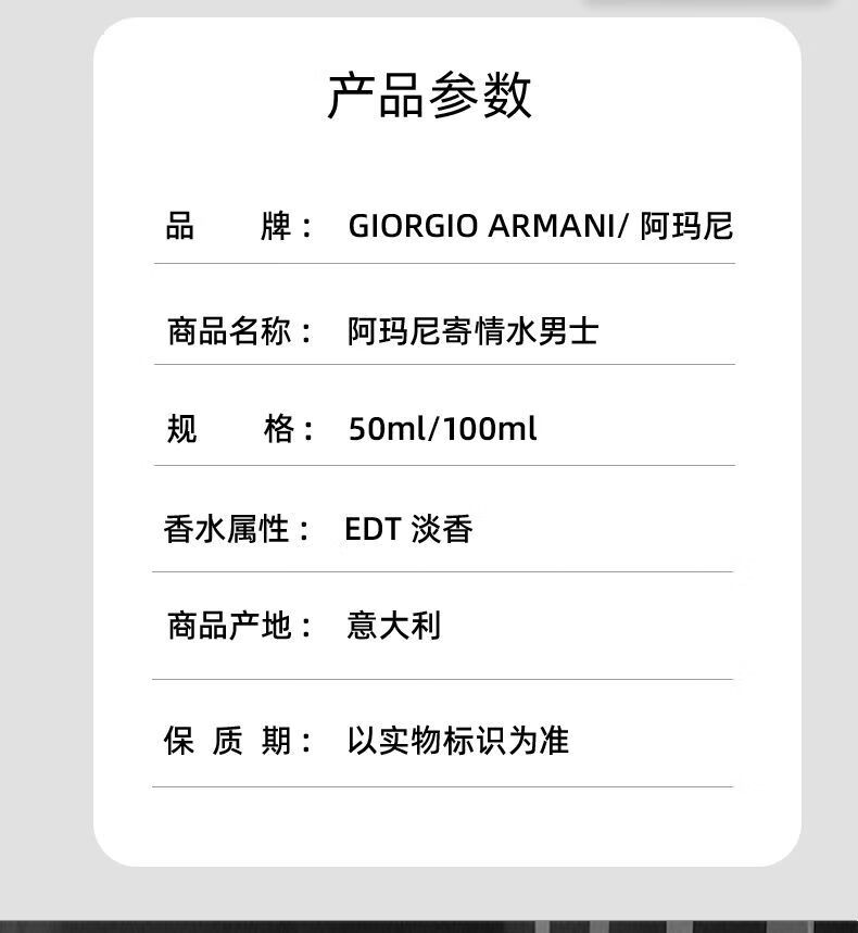 阿玛尼寄情水男士香水 50ml 柑橘海洋调清新中性高级香氛持久留香