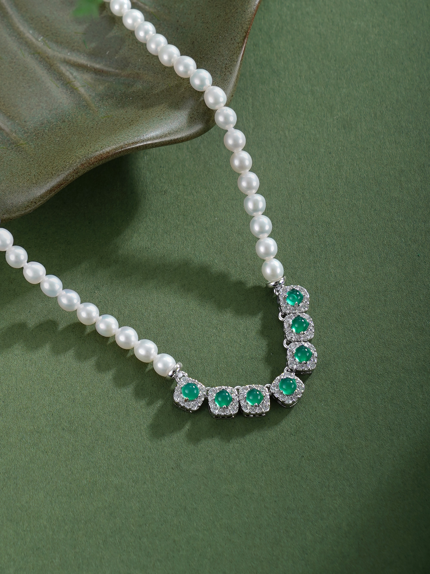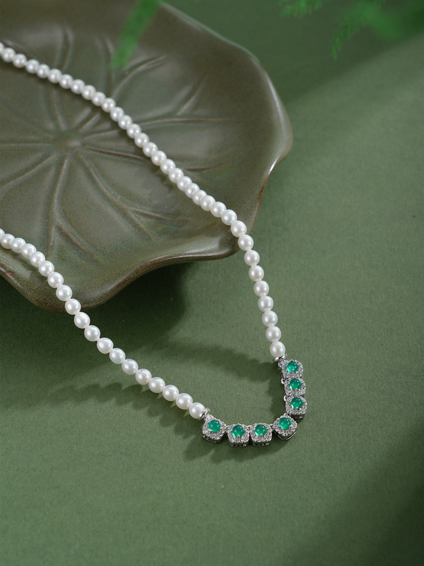 子佩集【清漪沁雪】珍珠项链【XXXL002】3.2mm珠绿玉髓2512