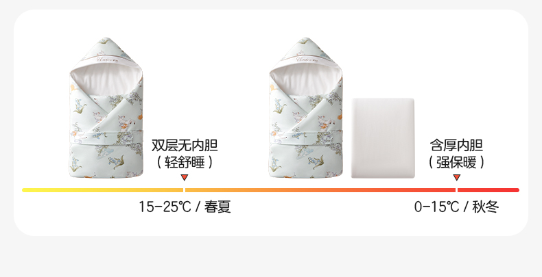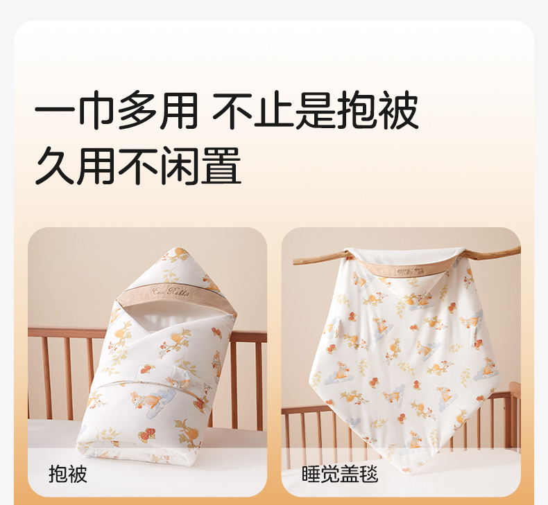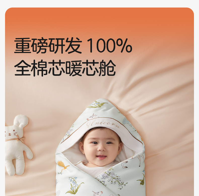 婴儿包被全棉芯新生儿防惊跳抱被纯棉秋冬季初生宝宝A类