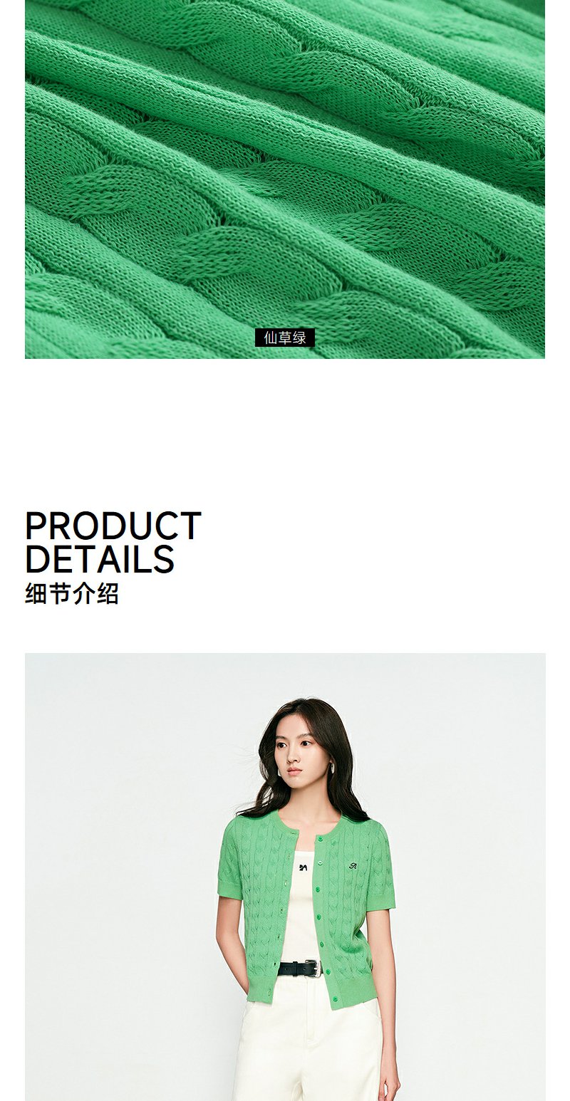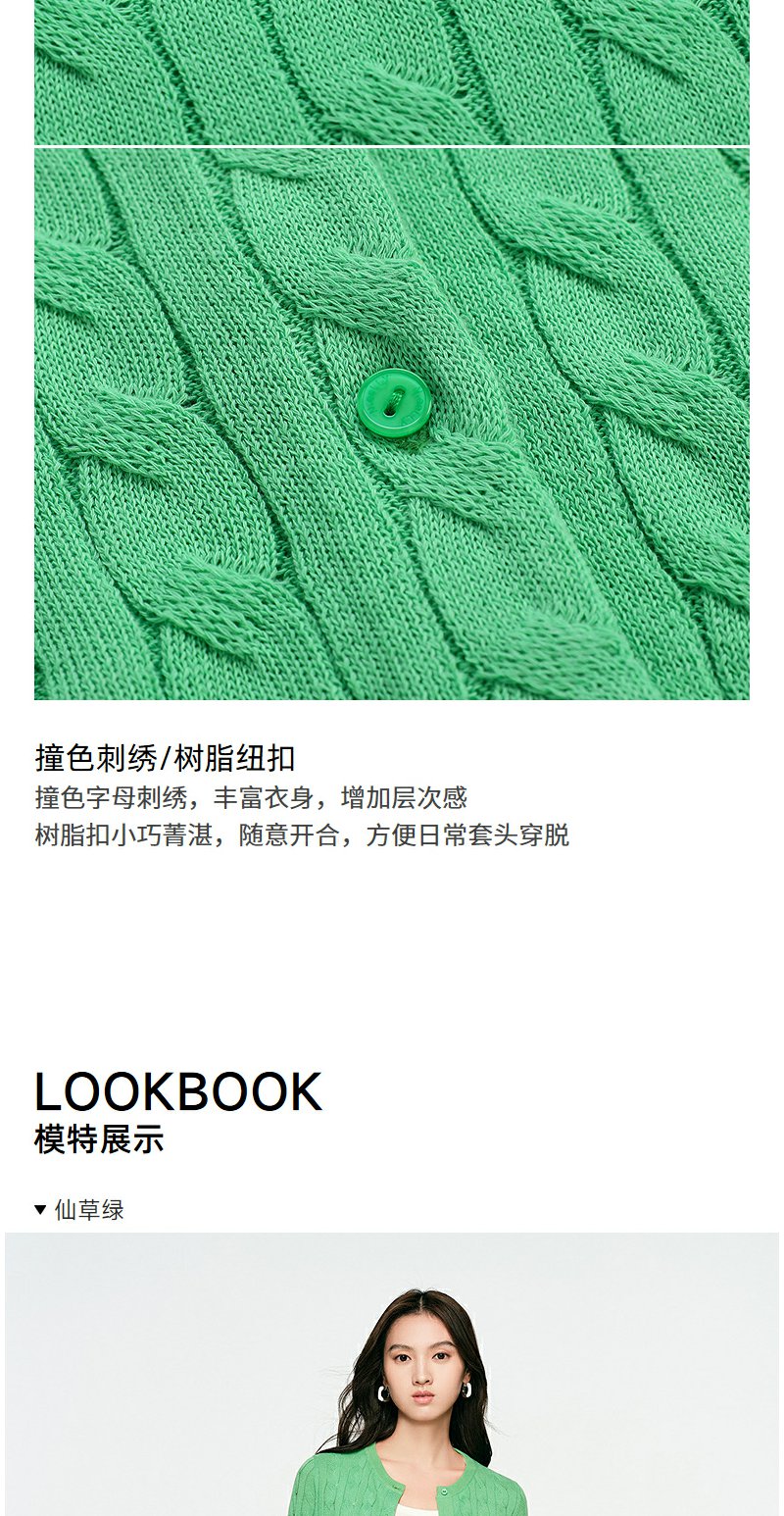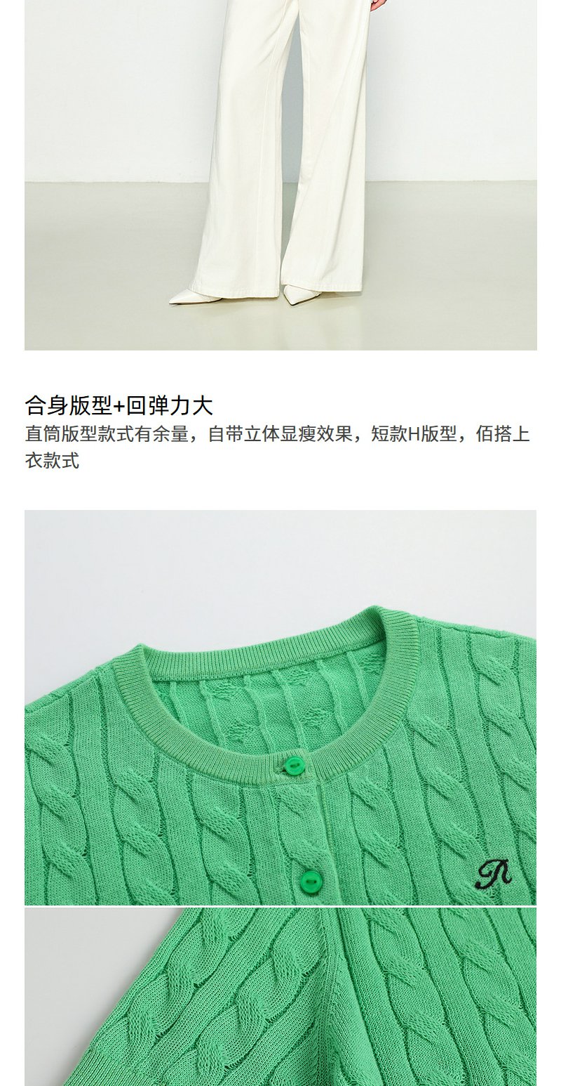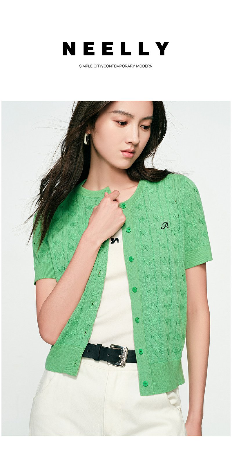 NEELLY纳俪商场同款春季新款显白嫩绿针织衫女修身百搭软糯开衫N25031A01119