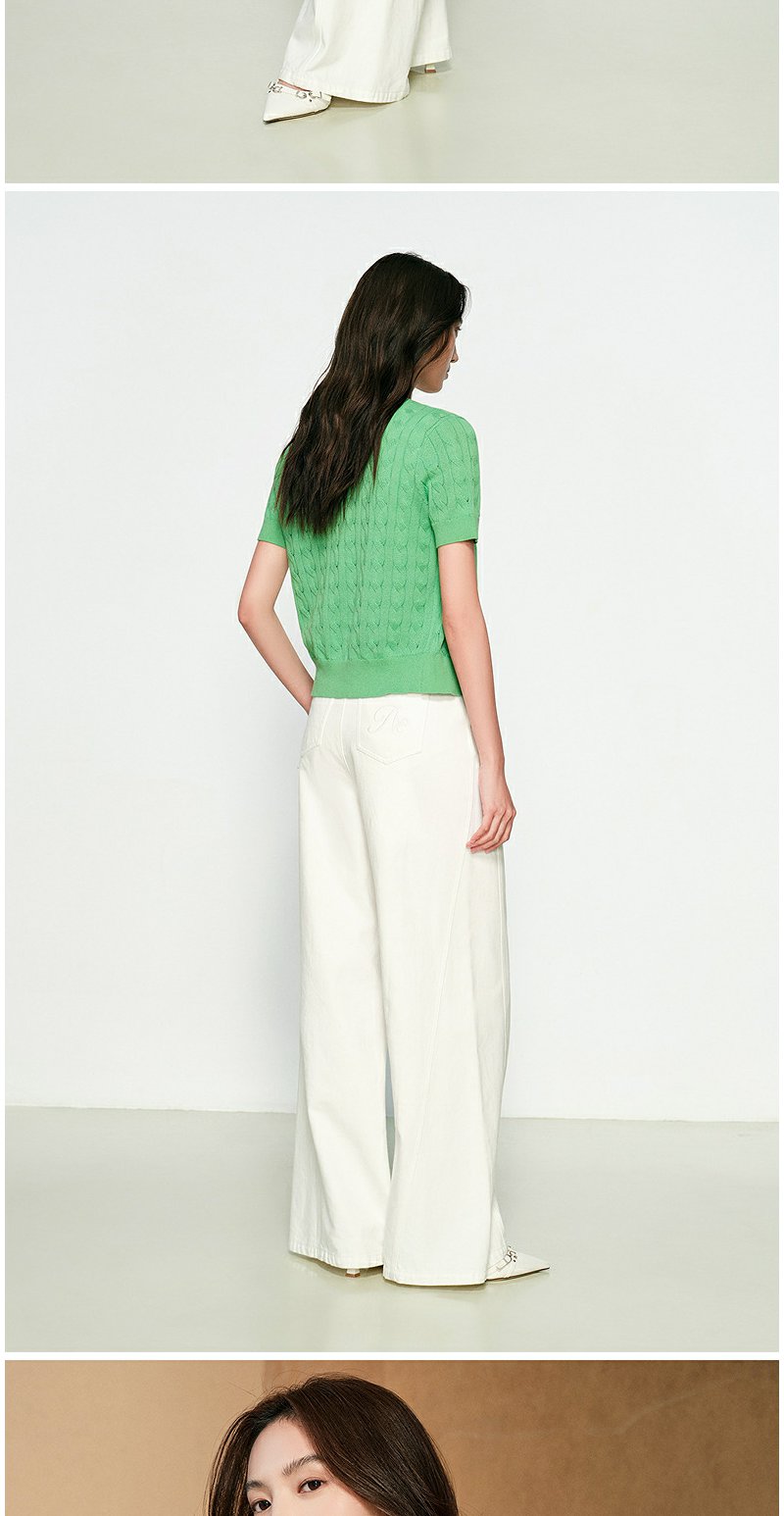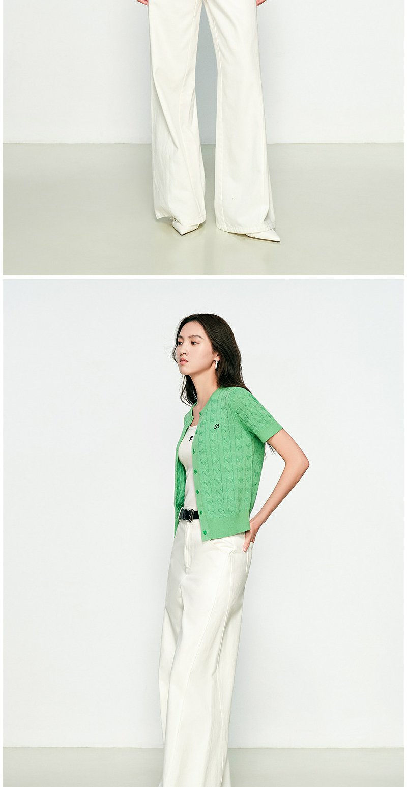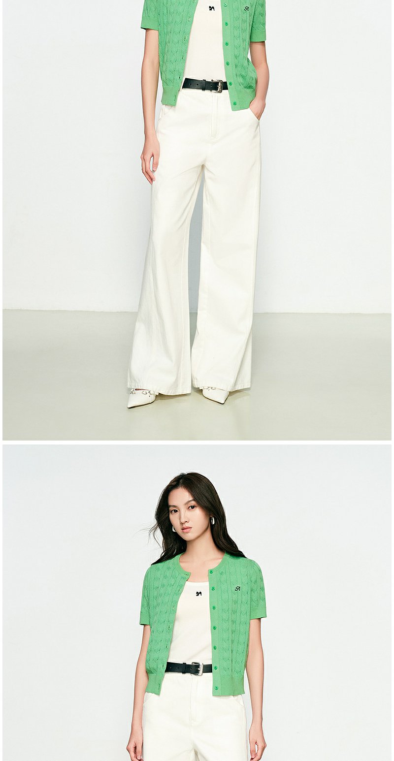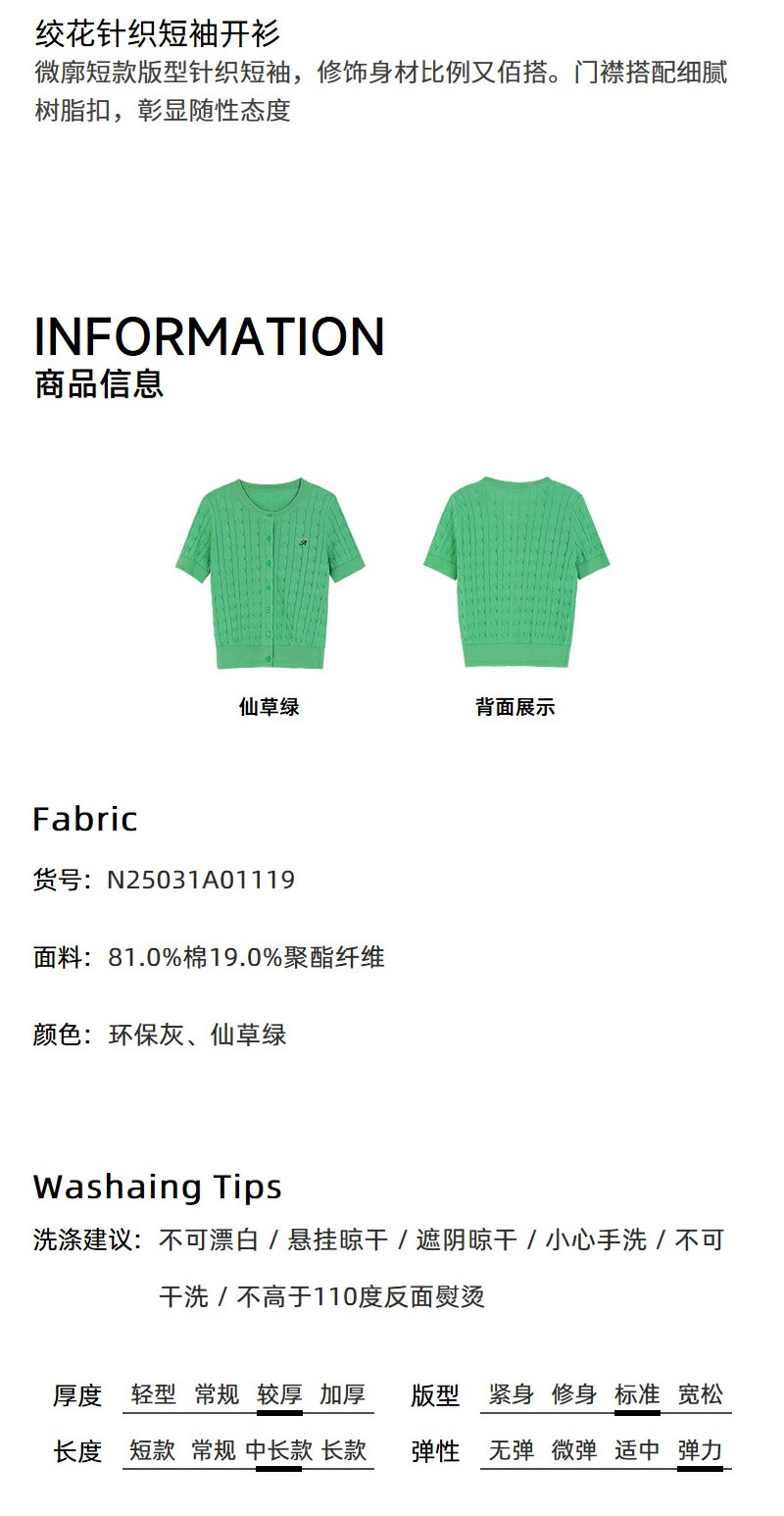 NEELLY纳俪商场同款春季新款显白嫩绿针织衫女修身百搭软糯开衫N25031A01119