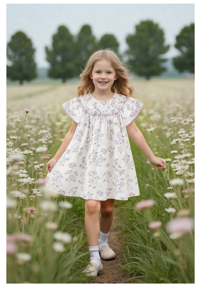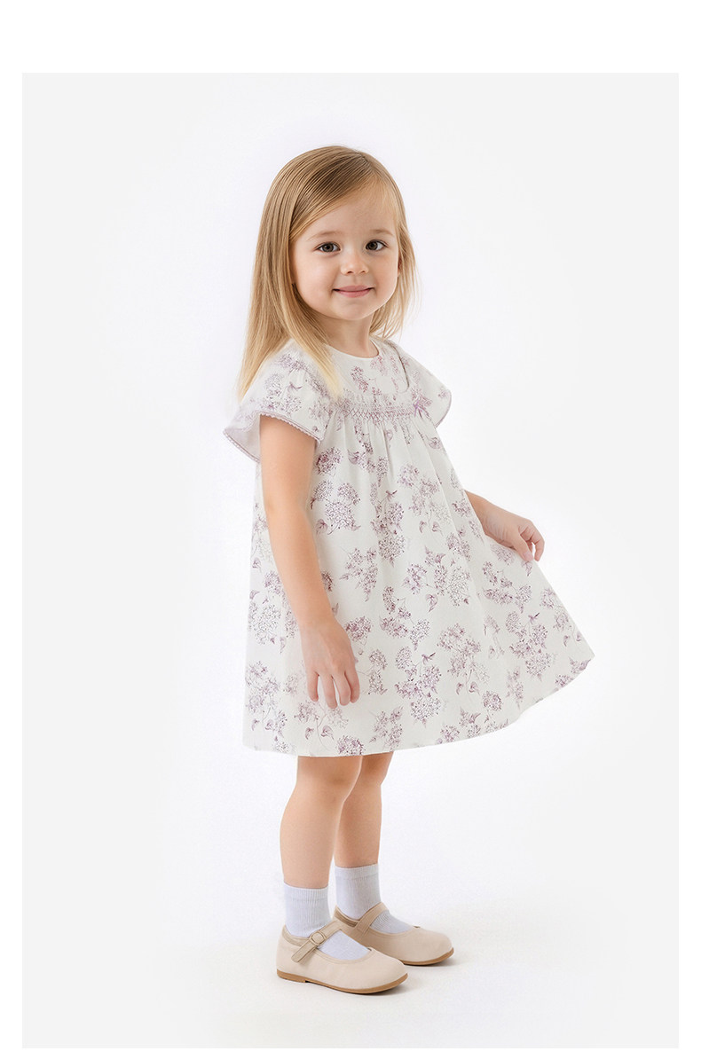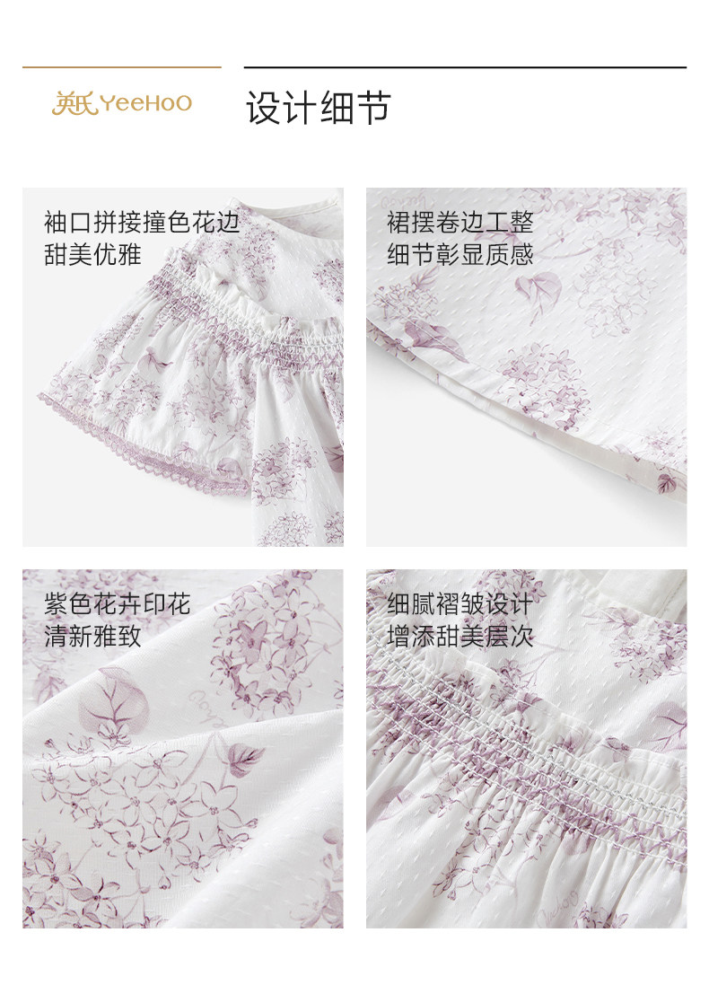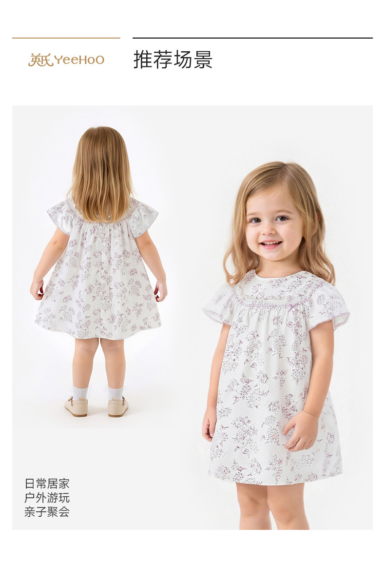 英氏儿童裙子女童夏季短袖连衣裙纯棉碎花满印公主裙YRLCJ2S011A
