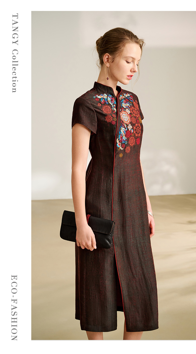 TANGY Collection/2025天意精品春季新品中国风女士莨绸连衣裙L251803