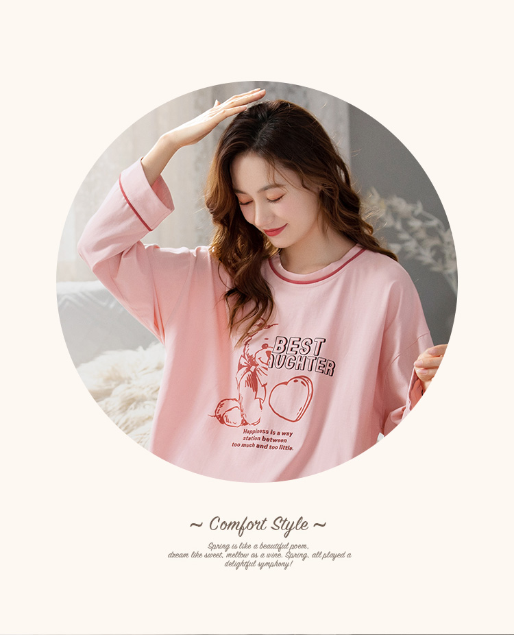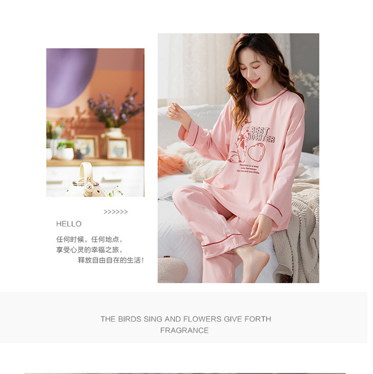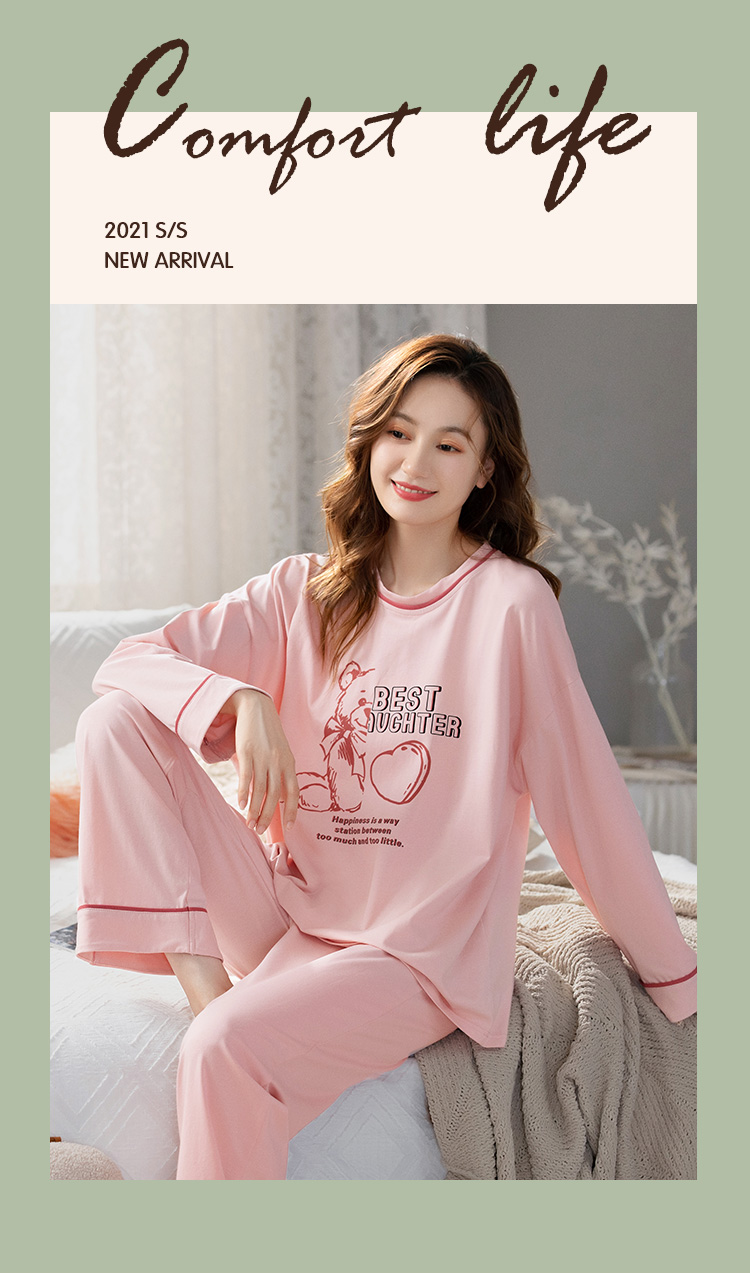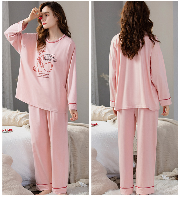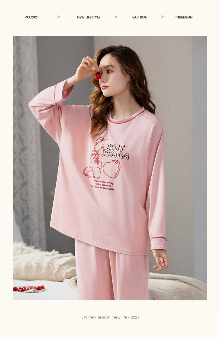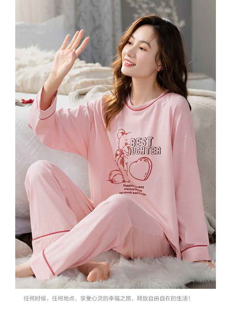 洁丽雅内衣秋上新全棉家居服套装圆领长袖长裤可爱浣熊可外穿女士家居服