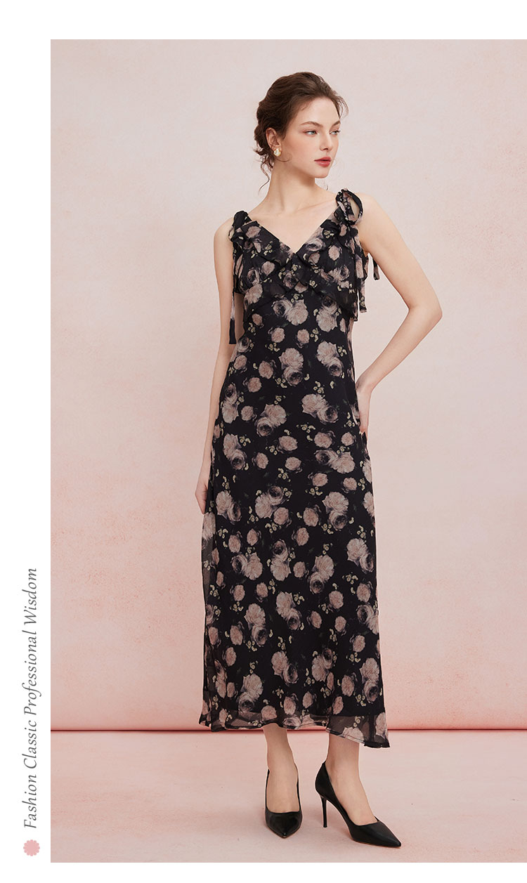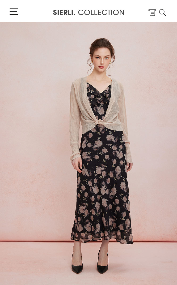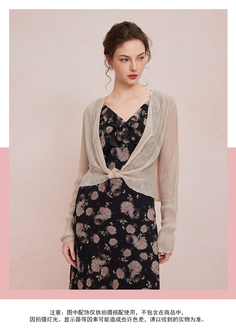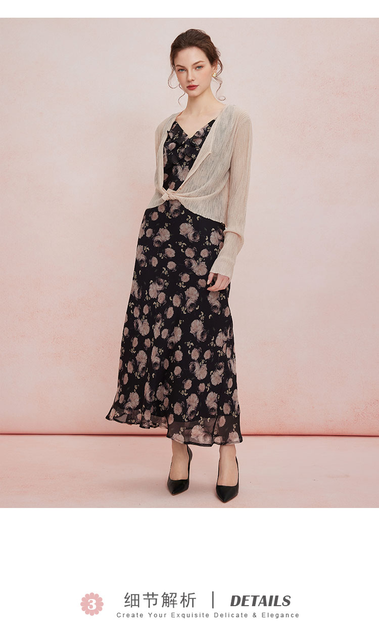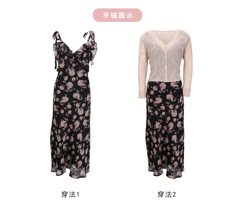 QF876斯尔丽25夏季新款法式浪漫碎花荷叶边裙搭配针织外披连衣裙套装