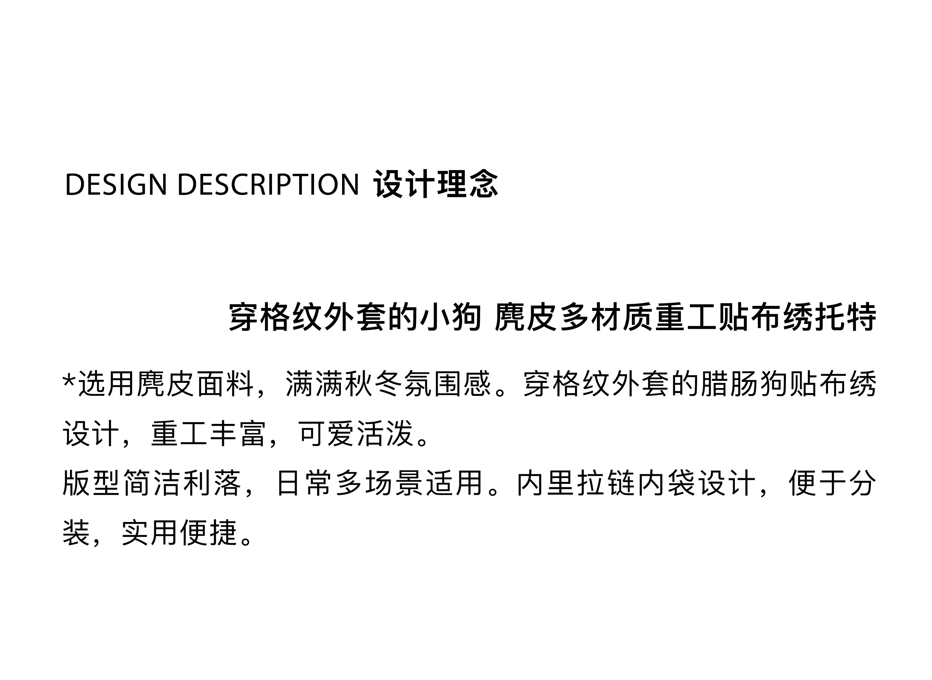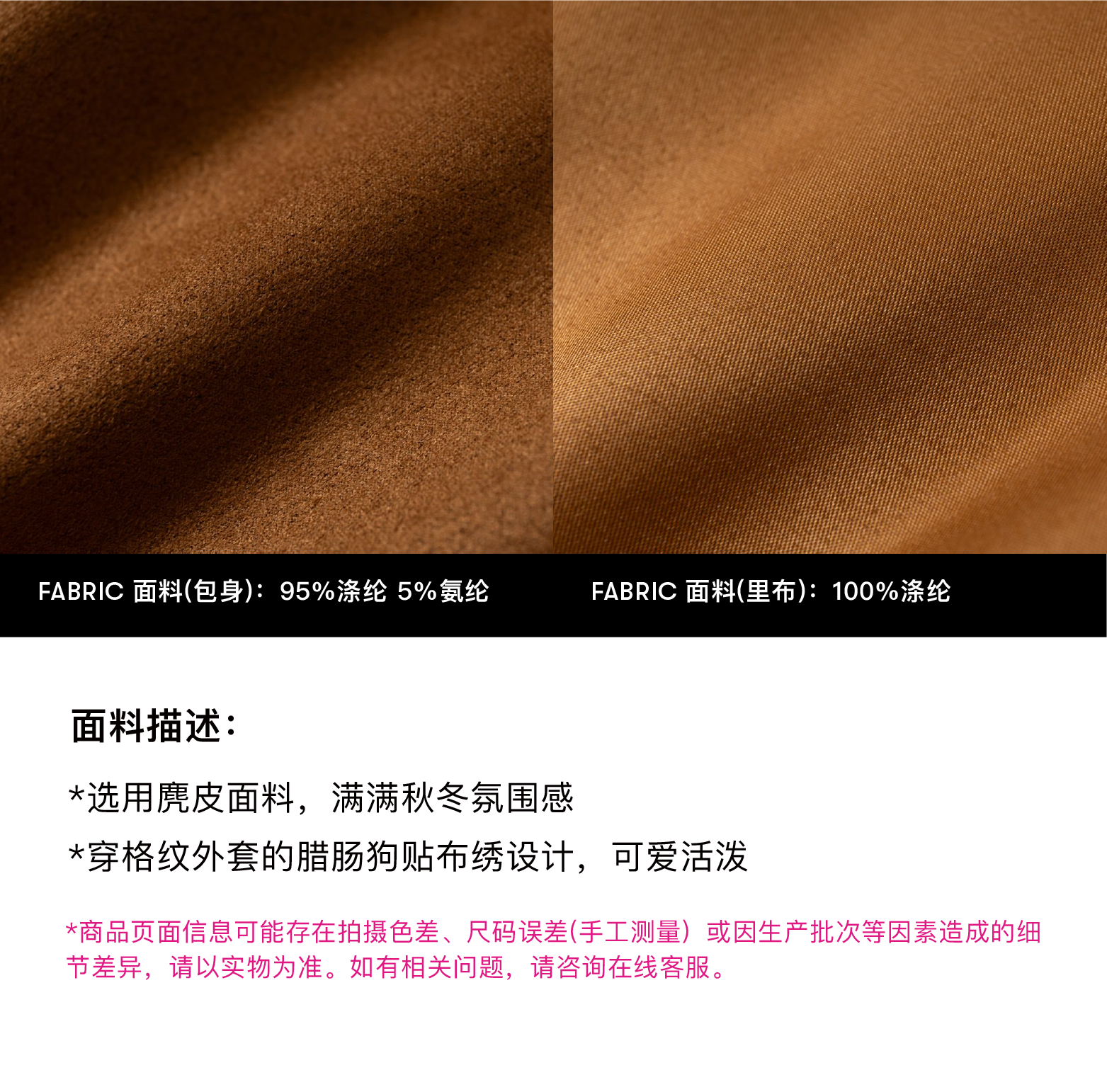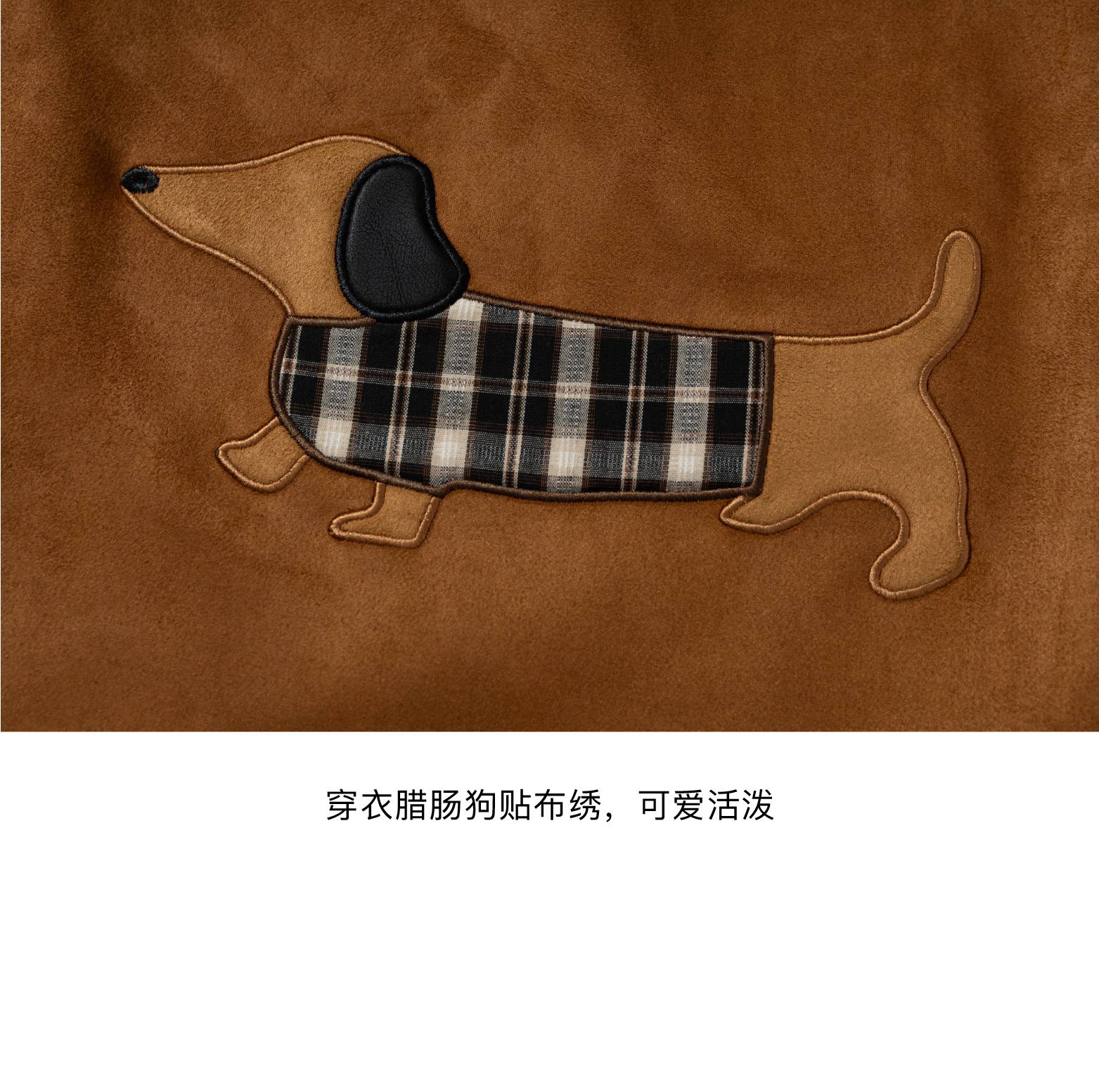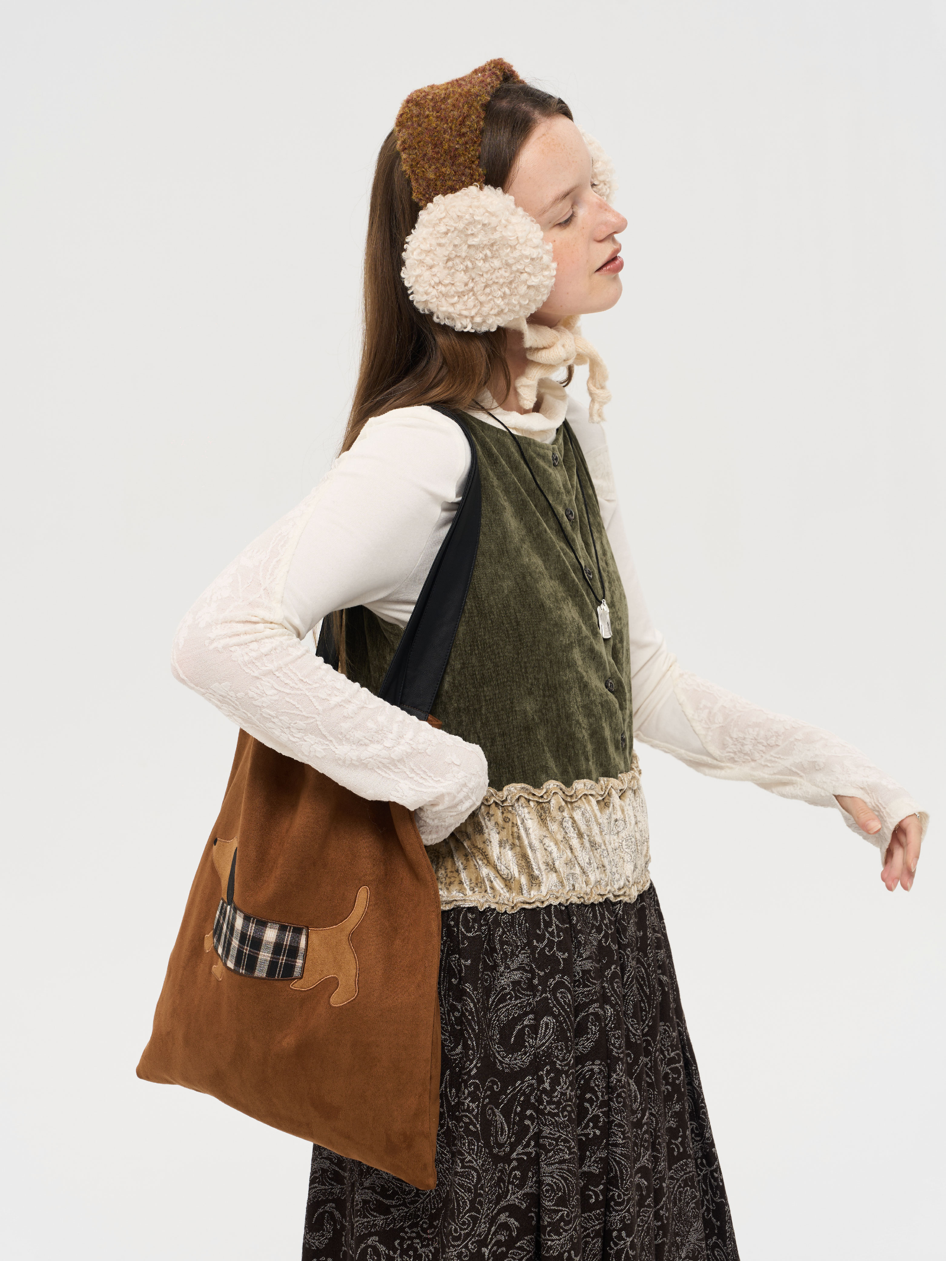local tag/lt25awk54/穿格纹外套的小狗 暖棕麂皮重工贴布绣托特