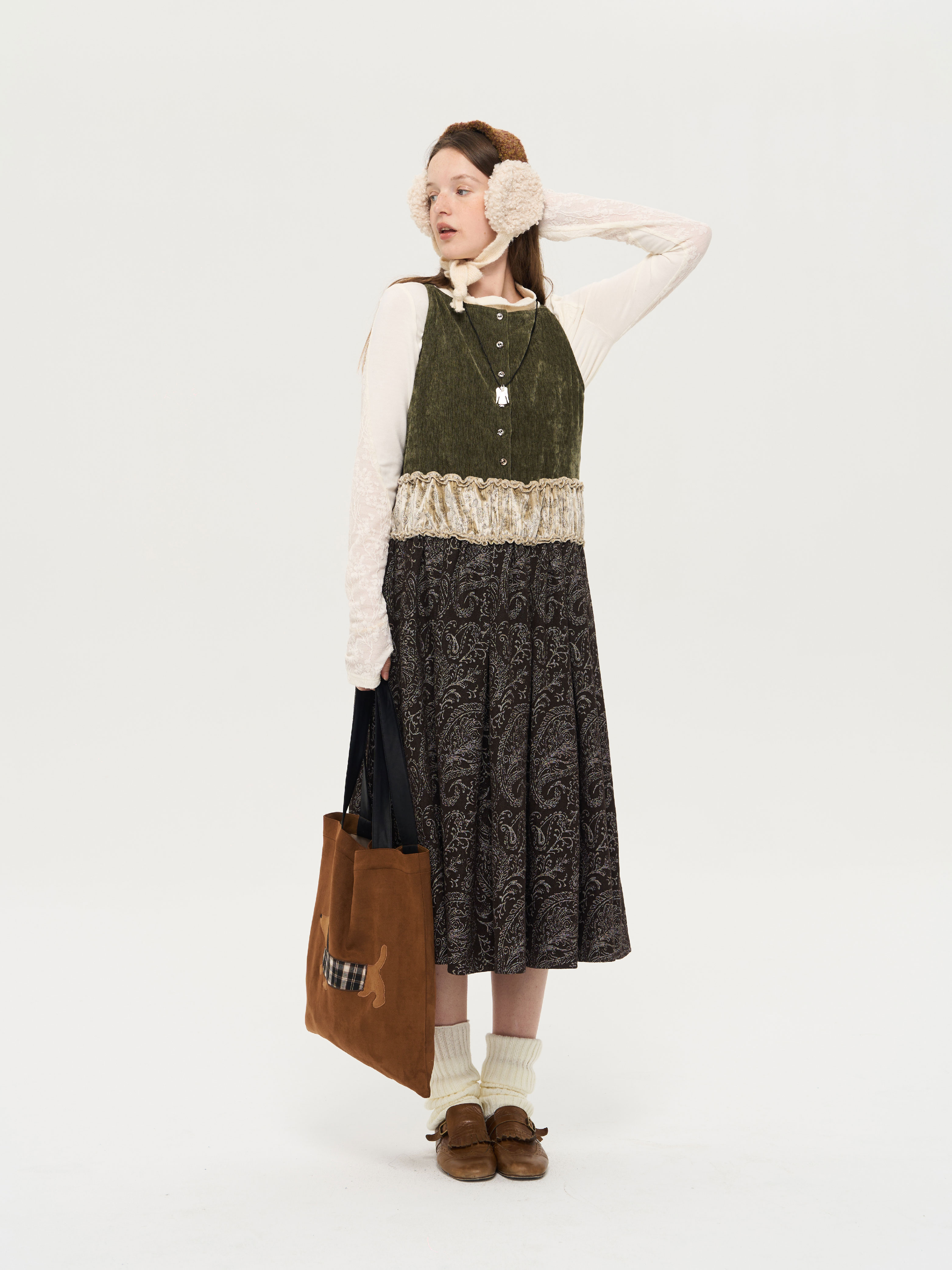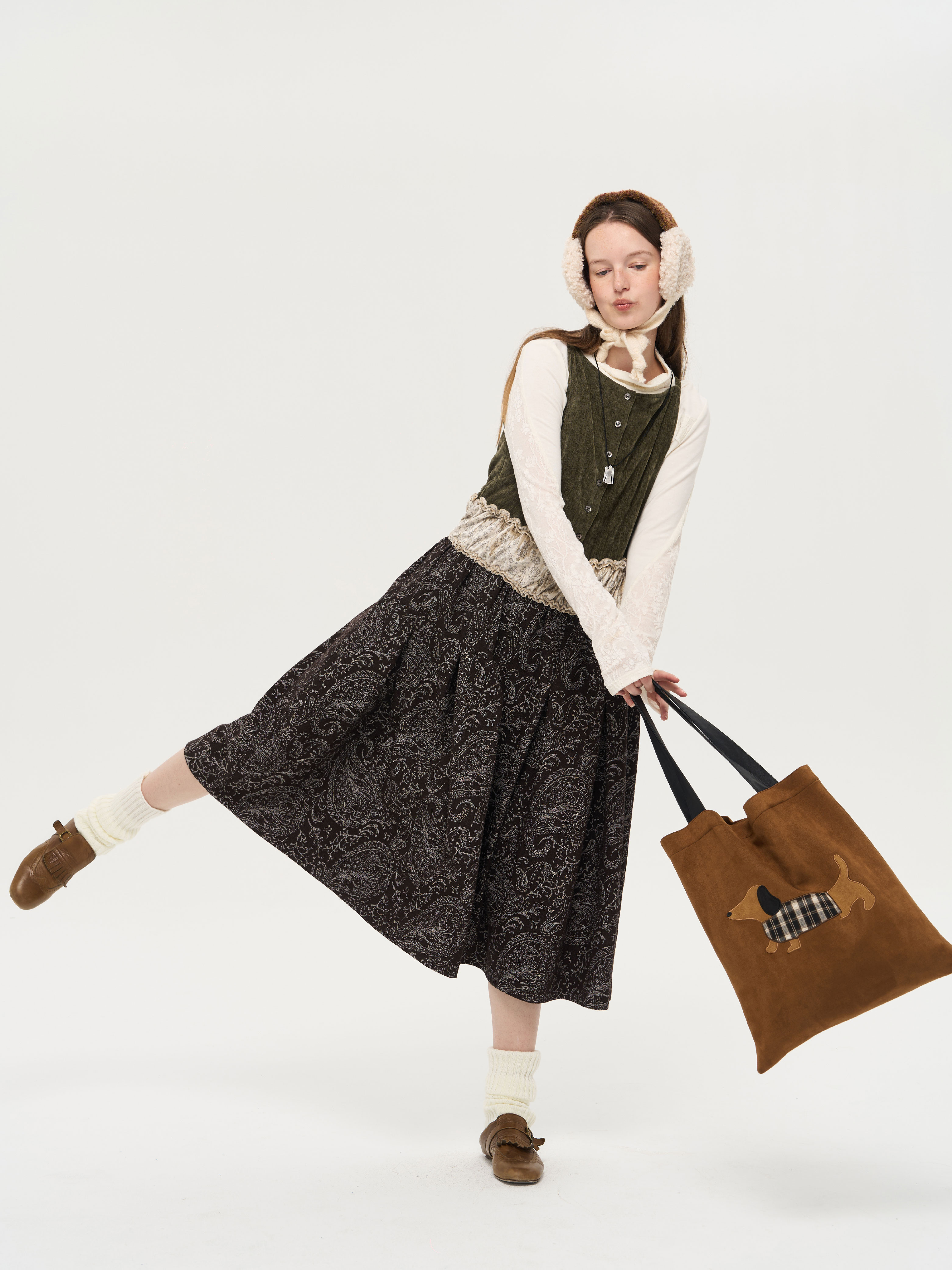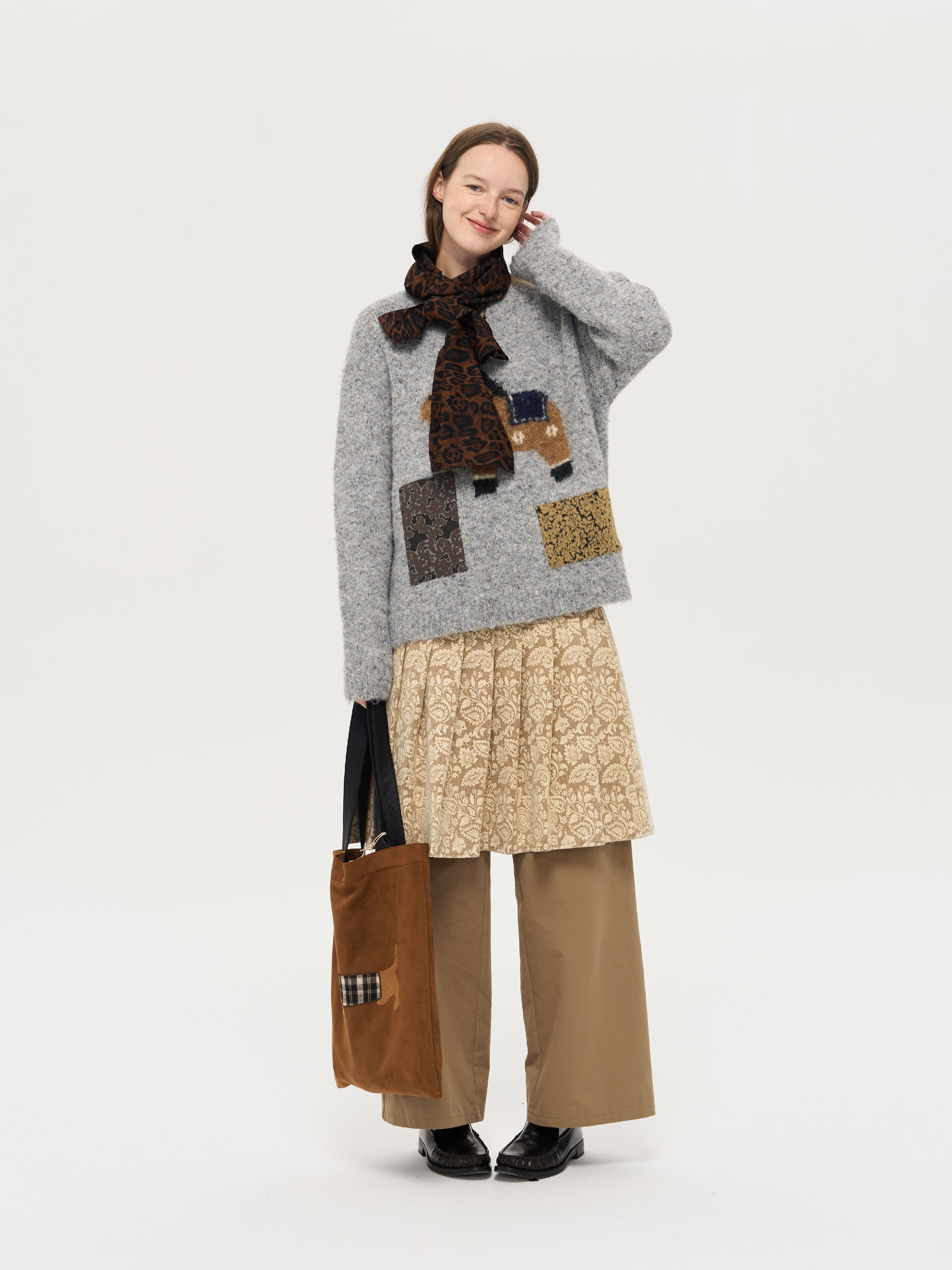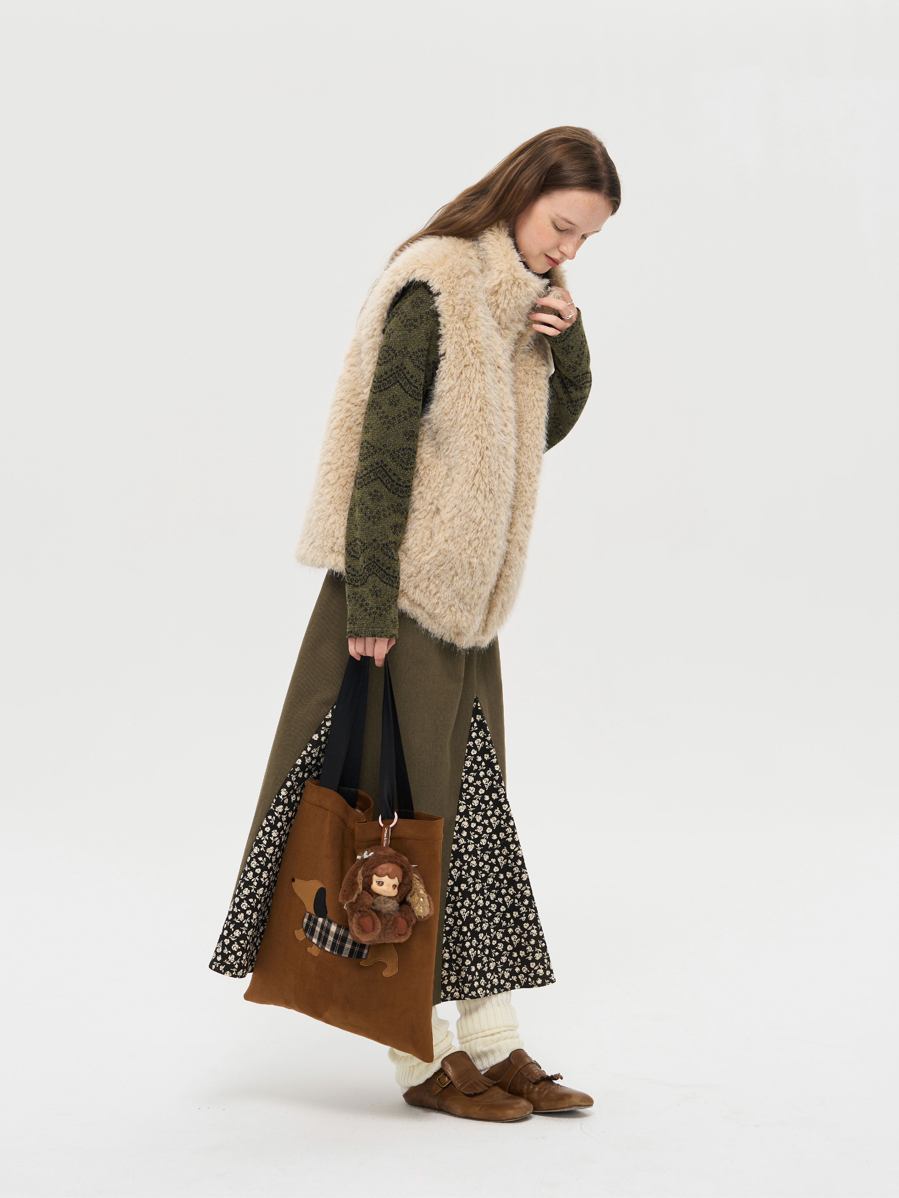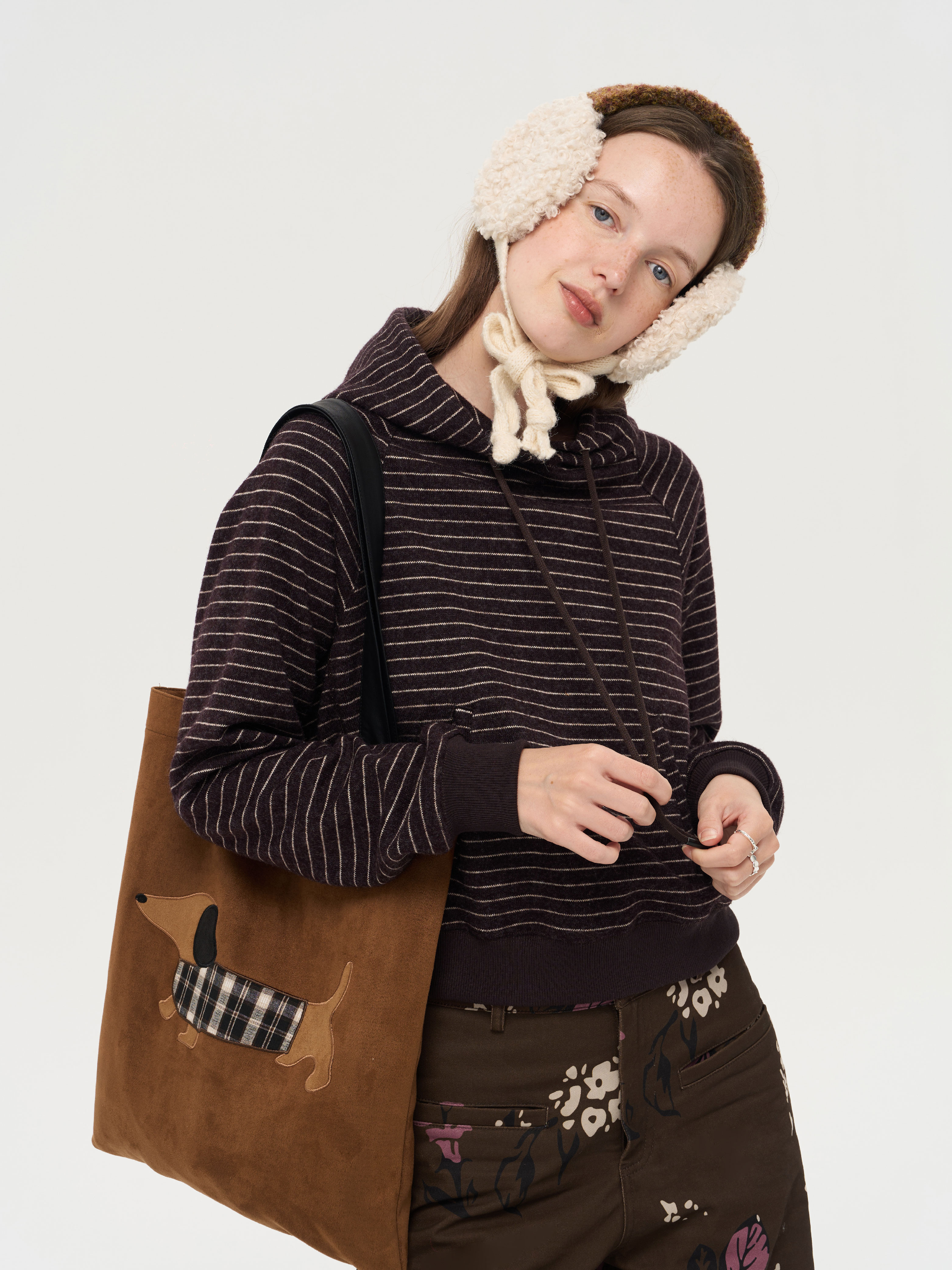local tag/lt25awk54/穿格纹外套的小狗 暖棕麂皮重工贴布绣托特
