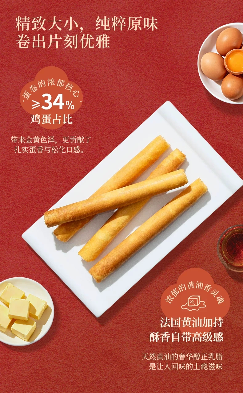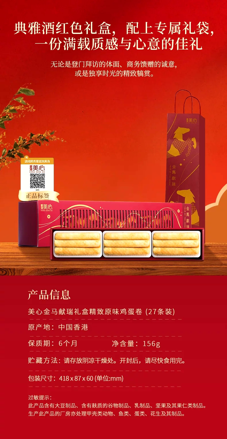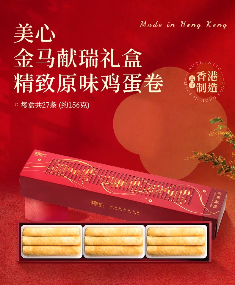 【新品限时购】美心金马献瑞精致原味鸡蛋卷156g/055461 精致大小 纯粹原味